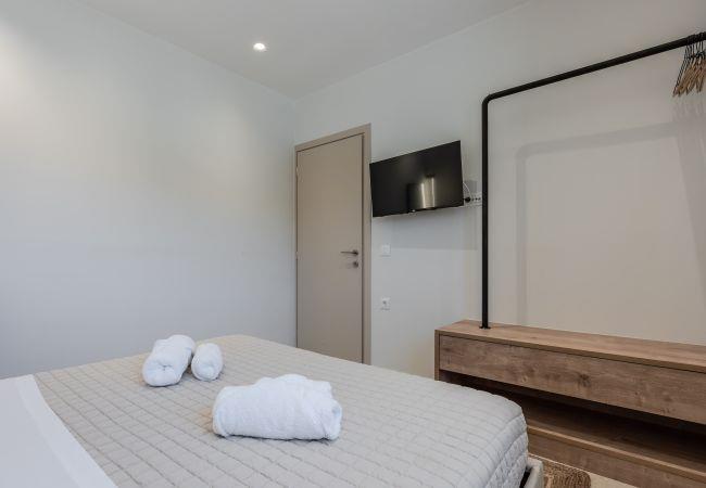 The outdoor spaces of Ouranos Villa are designed for leisure and enjoyment. The highlight is a sparkling 42-square-meter swimming pool, complete with a children’s pool for younger guests. Surrounding the pool are two comfortable lounge areas and a dining area, perfect for al fresco meals or simply unwinding under the sun. A barbecue area invites guests to savor grilled delicacies, while the lush garden, adorned with trees, enhances the tranquil ambiance. The fenced garden ensures safety and privacy for families and groups.
