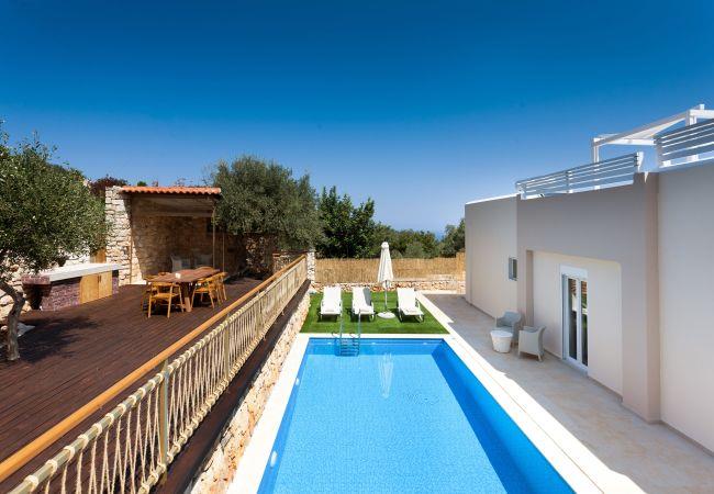 Villa Excecio is located in one of the most beautiful villages of Rethymno, in traditional Gerani. It is a ground-floor house, 130 sqm with a 30 square meter swimming pool and a neat and stylish decoration, able to accommodate up to six people, and if necessary up to seven, just 9 km from the center of Rethymno. Villa Excecio is the ideal choice for all of you who want the tranquility of the countryside, but very close to all points of interest.