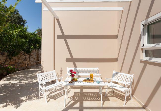 Enjoy the Cretan sun under the umbrellas on the comfortable sunbeds around the pool and your meals in the spacious outdoor dining area. There is also a barbecue area and an outside sink, as well as an outdoor lounge to enjoy your coffee and drinks. The area is fenced, has parking for two cars, and offers wifi throughout, both inside and outside the house.