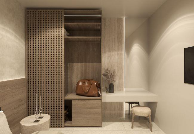 Upon entering the upper floor, guests are greeted by a spacious open-plan living area with a refined contemporary design. The fully equipped modern kitchen connects seamlessly to the stylish living room, featuring a 55-inch smart TV for your entertainment.This level also hosts two elegant bedrooms with king-size beds, one of which includes an en-suite bathroom, along with a separate shared shower/WC.Descending via the internal staircase, the lower level offers a more intimate ambiance with three beautifully appointed double bedrooms, two of them with en-suite shower/wc , ensuring privacy and comfort for all guests.