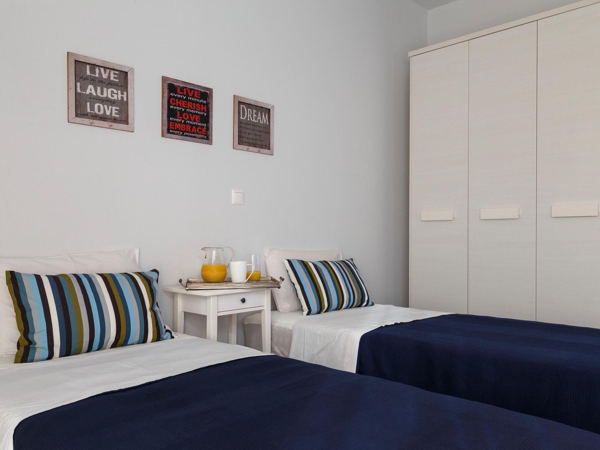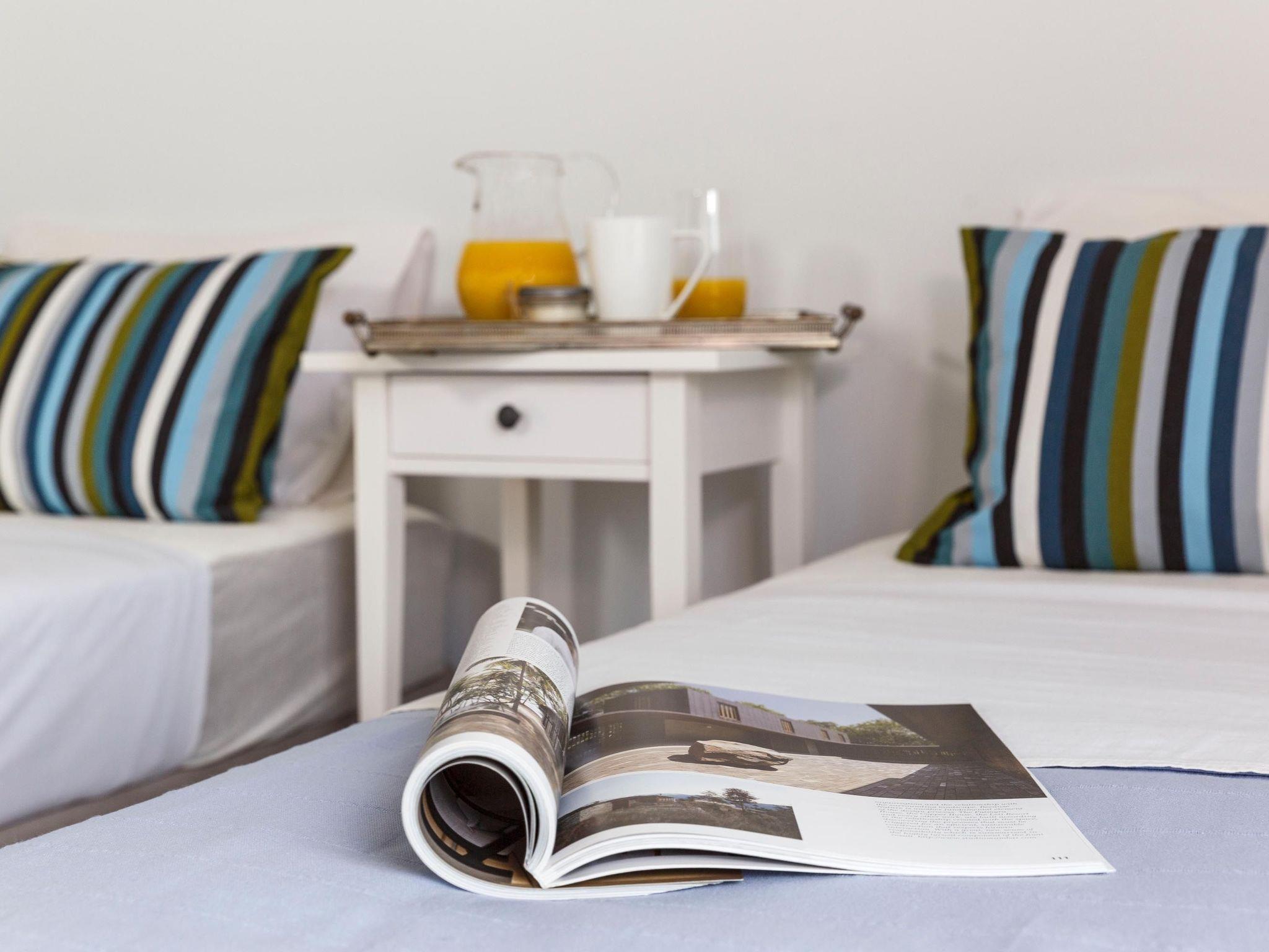 This beautifully crafted villa has three fully air-conditioned bedrooms on the first floor, a double-bedded room, and two bedrooms with twin beds. Upon request, twin beds can easily be converted into double beds. Also, there is a bedroom on the second floor with a comfy double sofa bed. The double-bedded room includes an ensuite bathroom with a shower. In addition, there are another two bathrooms, one with a bathtub and one with a shower, all of great utility and comfort. There’s a fully equipped open plan kitchen, suitable for any meal preparation. Guests will find a friendly seating area along with the living room that has a screen TV. There’s free Wi-Fi access throughout the property. Throughout the house there are family heirlooms, carpets, antiques and artwork by local artists that harmoniously blend with the modern style of the house giving it a very interesting, dynamic and at the same time comfortable vacation space. The broad balconies make the ideal spots for enjoying the magnificent sunset colors in the evening hours. Outdoors, there’s the private swimming pool with its sunbeds for your ultimate relaxation under the Aegean sun. Thalassa Luxury Villa offers its guests a wide range of indoor and outdoor amenities that give the opportunity for relaxing and enjoyable holidays.