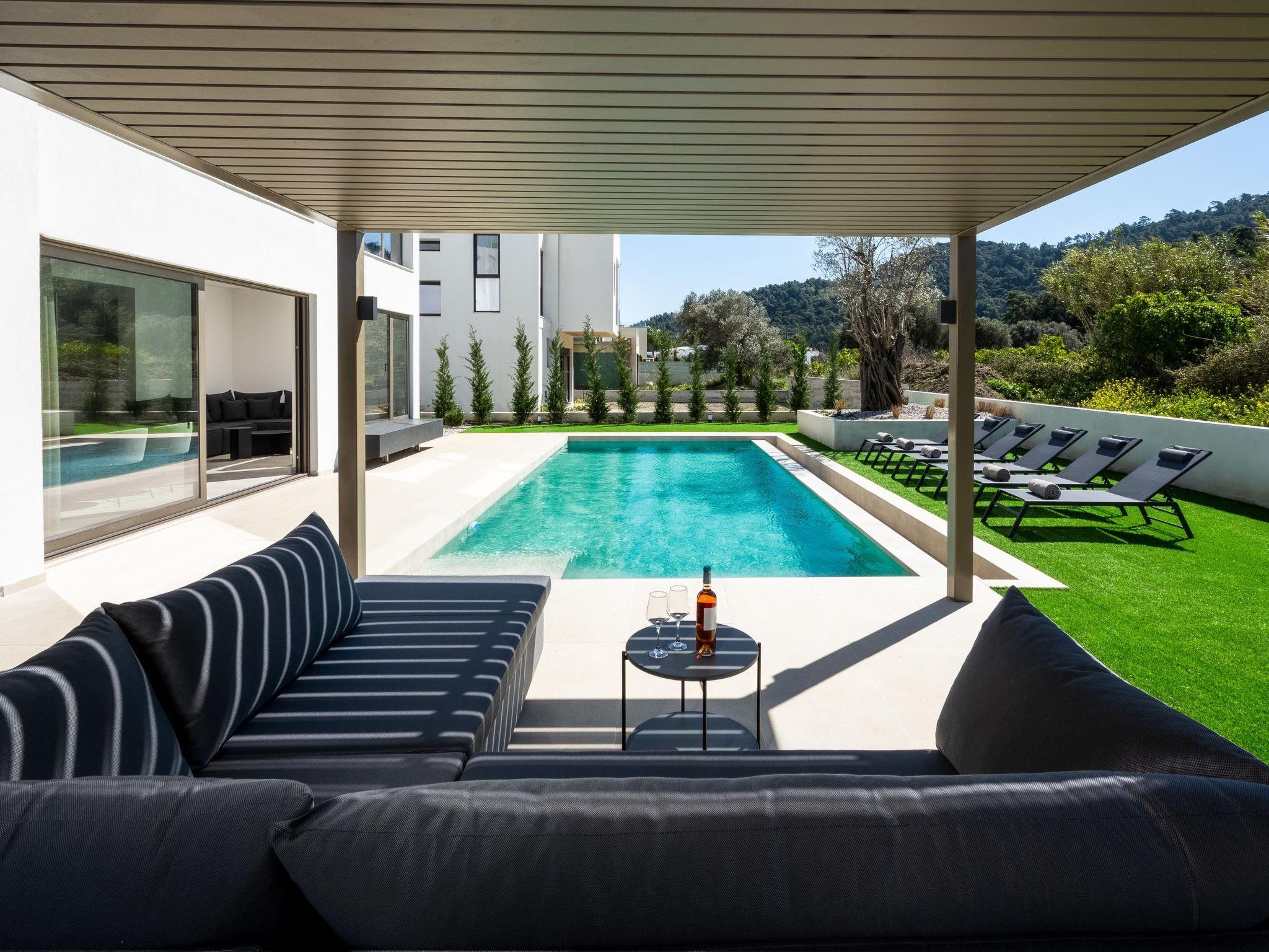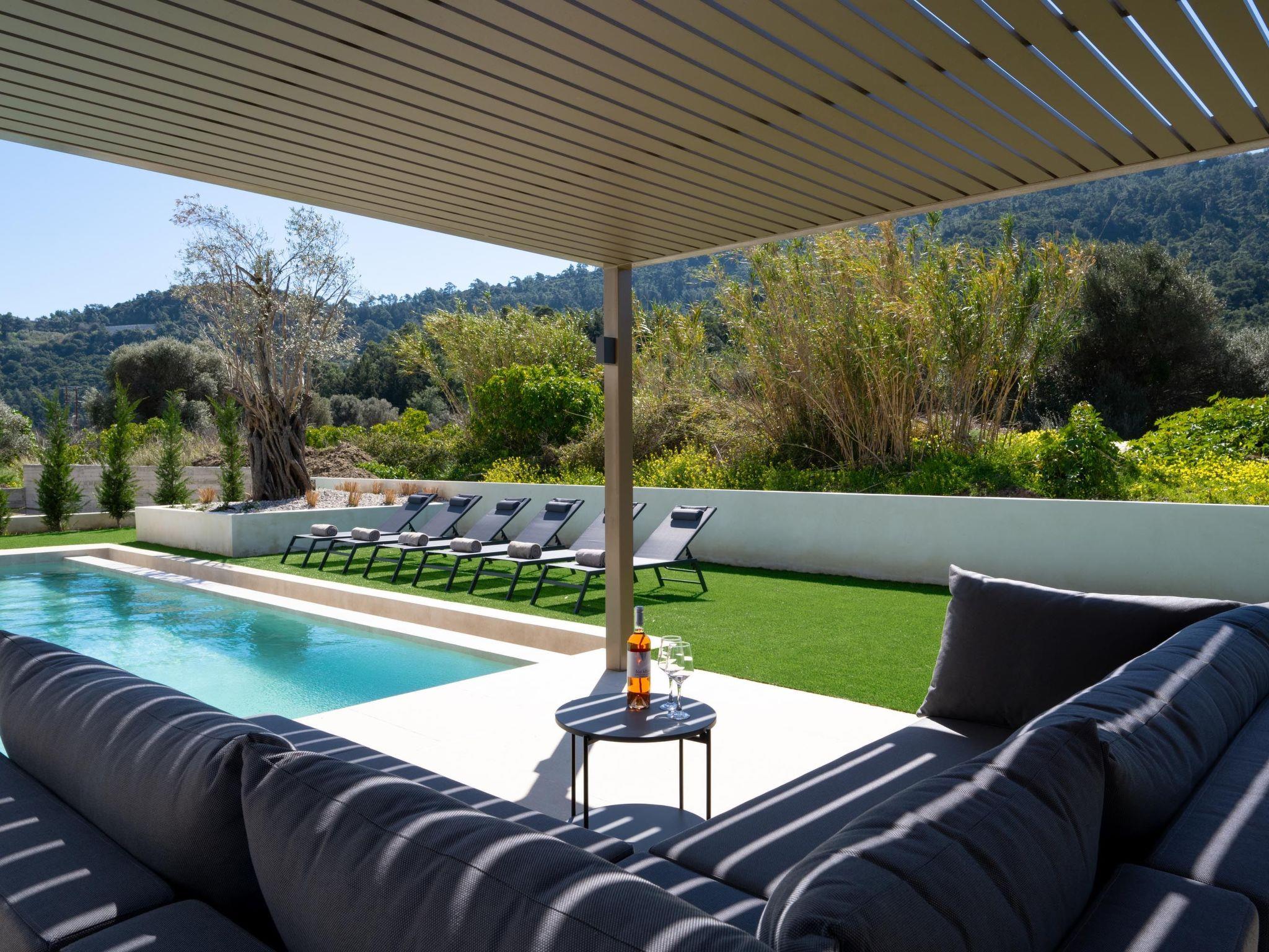 Welcome to our peaceful villa in Filerimos, Rhodes! Being in a quiet spot, our place is all about privacy and calmness. Surrounded by beautiful nature and lovely views, you'll feel like you're in your own little world. Inside, the villa is comfy and cozy, perfect for relaxing. Whether you're chilling by the pool or hanging out on the terrace, you'll love the quiet atmosphere.Inside the villa , you'll find four cozy bedrooms, each with a comfy double bed, perfect for a good night's sleep. There are also three bathrooms with showers, so no waiting in line to freshen up! Our kitchen is fully stocked with everything you need to cook up tasty meals during your stay. Outside, get ready to relax and dine al fresco in our lovely outdoor dining area. With comfy furniture, it's the ideal spot for enjoying meals together or just lounging in the sunshine. Also the villa includes an outdoor kitchen and a gas barbeque grill, so you can cook outside and enjoy your meals with your loved ones. Last but not least, you can take a refreshing dive at the private swimming pool of the property to cool of on hot days or lounge by the poolside with a cold drink in hand.The property is located near the Ialysos village where you can find all the conveniences you want such as supermarkets, pharmacies, restaurants The villa is also a 10-minute drive from the clear waters of Ialysos beach where you can enjoy a refreshing swim. If you are a fan of hiking and walking you can visit the Filerimos Monastery which is a 50-minute walk from the property. Lastly, the center of Rhodes is only a 20-minute drive from the villa where you can visit the Old town of Rhodes and much more.Our house is perfect for families or couples who will respect both the property and the neighbors, as the villa is situated in a peaceful neighborhood. Groups looking to party are not welcome. In case you did not respect the rules you will be escorted out of the house without a refund.