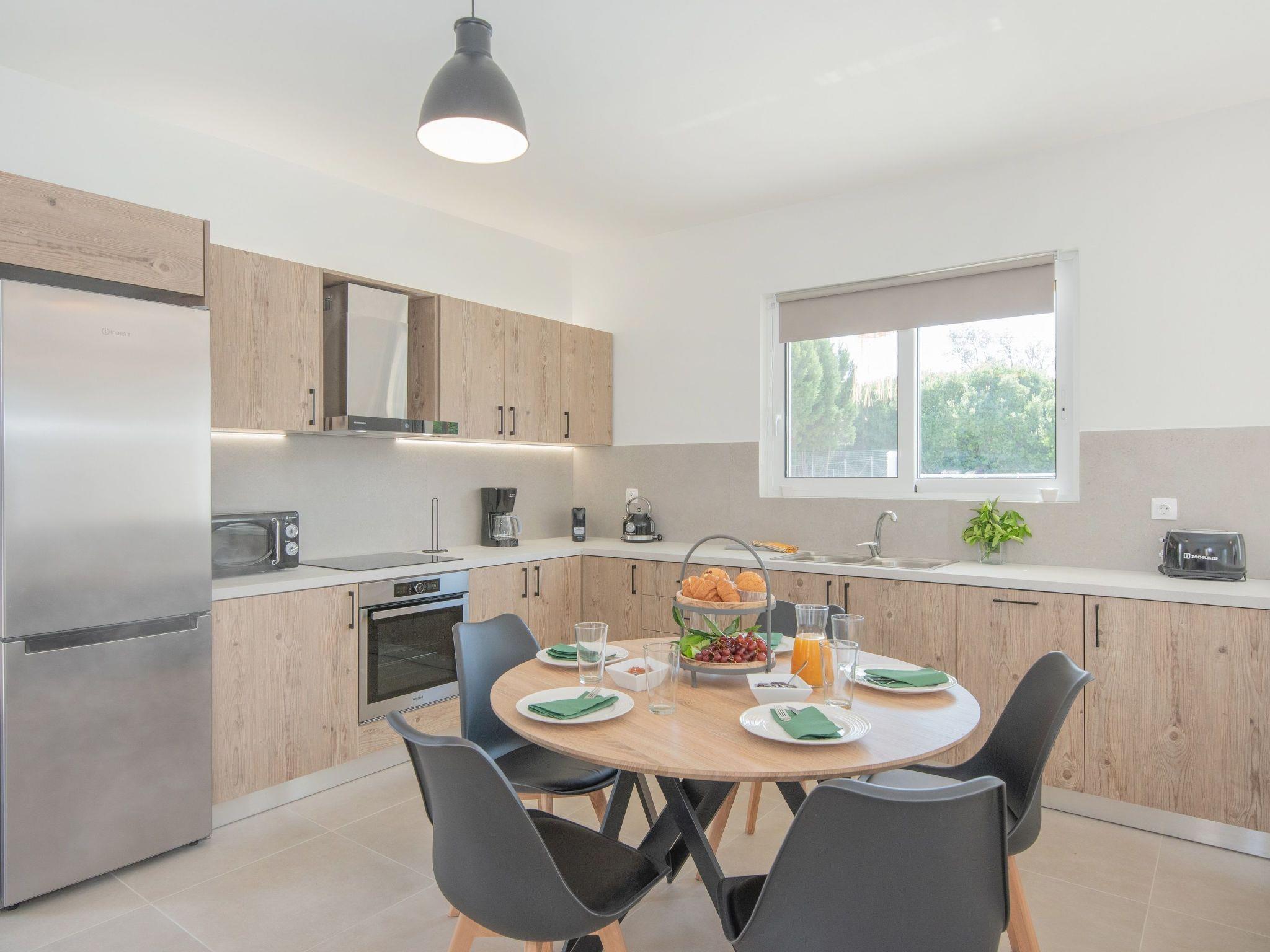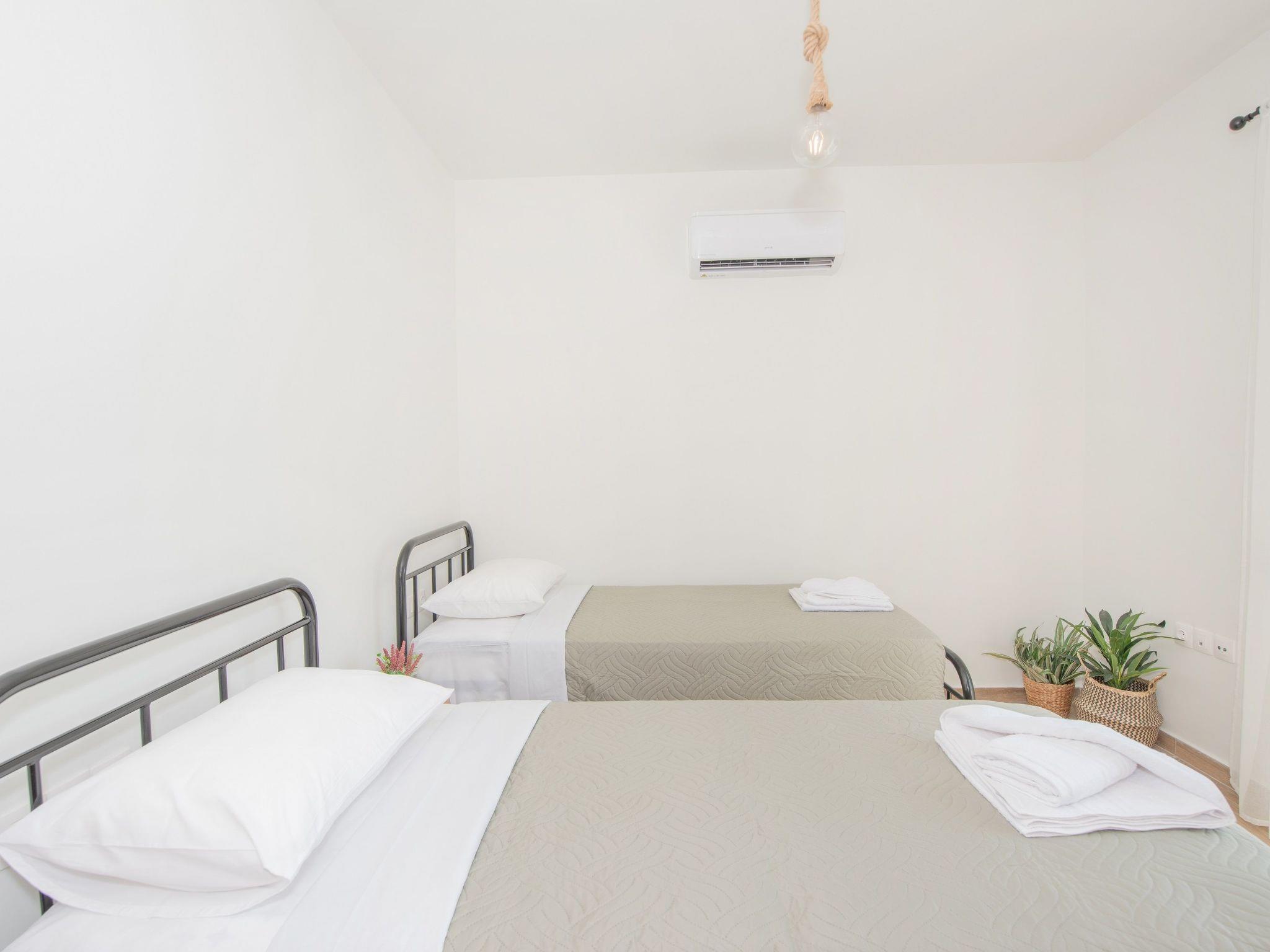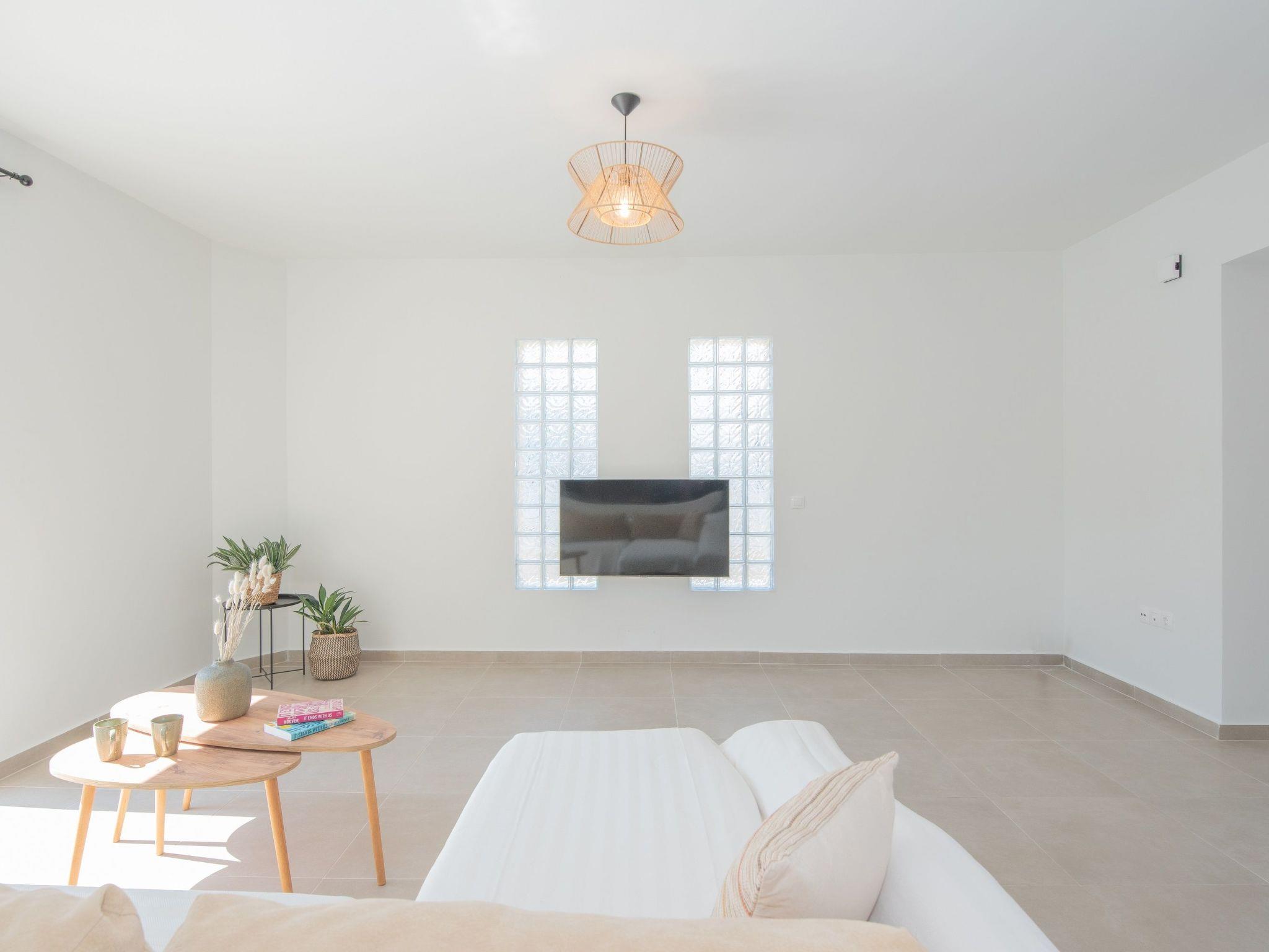 This true gem features three beautifully designed, air-conditioned bedrooms. One room offers a comfortable double bed, another is furnished with two single beds, and the third includes a single bed along with a camp bed for extra flexibility. The combination ensures ample space and comfort for guests.. Also,there’s a comfy sofa in the divine living area and 2 bathrooms with a shower. Guests will find a fully equipped kitchen, suitable for any meal preparation. The modern kitchen is sharing the area with a dining table, designed and decorated in white tones. There’s free Wi-Fi access throughout the property as well as a smart TV. The outside is as beautiful as the inside. Also, there is BBQ facilities and a seating area where you can prepare a meal and enjoy a gathering with your loved ones surrounded by modern furniture.