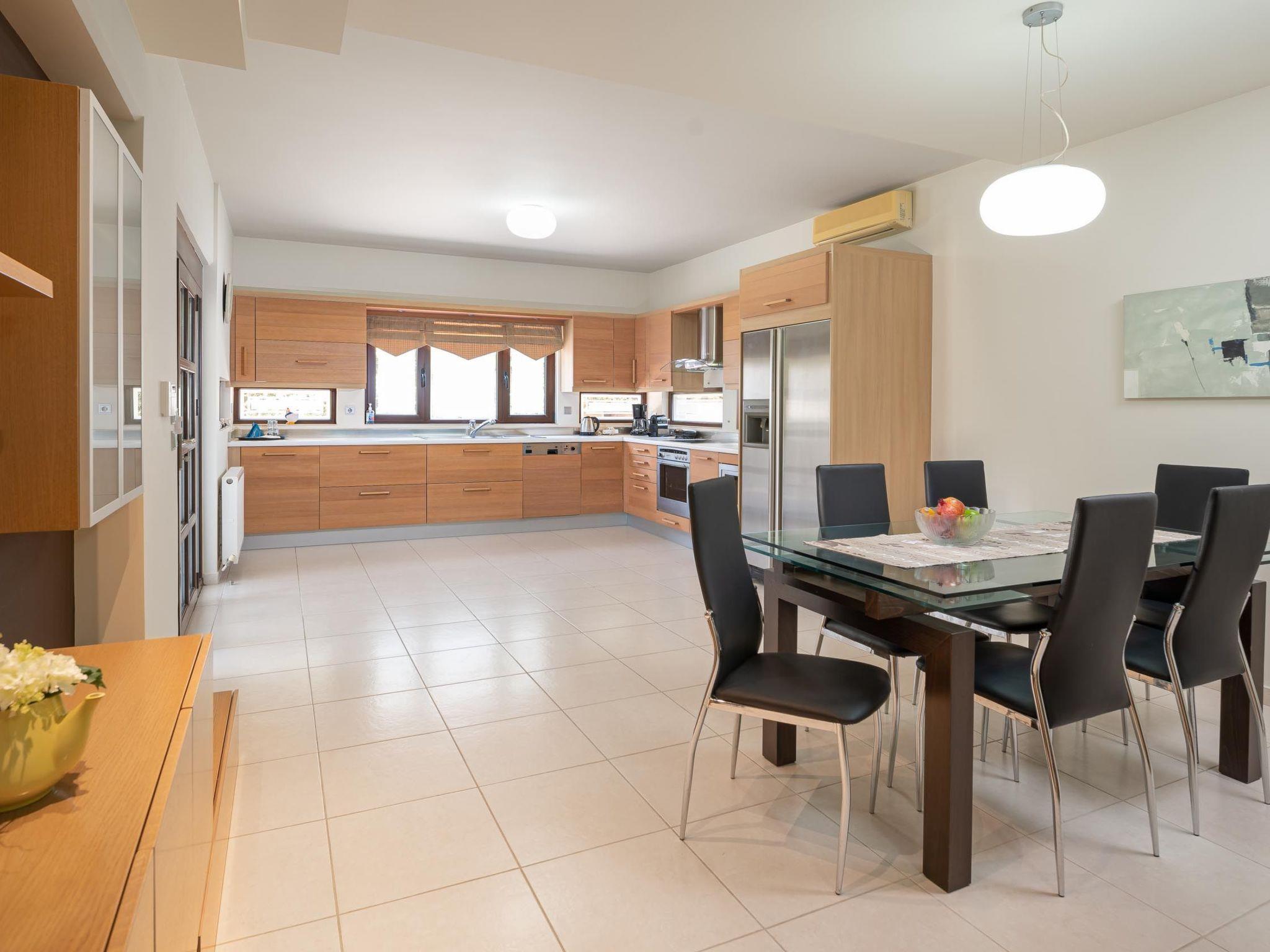 Delta Wellness Villa is set in Ialysos, only a 5-minute drive from the amazing Ixia Beach. It offers a magnificent private swimming pool with reversed swimming system and hydro massage features. Its modern design, along with an incredible position which is quite near to Rhodes City makes this villa the perfect accommodation. The sophisticated decoration and the inviting atmosphere will offer you a memorable stay. It accommodates up to 10 guests and is the perfect family home, set in a serene natural environment.This beautifully crafted villa has 4 fully air-conditioned bedrooms, 2 double-bedded rooms, and 2 with twin beds. Also, there are 2 single sofa beds in the living room. Three of the bedrooms include ensuite bathrooms with showers. There’s another bathroom with a bathtub as well. Also, guests will find a separate room with a and full gym equipment to enjoy a workout or a relaxing moment. There’s a fully equipped open-plan kitchen, suitable for any meal preparation. Guests will find friendly seating areas along with the living room that has a smart TV. There’s free Wi-Fi access throughout the property. The decoration is relaxing and peaceful with modern details and minimal style. Outdoors, there’s the private swimming pool with its sunbeds for your ultimate relaxation, surrounded by beautiful green scenery. There, you can enjoy the hydromassage feature and the reversed swimming system. Also, there’s a BBQ installation and a seating area to enjoy a gathering with your loved ones. This exclusive property offers an optimum position to enjoy the sunlight and the utmost privacy. Delta Wellness Villa is a modernly designed home offering to its guests a wide range of indoor and outdoor amenities that allow relaxing and enjoyable holidays.