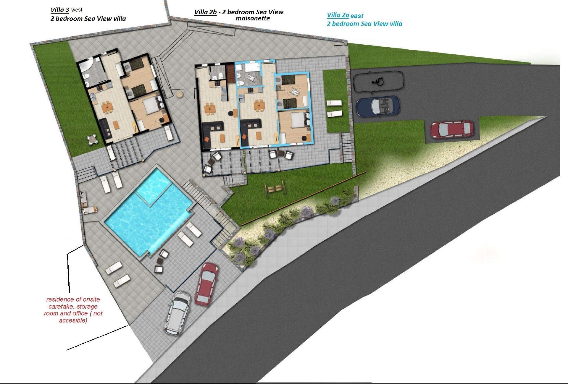 2 of the 4 villas are on ground level and accessible for wheelchair and baby stroller.