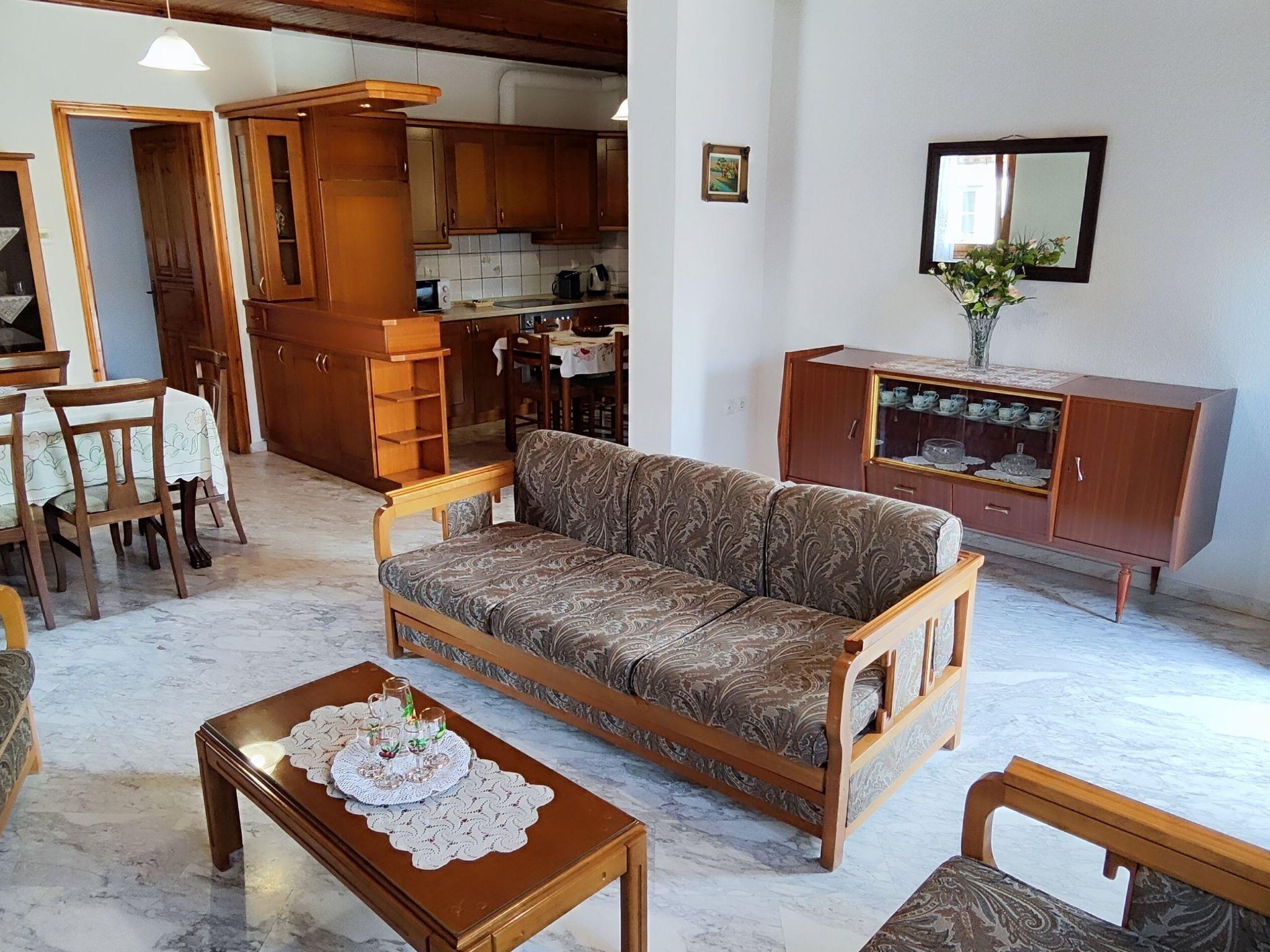 Nestled in Kastraki, the apartment's location is second to none. Just 30 meters away, guests can explore local taverns, a mini-market, a cafe, and a playground, making it an excellent spot for both convenience and exploring the local culture. The nearby Museum of Geological Formations offers a fascinating glimpse into the area's natural history. Moreover, the apartment serves as a starting point for scenic trails, including the path to the Holy Spirit and the chapel of Agios Georgios Mandilas, both within a stone's throw away.