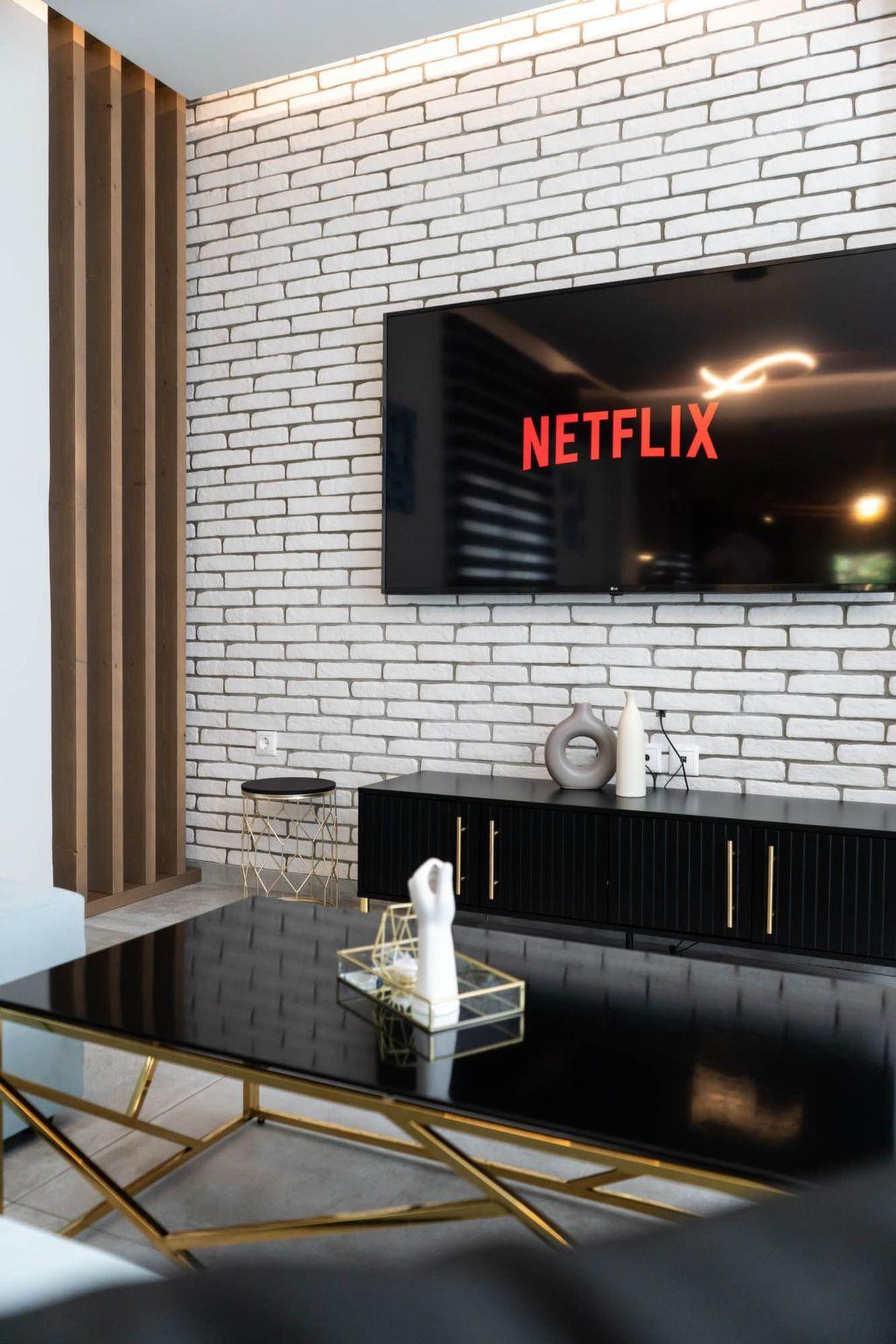 The heart of the apartment is the cozy living room, thoughtfully furnished with a convertible sofa that effortlessly transforms into an additional bed. This provides sleeping accommodations for up to six people, making it a perfect choice for families or groups of friends traveling together. As night falls, gather around the large smart TV, which is equipped with internet access, in each of the three rooms. The expansive screen in the living room ensures that your movie nights are nothing short of spectacular.