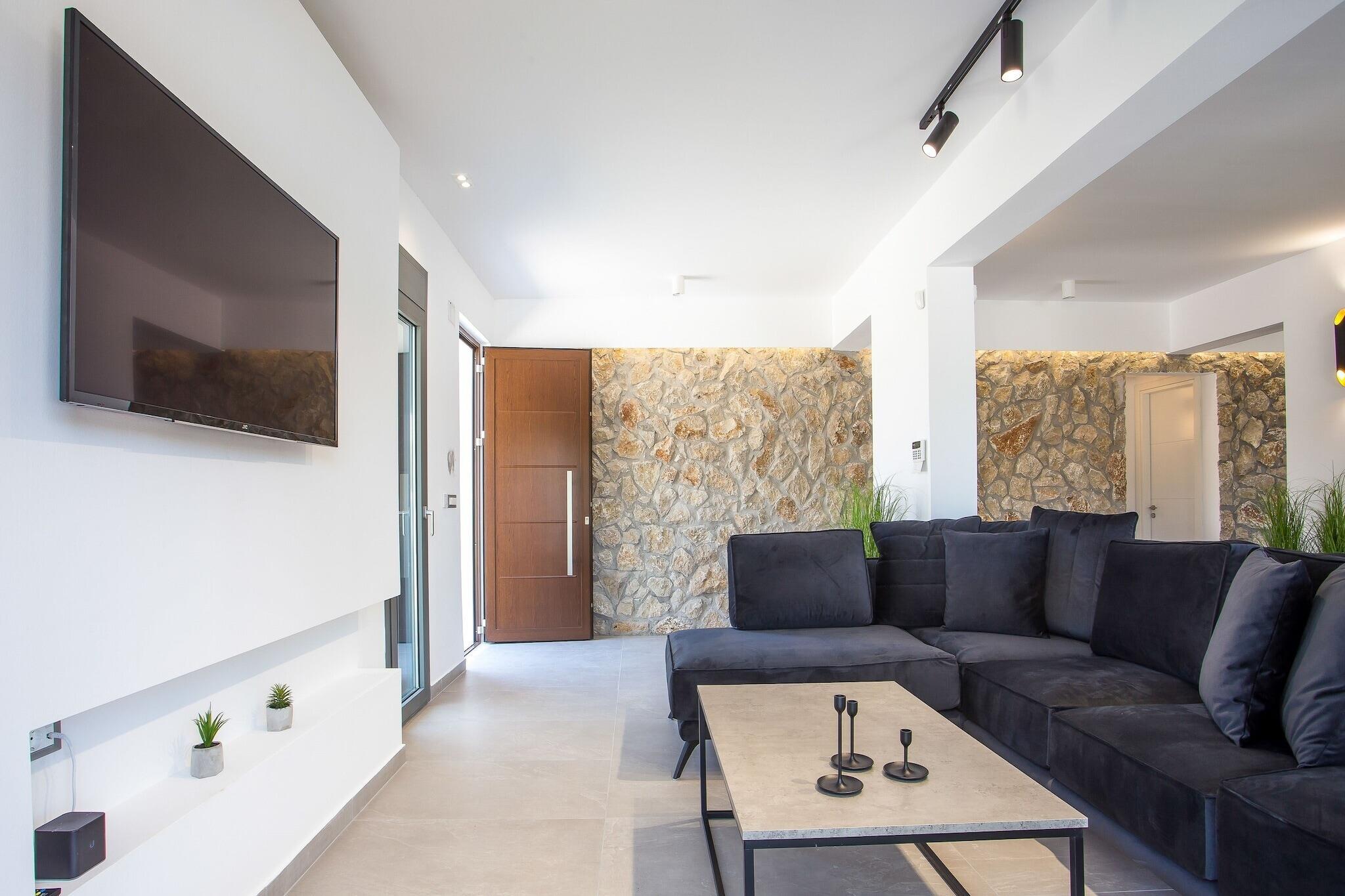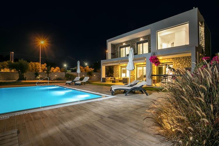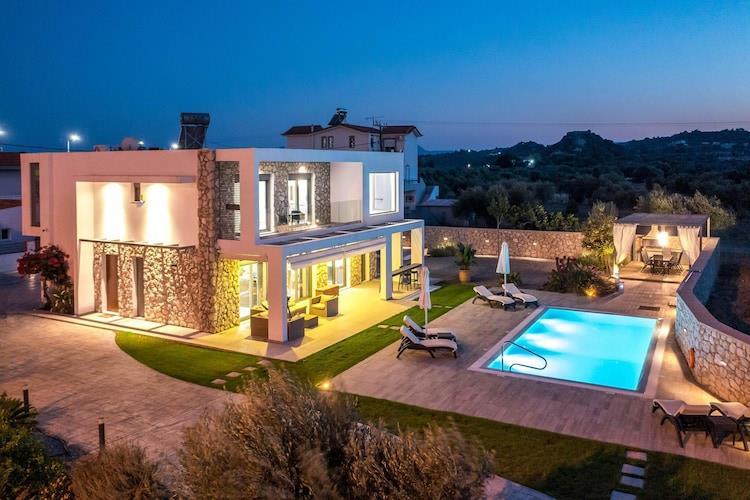Beliggende i den fredelige udkant af Faliraki og Kalythies, tilbyder denne nybyggede, moderne villa den perfekte blanding af luksus, privatliv og ø-charme. Kun to minutters kørsel fra nogle af Rhodos' mest fantastiske strande - Traounou, Ladiko, Faliraki og den berømte Anthony Quinn-bugt - er villaen omgivet af 1.360 m² frodigt land, omgivet af høje mure, der sikrer fuldstændig afsondrethed og ro. Det rummelige udendørsområde inviterer dig til at slappe af i ægte middelhavsstil. Slap af på solterrassen ved din private pool, nyd lange eftermiddage i solen, eller saml dig omkring grillområdet til mindeværdige middage under åben himmel. Store skydedøre forbinder det elegante opholdsrum med terrassen og fylder interiøret med naturligt lys og en afslappende havbrise. Indenfor er villaen designet til komfort og stil. Den har fire smukt indrettede soveværelser, hver med eget badeværelse, med plads til op til otte gæster. Alle værelser har moderne boxmadras, sengetøj af høj kvalitet, mørklægningsgardiner og aircondition for afslappende nætter. Den åbne stue udstråler en lys og indbydende atmosfære med elegant indretning og et stort, buet smart-tv med internationale kanaler - perfekt til hyggelige aftener. Det fuldt udstyrede køkken tilbyder alt, hvad du behøver for ubesværet spisning, inklusive opvaskemaskine, vaskemaskine, ovn, kaffemaskine og meget mere. Villaen tilbyder ro og afsondrethed, men er bekvemt placeret til at udforske Rhodos. Rhodos by ligger 20 minutters kørsel væk, mens Lindos ligger cirka 30 minutter væk. Uanset om du vil slappe af ved poolen, nyde strandene eller opleve øens kultur, er denne villa den perfekte base for dit ophold på Rhodos.