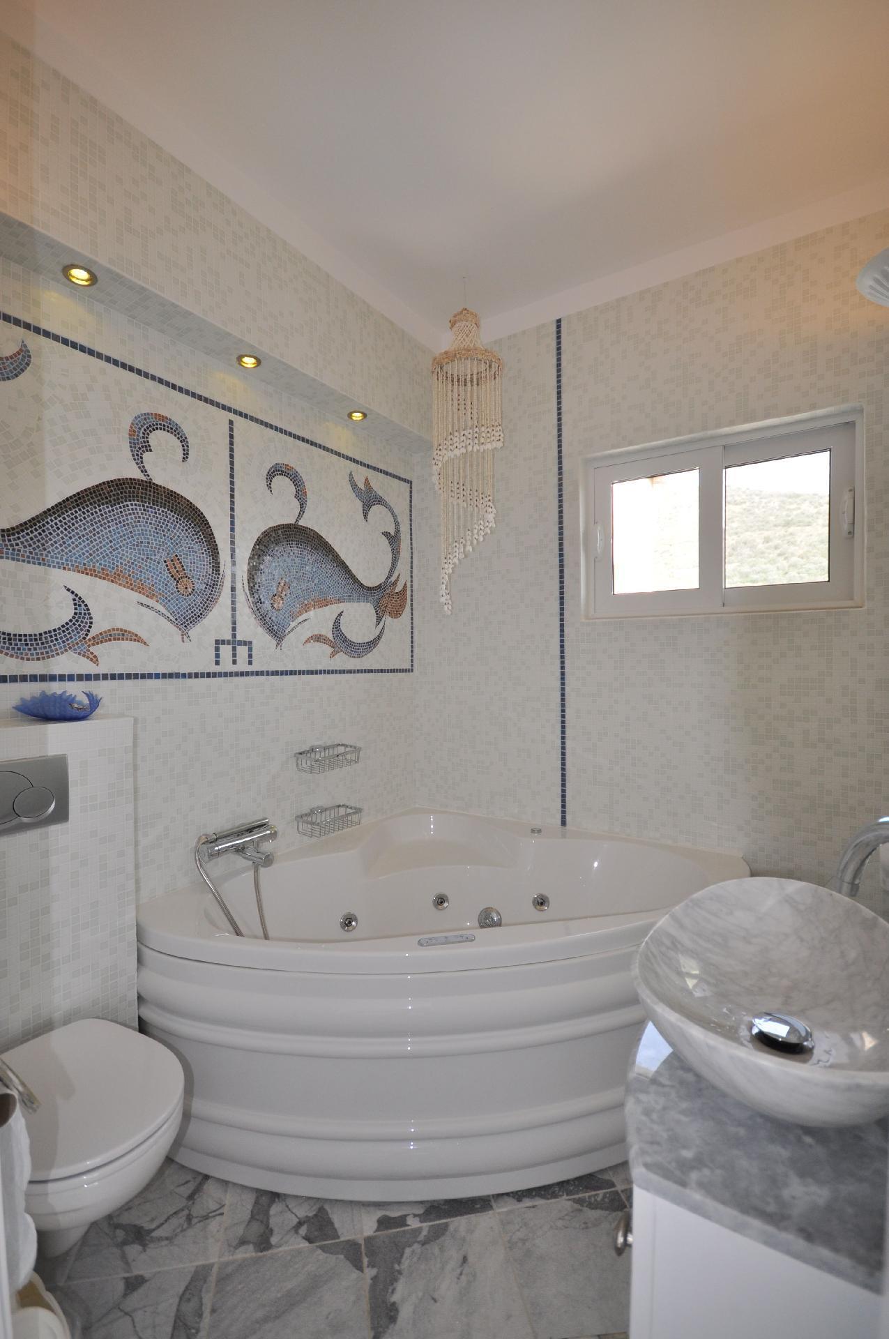 Within this architectural gem, you will find a generous living area spread over two floors, equipped with all the comforts of home and more. The ground floor comprises a tastefully furnished living room of around 100 m² with satellite TV, Wi-Fi, and an inviting lounge set next to a fireplace. A sophisticated dining area with seating for 12, a state-of-the-art kitchen, and a bedroom with en-suite bathroom ensure comfort at all times. The first floor houses 4 spacious bedrooms, each with air conditioning, private bathrooms and spacious balconies offering breathtaking sea views.
