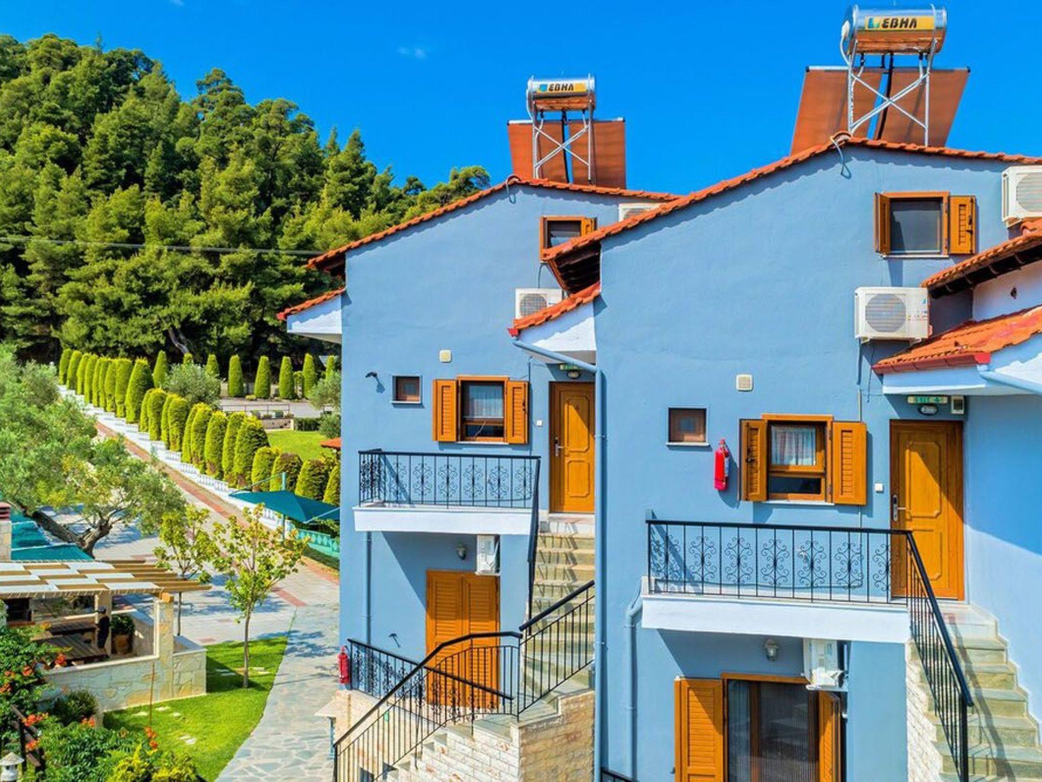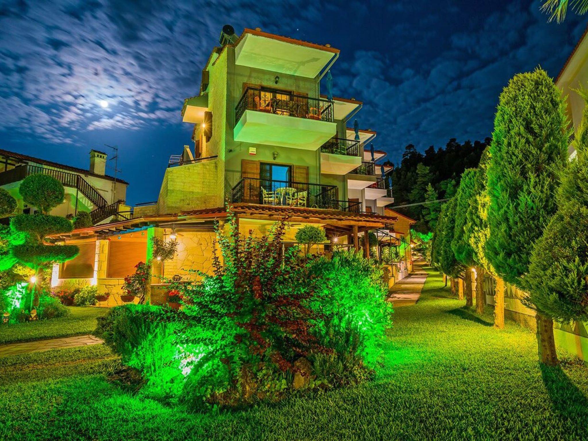 Akrathos houses consist of 8 new maisonettes, 2 suites, a traditional wooden house since 2008. A family run holiday aparthotel, located on a plot of 3000 sqm, giving its guests the feeling of home while enjoying the facilities and comfort of a hotel. Between the rooms and the sea view there is a lush garden with an elegant wooden barbecue that offers autonomy for lunch and dinner in summer, a spacious place for rest and relaxation