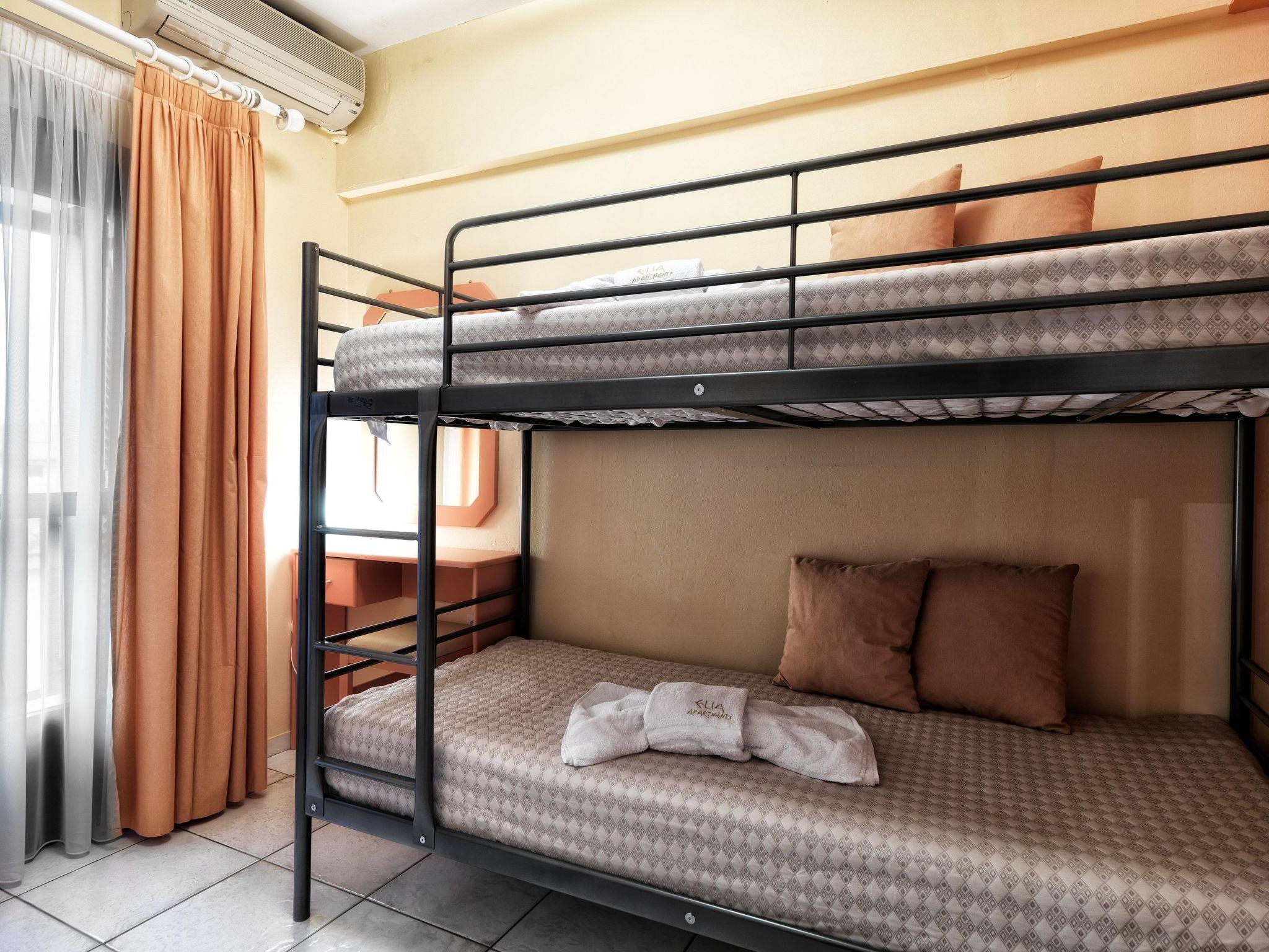 The maisonettes are next to each other and are located in the centre of the entire complex with a main view and entrance from the garden. There are two floors available. On the ground floor is the living area with an open-plan corner kitchen and a dining table for up to four people. The kitchen is equipped with a 2-ring hob, mini oven, coffee machine, kettle, small fridge and cooking and eating utensils. The cosy sofa invites you to relax. This sofa can be converted into a sofa bed for the 4th person (in the maisonettes where the second bedroom has a single bed). The furnishings also include a flat-screen TV with local and some German-language satellite channels, as well as a telephone, a hire safe and air conditioning. The ground floor also has a separate toilet. On the upper floor you will find the two bedrooms, one with a double bed (1.60m x 1.90m) and one with a single bed or a bunk bed, depending on the maisonette (single beds each 0.80m x 1.90m). Both bedrooms have a bathroom with shower, washbasin, hairdryer and WC. Your air conditioning (bedroom and living area) can provide both cooling and heating. The speed of the free Wi-Fi in your accommodation depends on the number of other guests who are logged in.