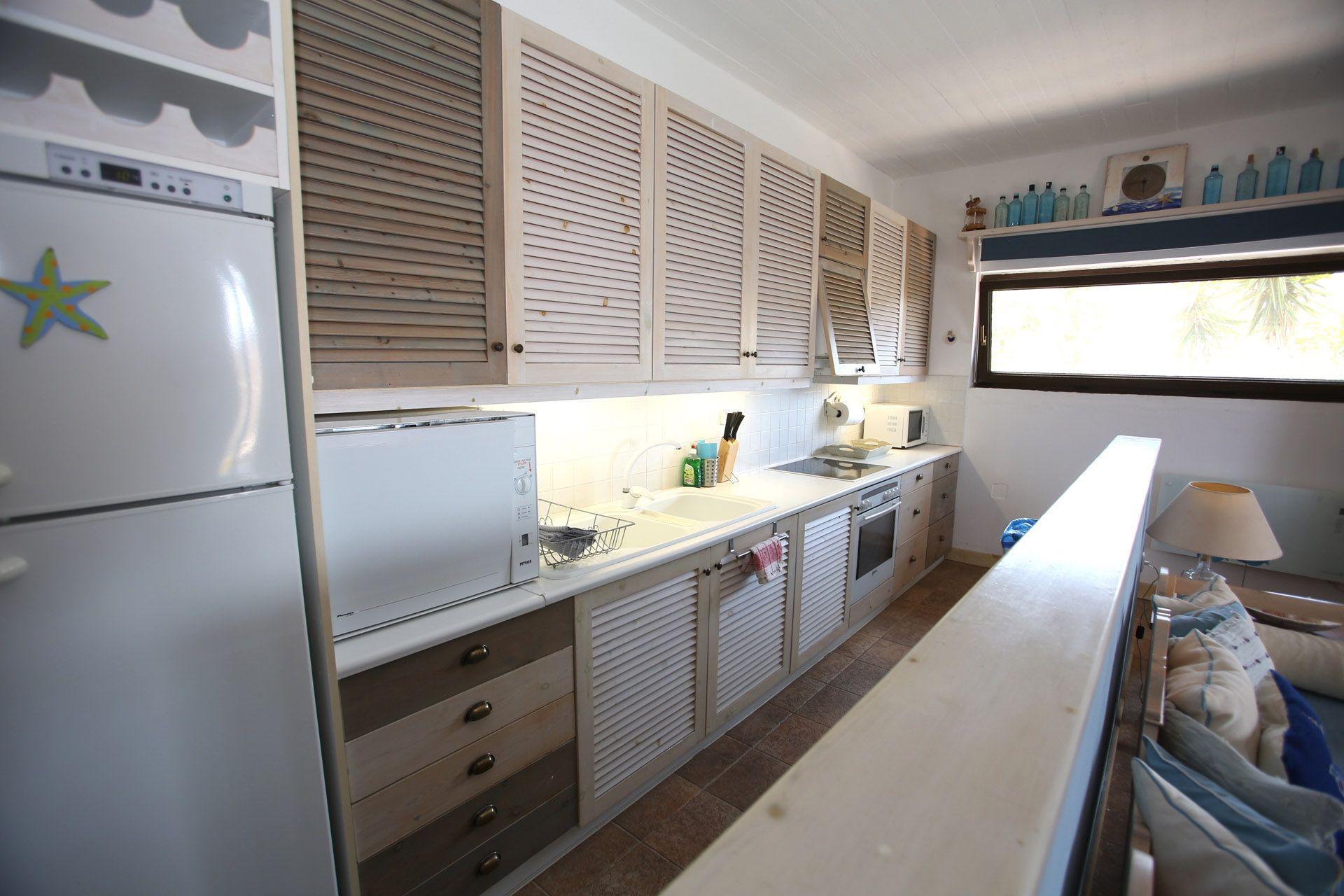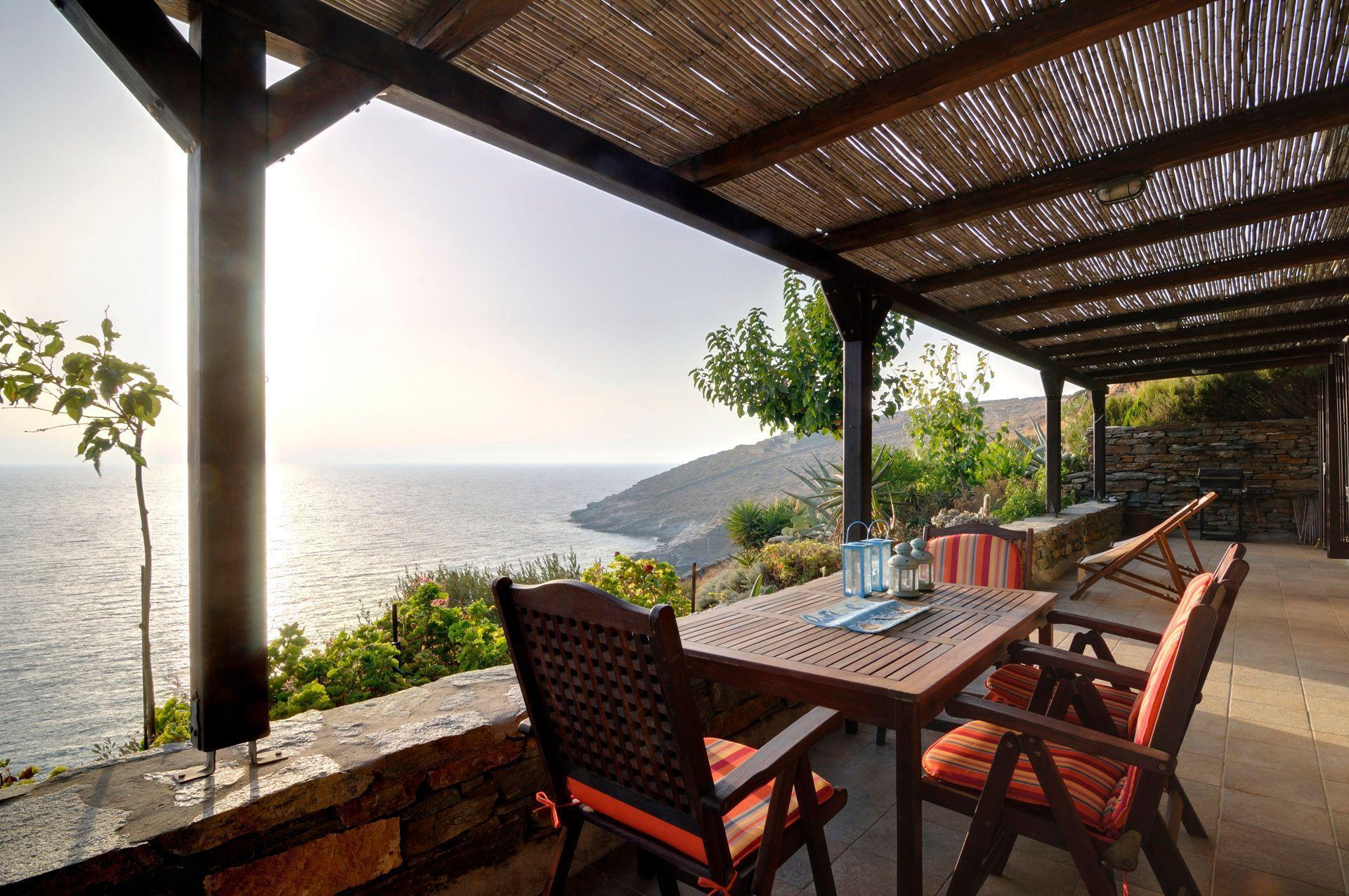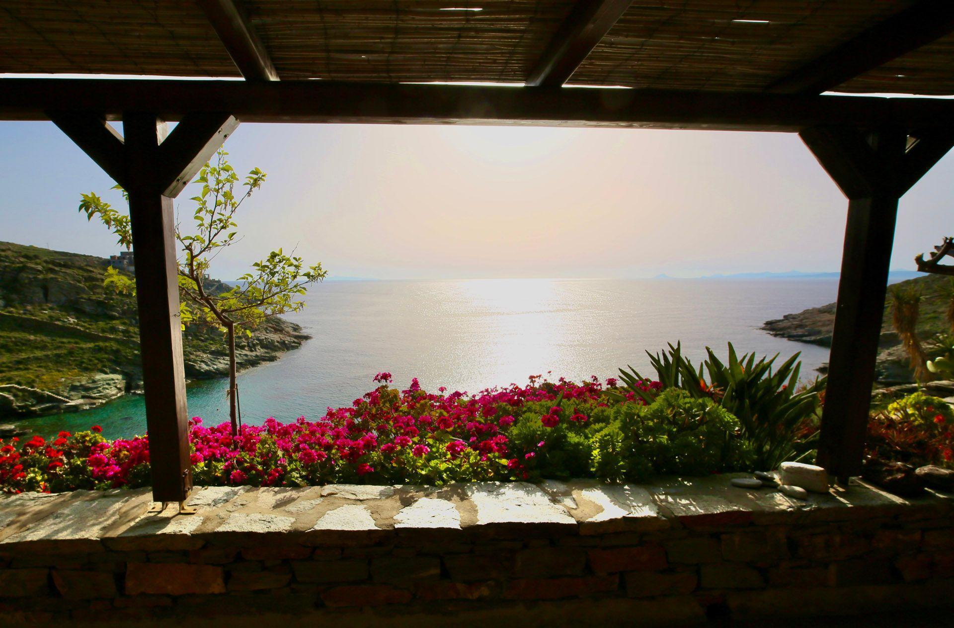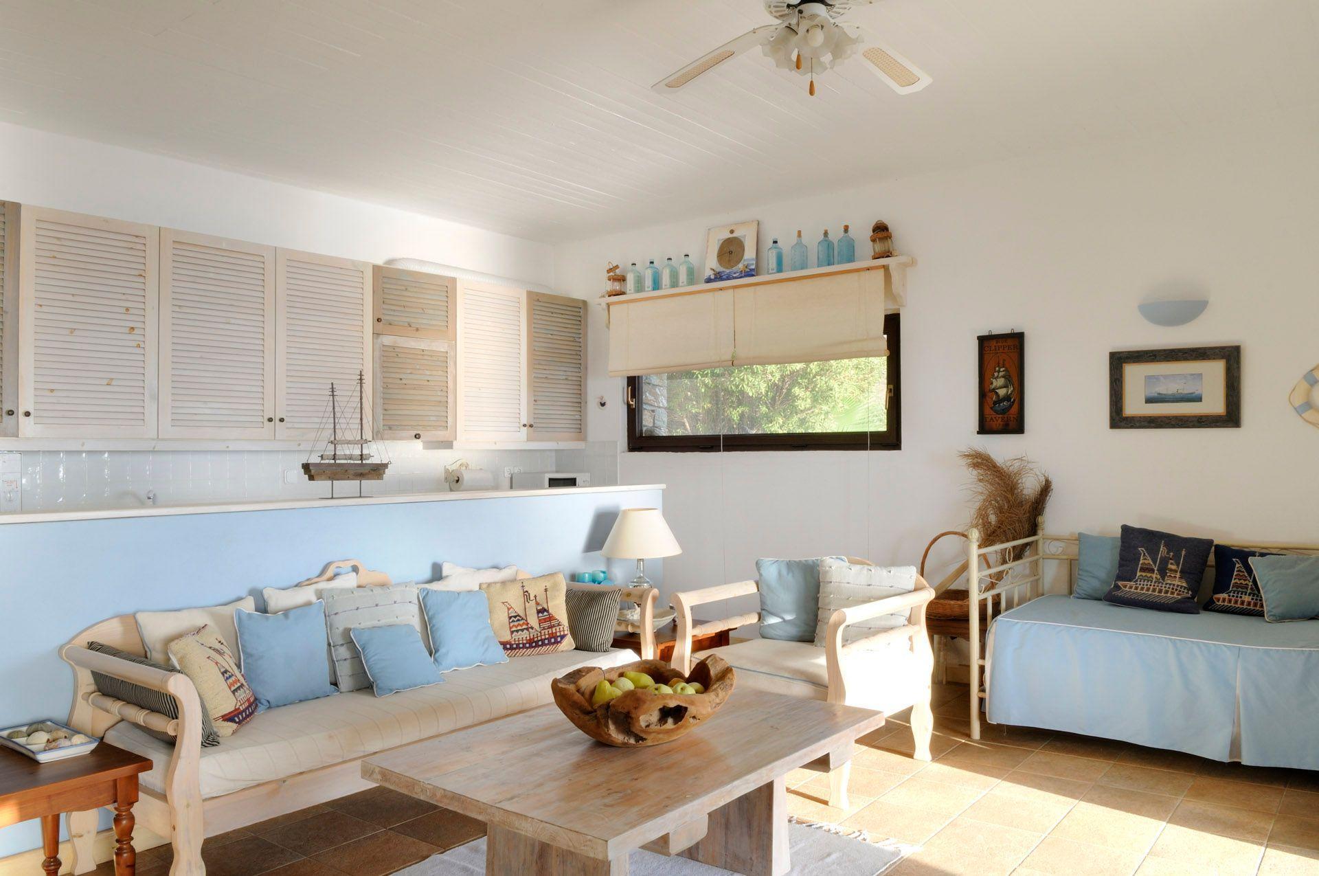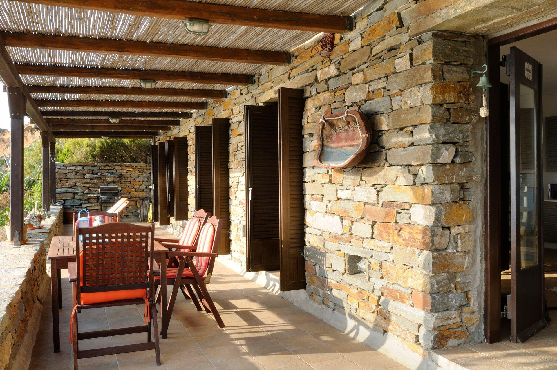 A charming spacious 105 sqm apartment that occupies the entire garden level of the Villa. It is an autonomous house, with its own independent entrance and outside spacious reed-shaded sitting area, offering a unique “on-the-sea”, feet –in-the-water vacation experience and a high level of privacy, a reason why it remains a favorite among our seasoned guests. Not suitable for families with children under 4. This is a self contained apartment 2 bedroom, 1 bathroom (110 sm.), VERY close to the water (17 m!), very private, a stupendous terrace, with an amazing view and quality furnishing & decorations. Sweeping 180 degree sea and sunset view Property with high quality furnishings Immediate beach access (3 min walk)- Maria Beach House (BH) is a luxurious, charming spacious apartment that occupies the whole lower level of the Villa Phil. Maria BH is a completely independent house, with its own independent entrance and outside reed-shaded sitting areas, offering a unique “on-the-sea”, feet –in-the-water vacation experience, a high level of privacy and remaining a favorite among seasoned guests. The upper level of the unit is occupied by the owners who provide daily support Inside: Large living nautically themed living room with single bed-divan (80X200cm) and immediate access to sea-viewing terrace & garden, dining hall, open plan fully equipped kitchen, master bedroom (queen size, built bed), guest bedroom (two singles), one large bathroom with shower. Equipment: 32” LCD HD TV, DVD, mini Hi-Fi, ceiling fans in all rooms, quality bedroom anatomic mattresses, kitchen with quality appliances by NEFF & BOSCH, refrigerator, oven, hood, dishwasher, microwave, mixer, blender, coffee machine, espresso maker, toaster, solar water heater, vacuum cleaner, clothes washer (shared), outside shower (shared), water softener. 1 GB wifi per week. Outside: 70 sq meters of reed-shaded terrace in the garden with sea view, teak wood outside furniture, sun/lounge chairs, American gas-lava rock outside BBQ, open air parking, succulent/ Mediterranean garden.