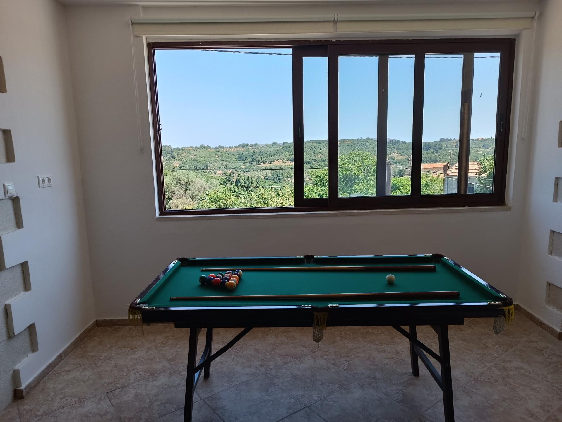 Bedroom Four: The villa’s master suite. With its own fireplace, pool table, and two access points, it feels more like a private apartment. The bathroom features a preserved stone-framed window now repurposed into a mirror — an architectural echo between time and reflection.