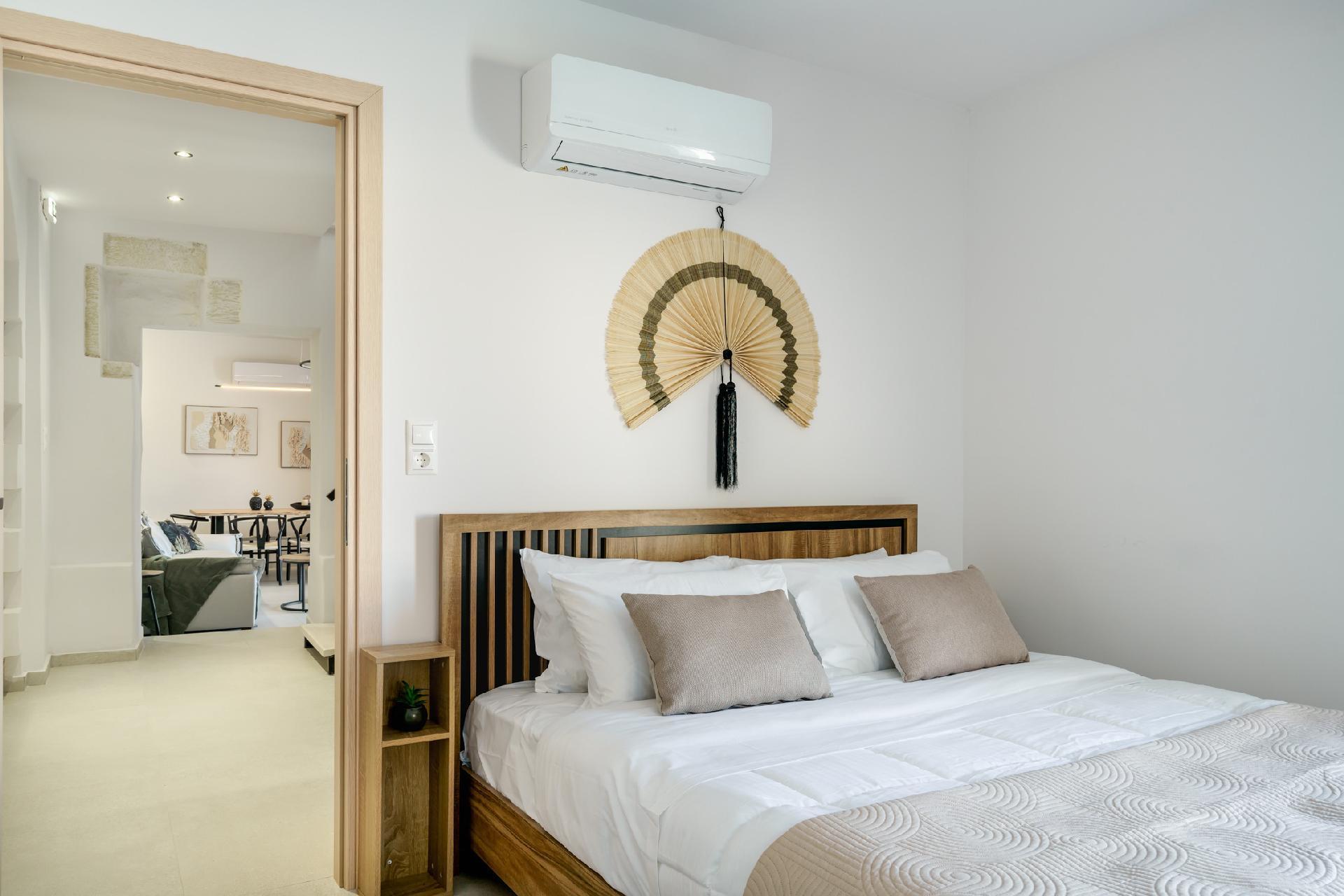 Welcome to Villa Angelo — a soulful composition of stone, light, and design. Tucked away in the peaceful village of Kato Poros, this two-level villa from the Muses Premium Collection invites you to experience Cretan living at its most serene. Four en-suite bedrooms, a private courtyard with pool, and touches of heritage architecture make this a refined destination for families and friends in search of meaningful escape.