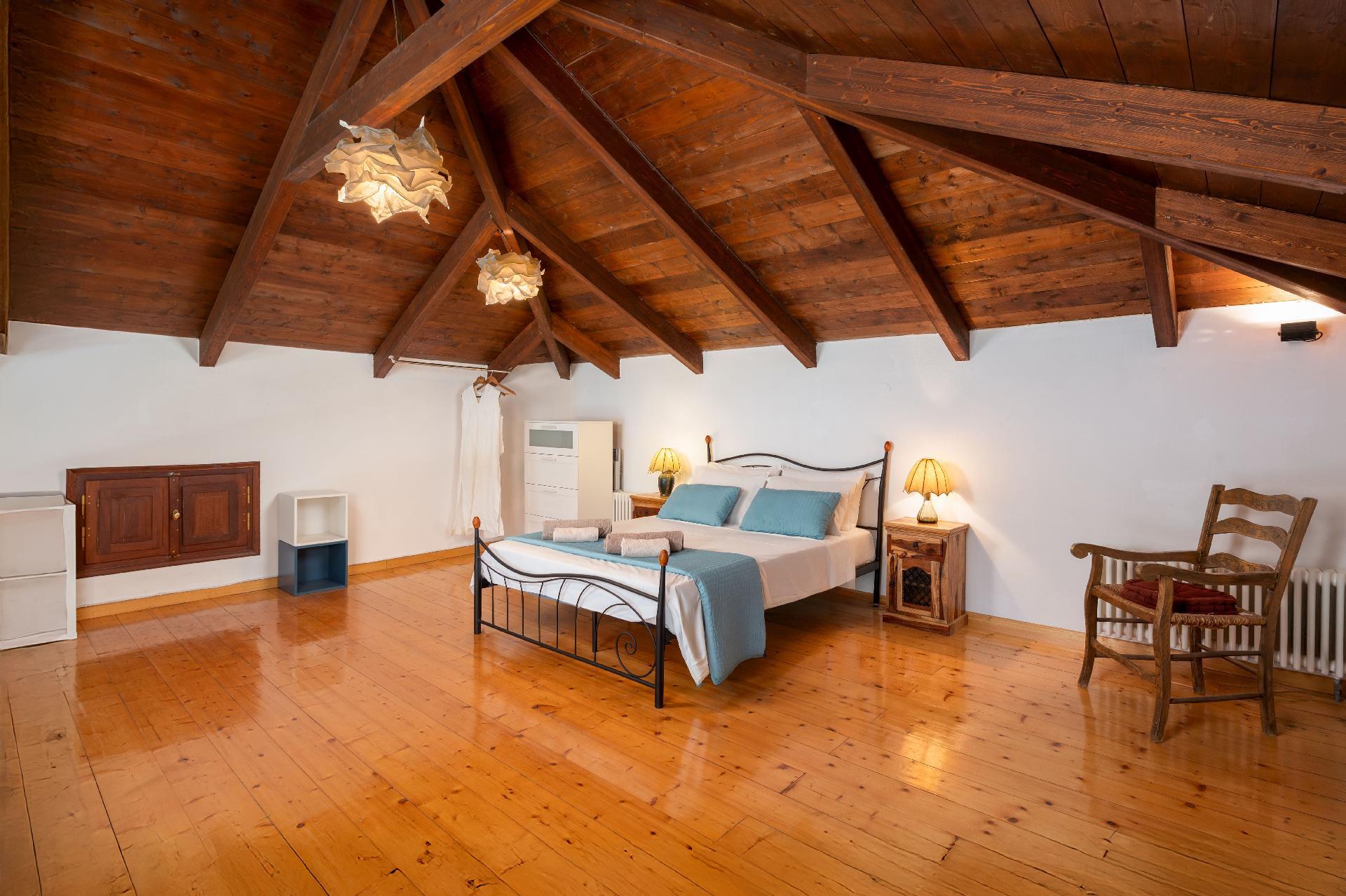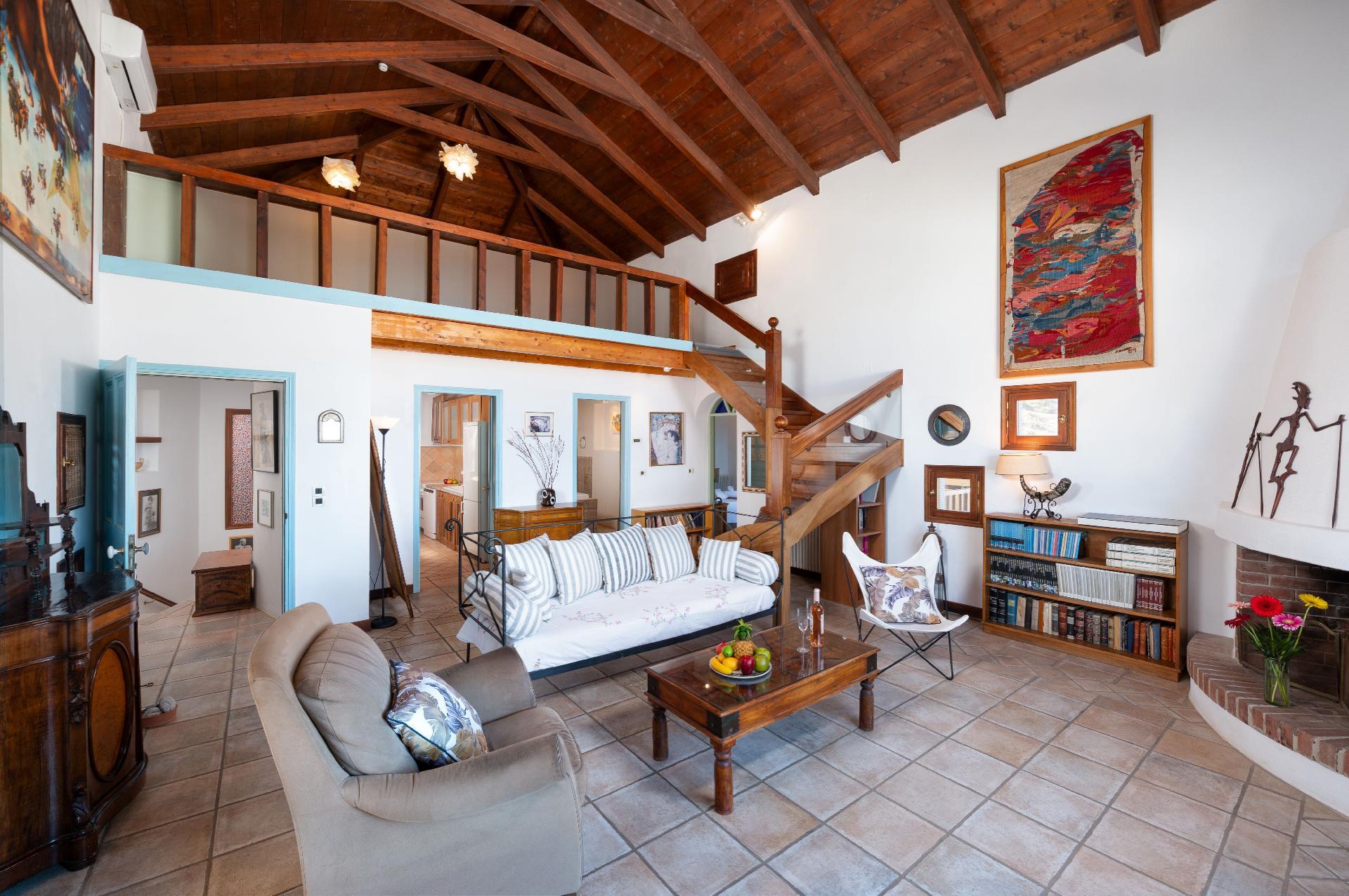 Mirabello Suites is a large two floor villa of about 380 sq m. in total, facing east towards sunshine. It consists of four master bedrooms plus one single bedroom. There is a master bathroom with a large bath tub and another two bathrooms, one with a shower. Laundry room, dressing room, two extra large living rooms, two kitchens, connecting corridors and a 30 sq mezzanine. It is built traditionally, with high qualitymaterials wooden floors irocco wood and antiqua umbria Italian tiles.