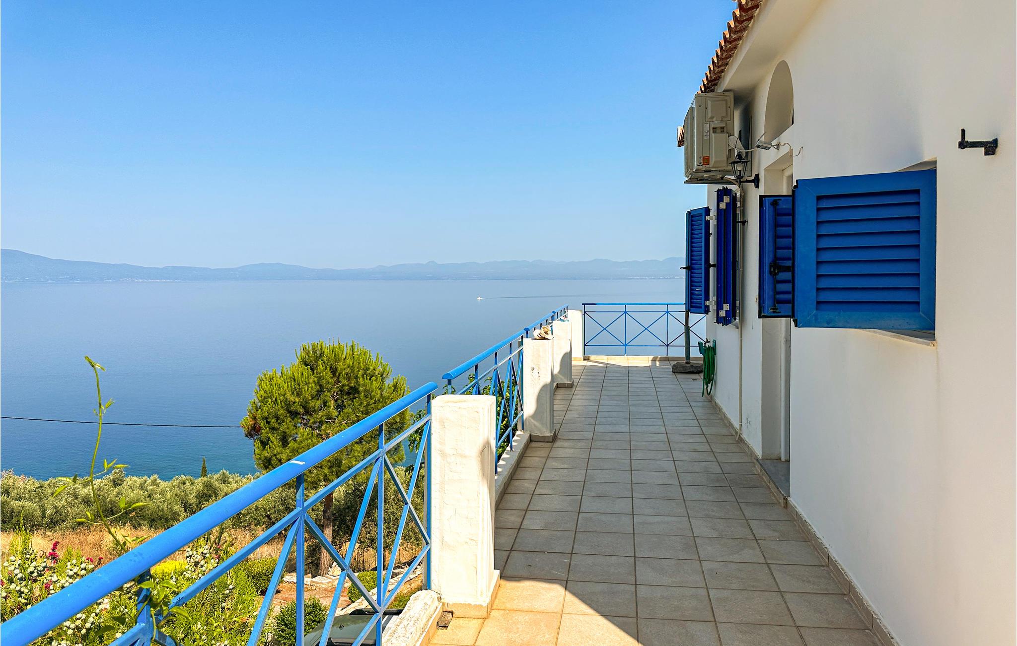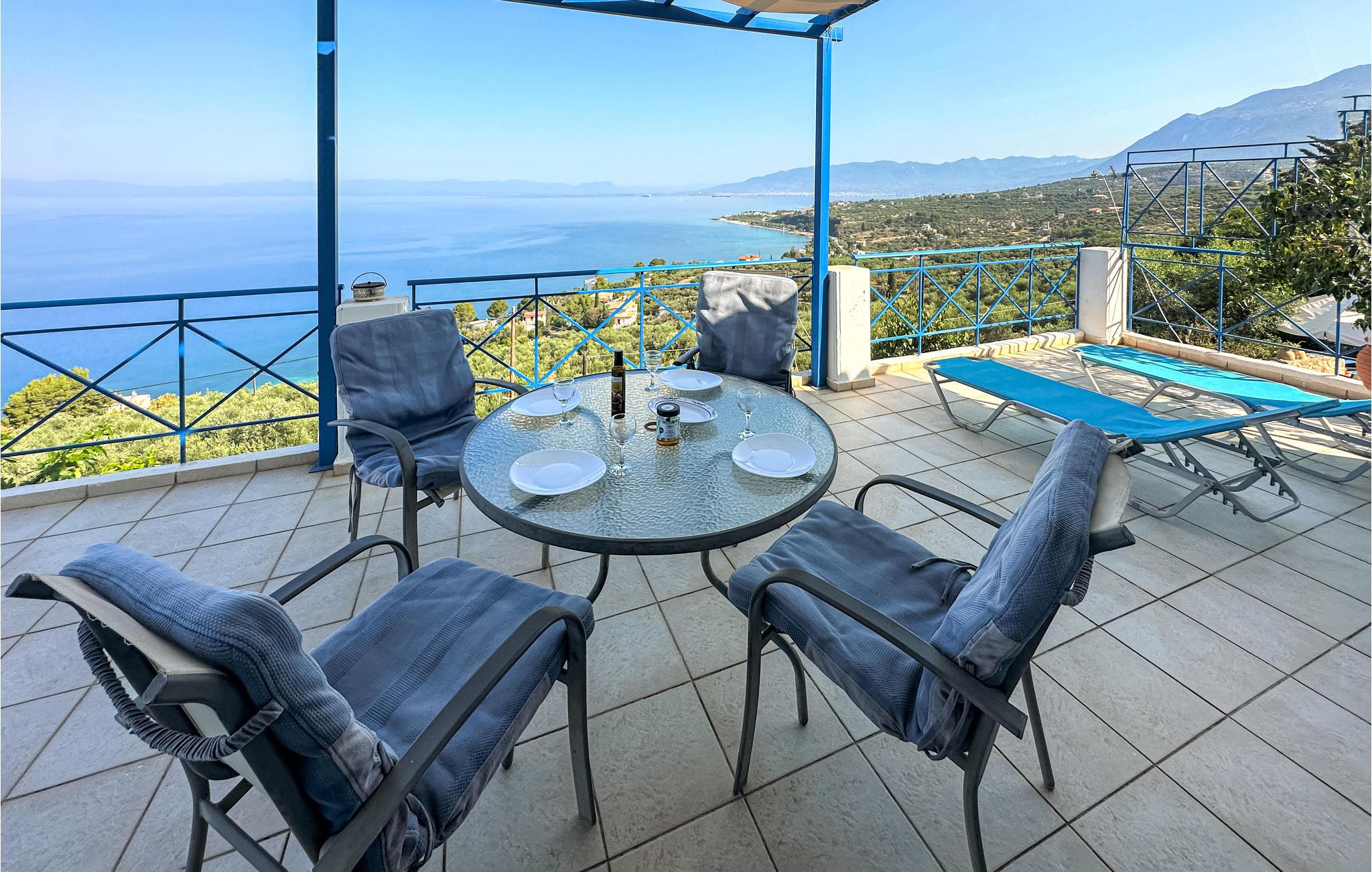 Dette velholdte halve dobbelthus med klimatiseret opholdsrum har en enestående panoramaudsigt over Kalamata og Messinia bugten.