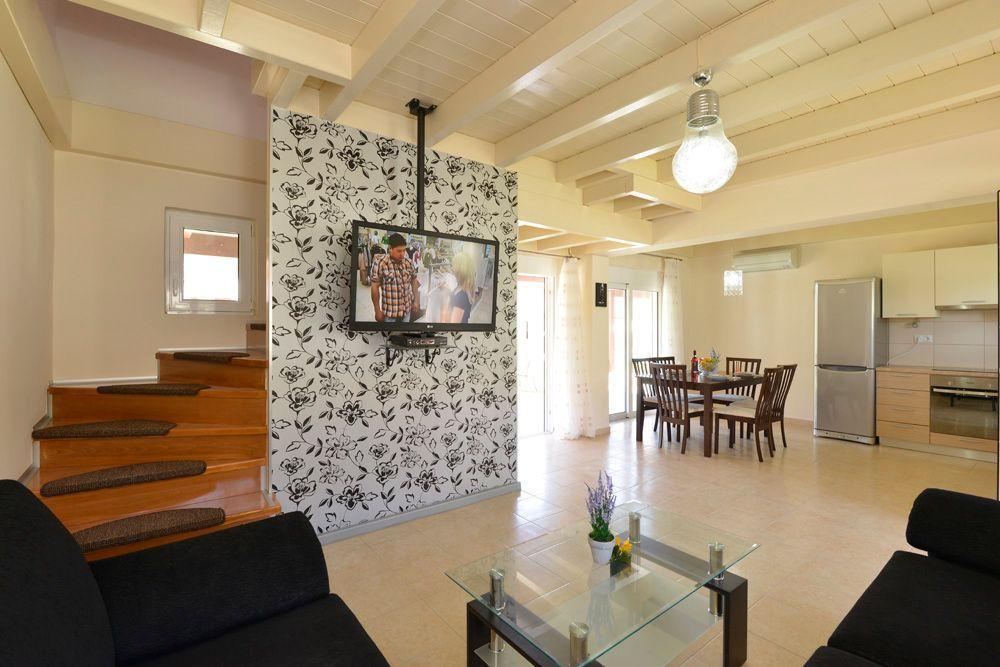 A car is recommended if you would like to explore the island. We can help you arrange one waiting for you at the airport from local rent car agencies that have very good prices! UPSTAIRS Master bedroom 1 / one double bed Bedroom 2 / one single bed and one bank bed. Big family bathroom (shower and wc) DOWNSTAIRS Living room Dinning area Kitchen ( fully equipped) . A WCAn new very nice sofa bed which can sleep 2 persons in the living room.