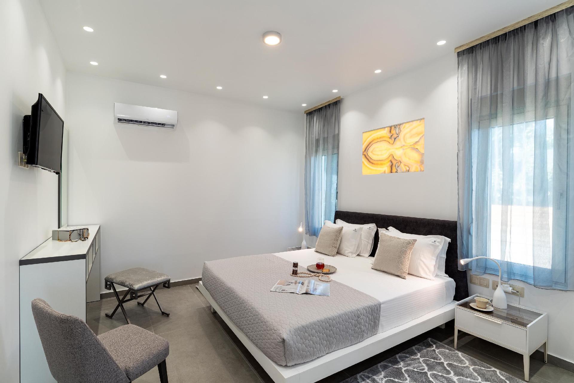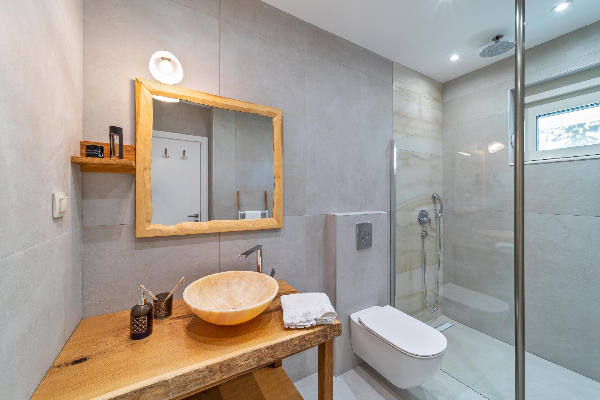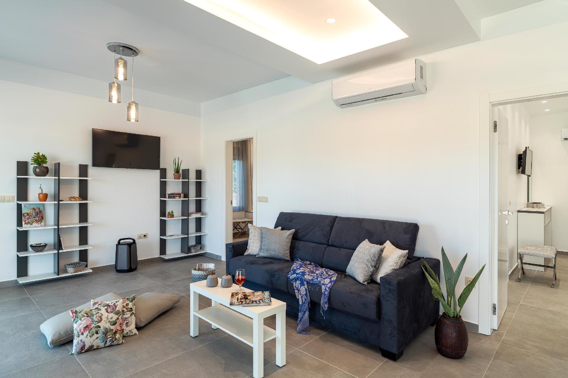 Villa Petra has two fully air-conditioned bedrooms with ensuite bathrooms with showers and a comfy double sofa-bed in the living room. There is also one bathroom with a shower next to the living room. The kitchen is fully equipped, suitable for any meal preparation accompanied by the sitting area. The interior design is absolutely incredible with a tasteful decoration. Guests will find flat screen TVs and free Wi-Fi access throughout the property. Outdoors, there’s a magnificent private swimming pool and sitting areas to relax under the Aegean sun. The BBQ facility and utensils offer you the opportunity to enjoy outdoor al fresco dinners by the pool.