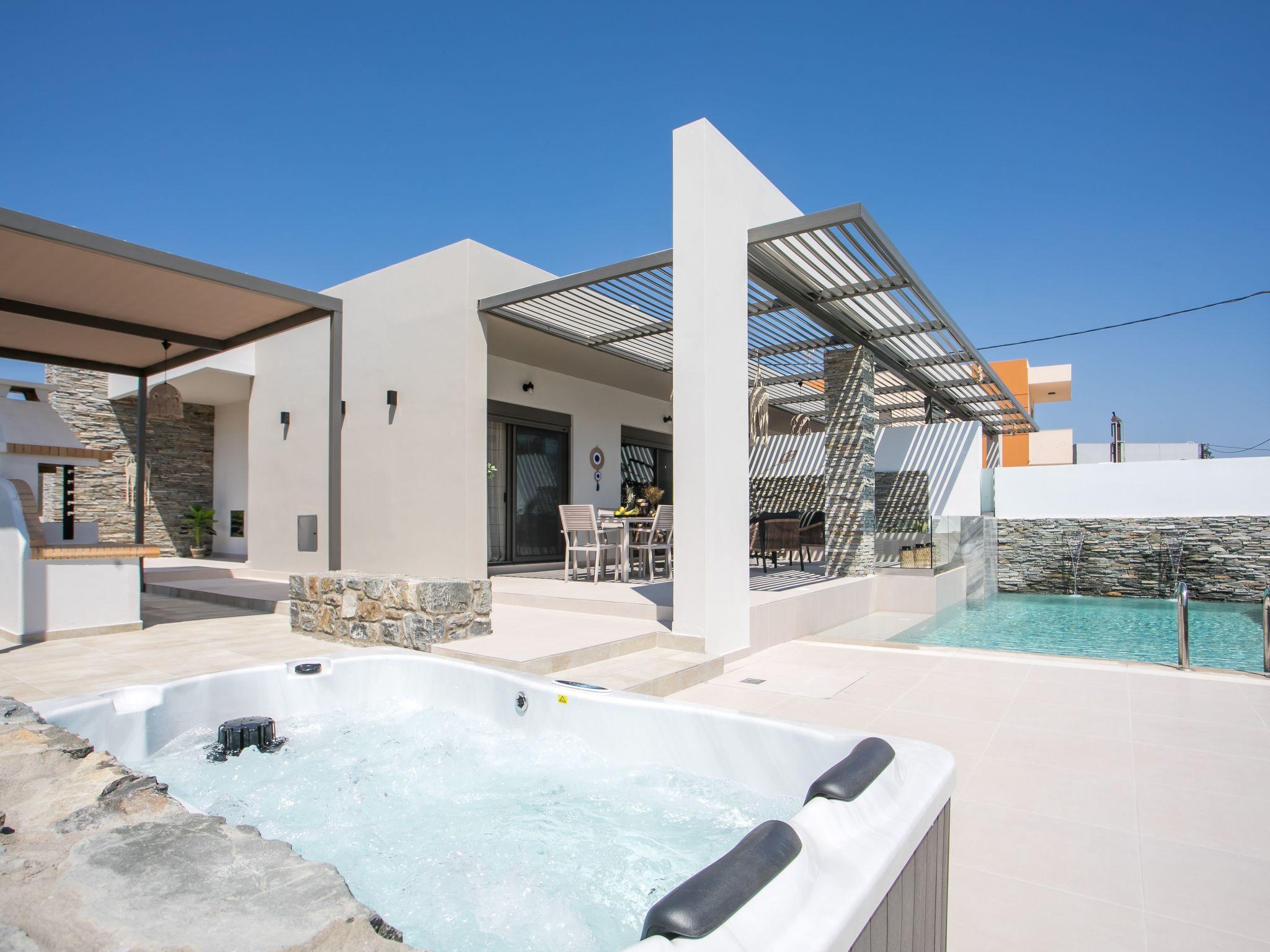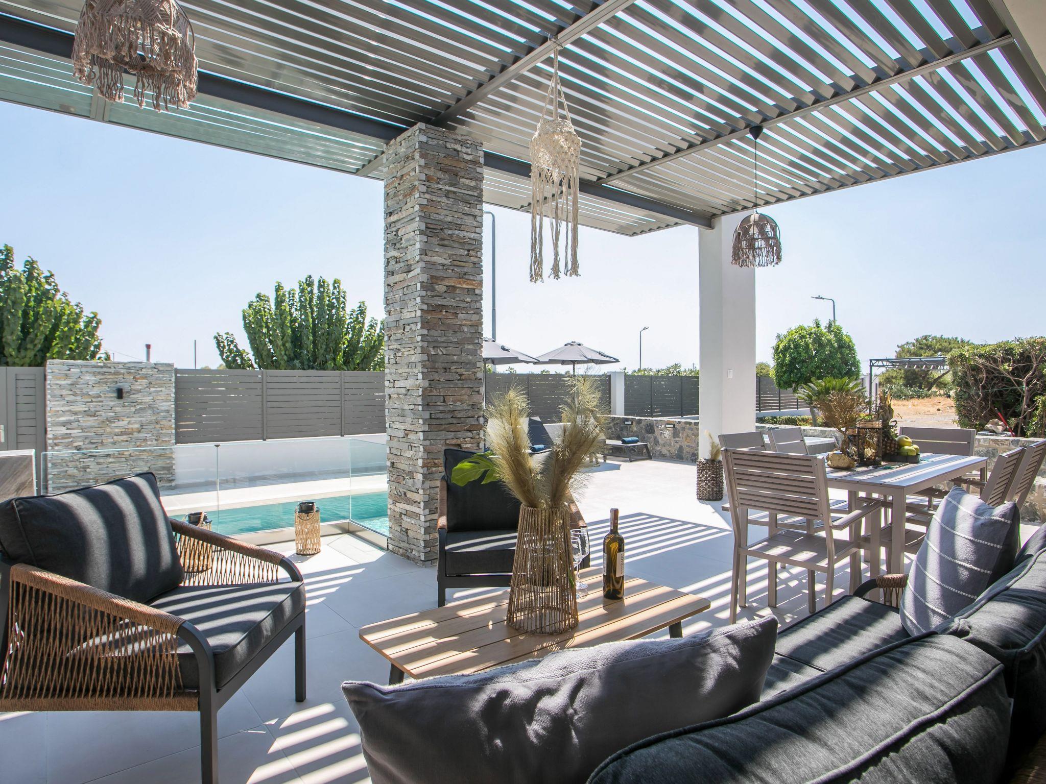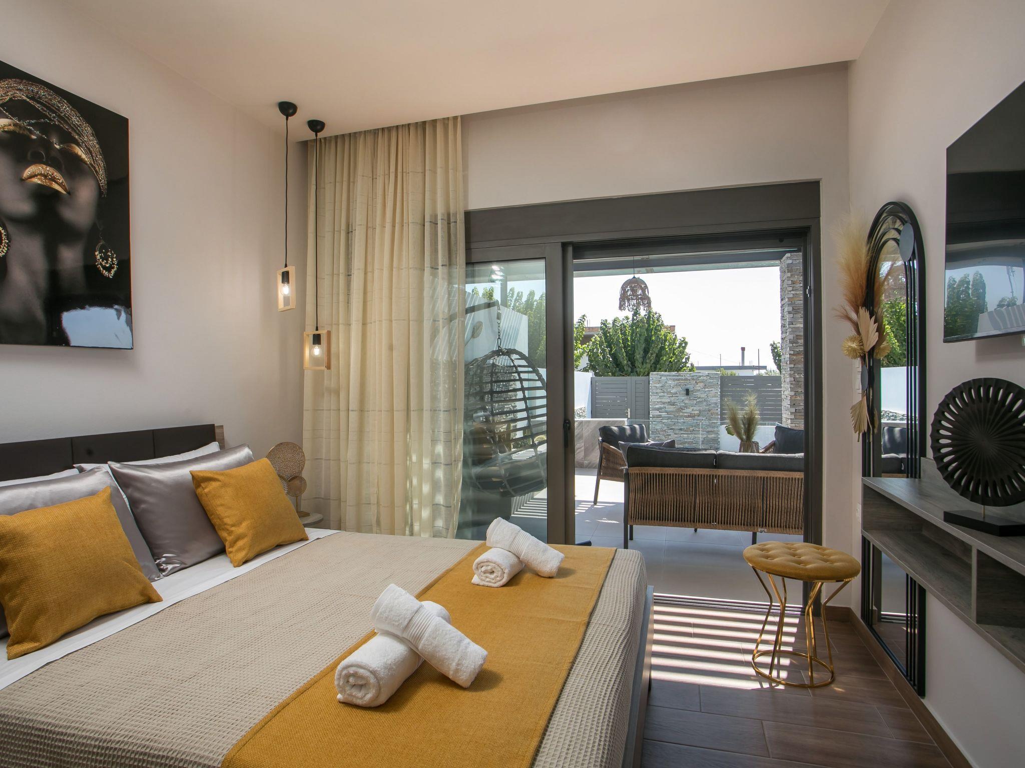 Escape to the serene Maro Luxury Villa, ideally located just steps from the stunning Afandou Beach. Designed to accommodate 4 guests, this modern villa features two comfortable air-conditioned bedrooms with double beds and ample wardrobe space, alongside a chic bathroom with a spacious shower. The cozy living room flows into a fully equipped kitchen and dining area, perfect for a relaxing stay.