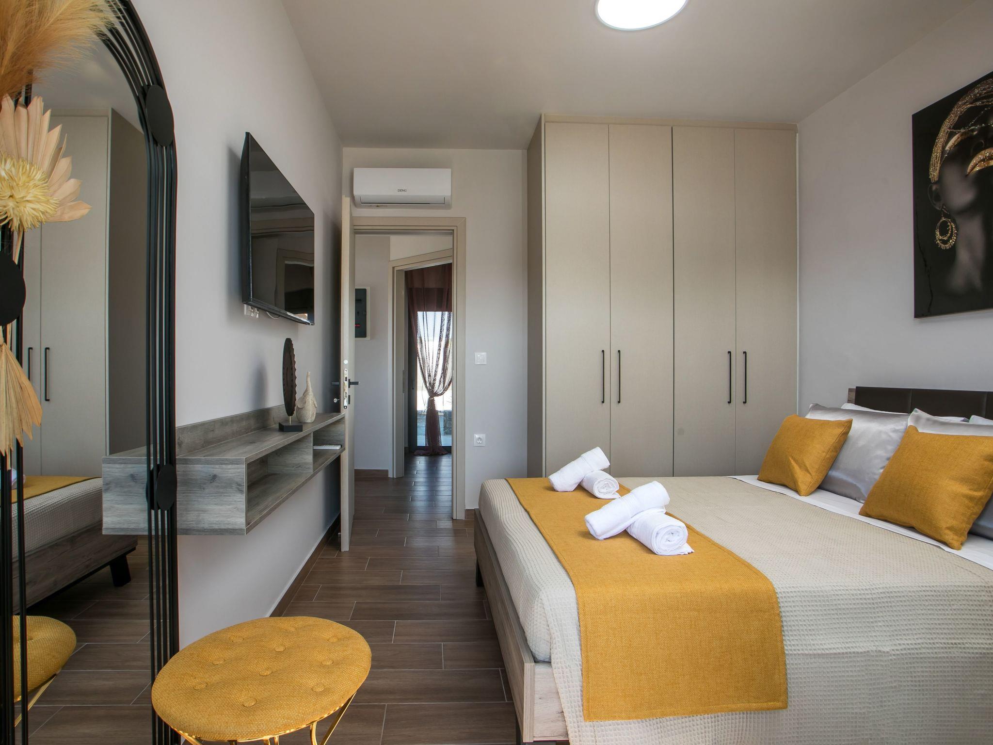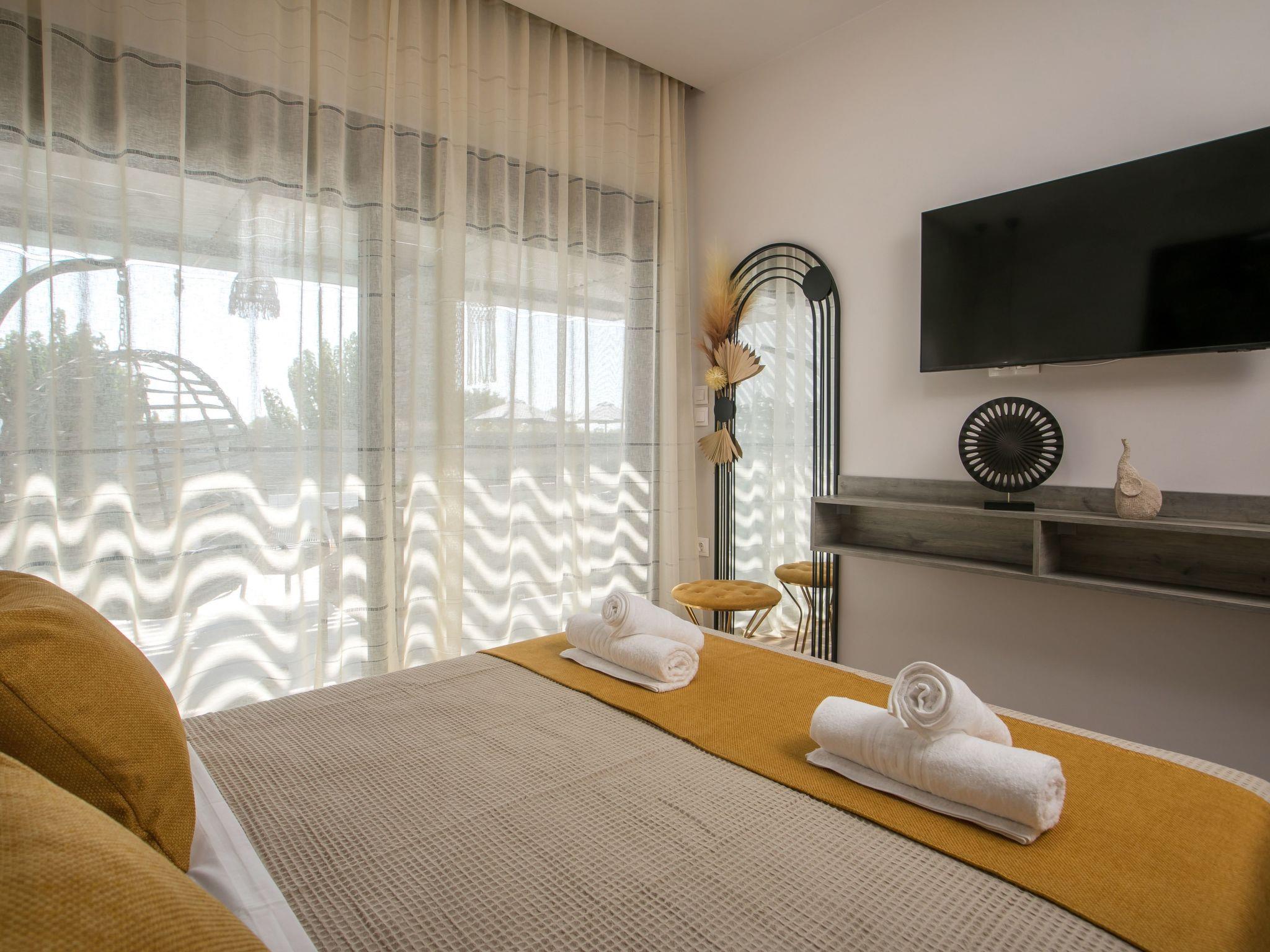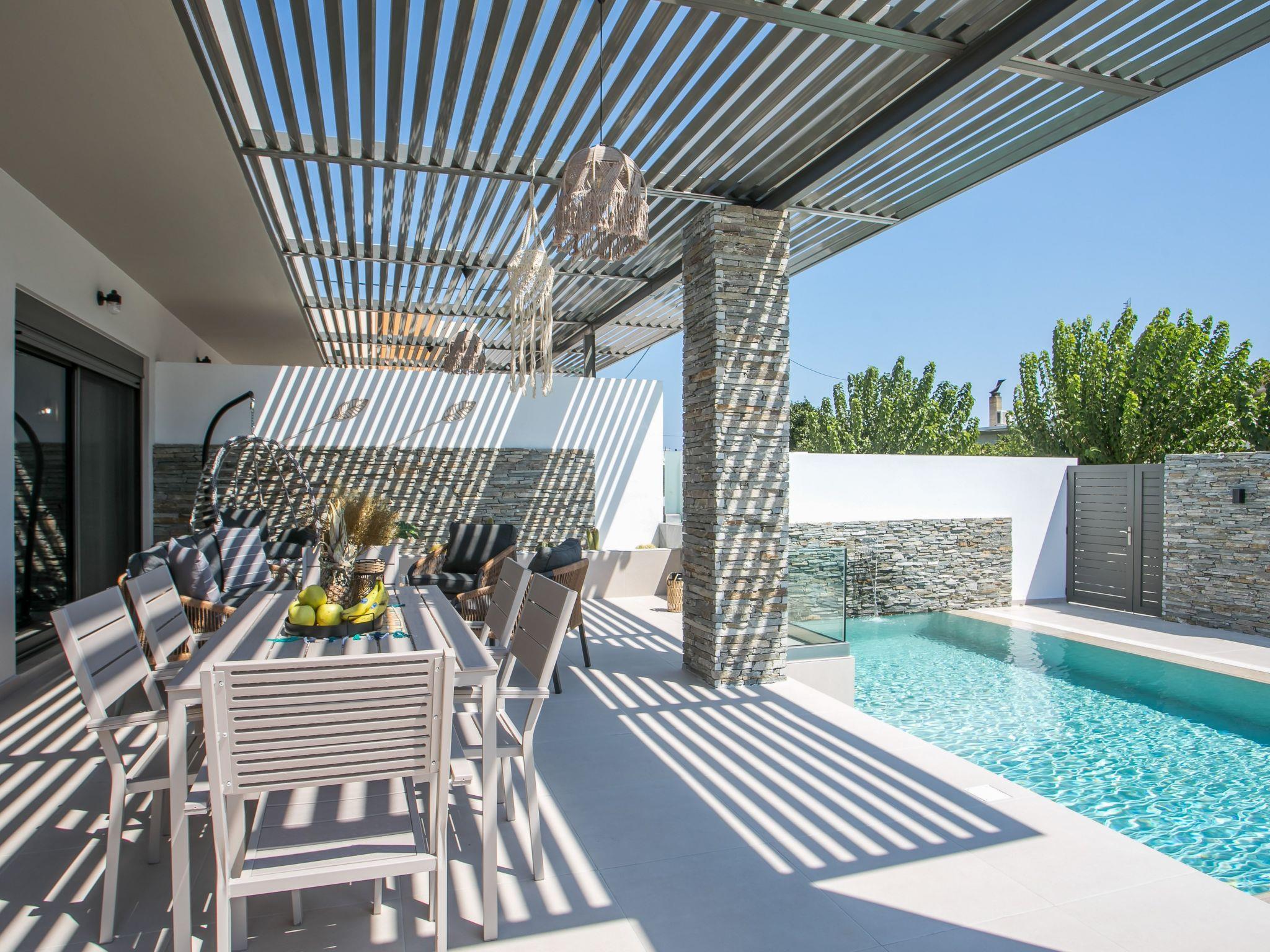 Escape to the serene Maro Luxury Villa, ideally located just steps from the stunning Afandou Beach. Designed to accommodate 4 guests, this modern villa features two comfortable air-conditioned bedrooms with double beds and ample wardrobe space, alongside a chic bathroom with a spacious shower. The cozy living room flows into a fully equipped kitchen and dining area, perfect for a relaxing stay.