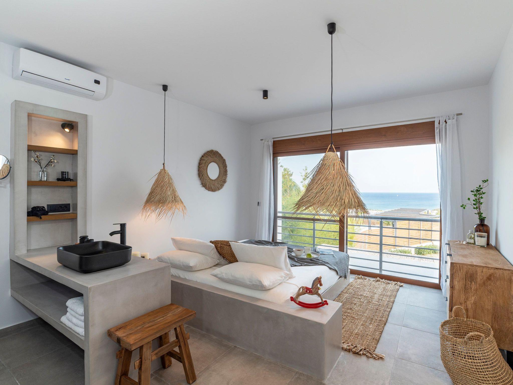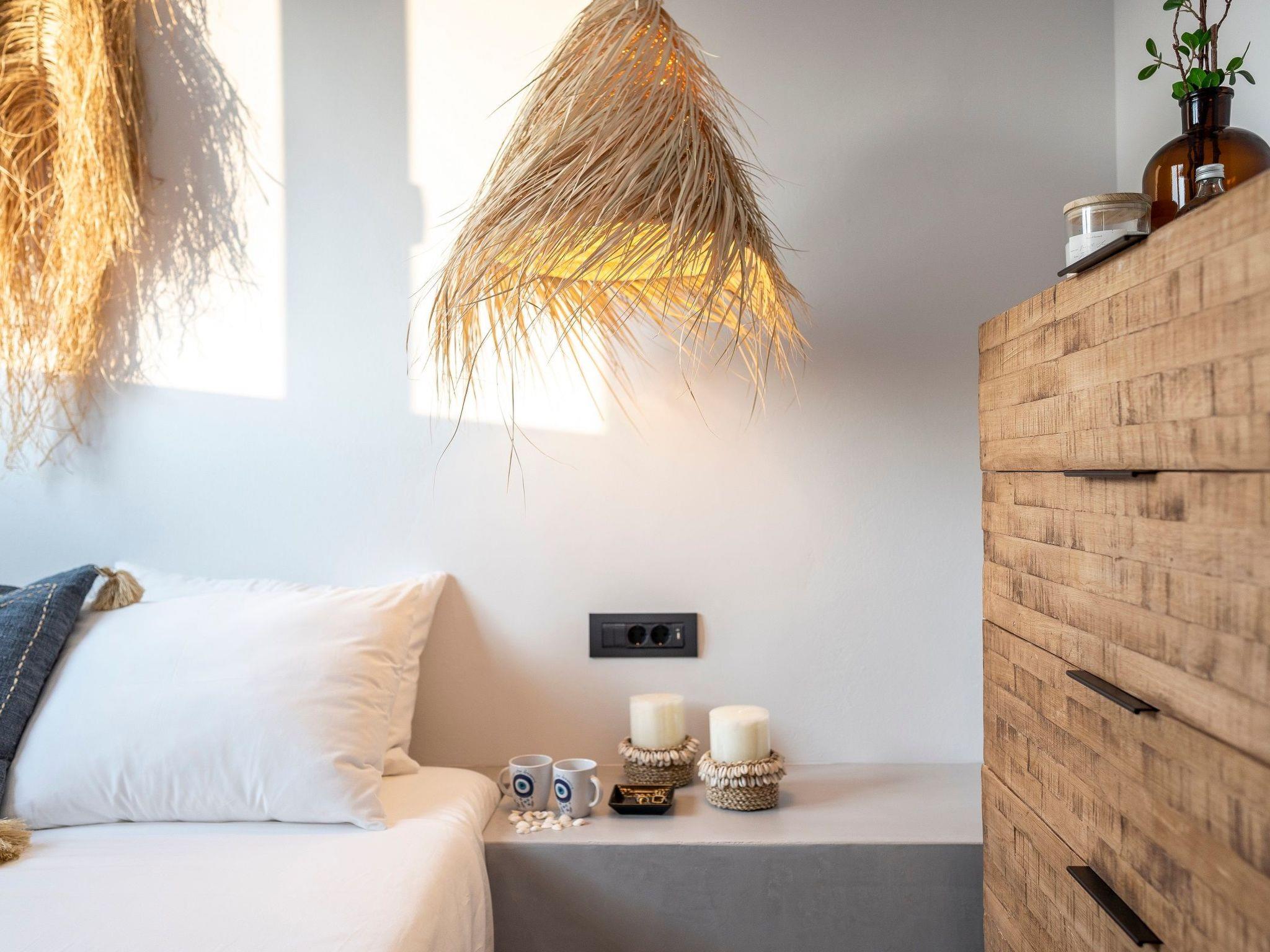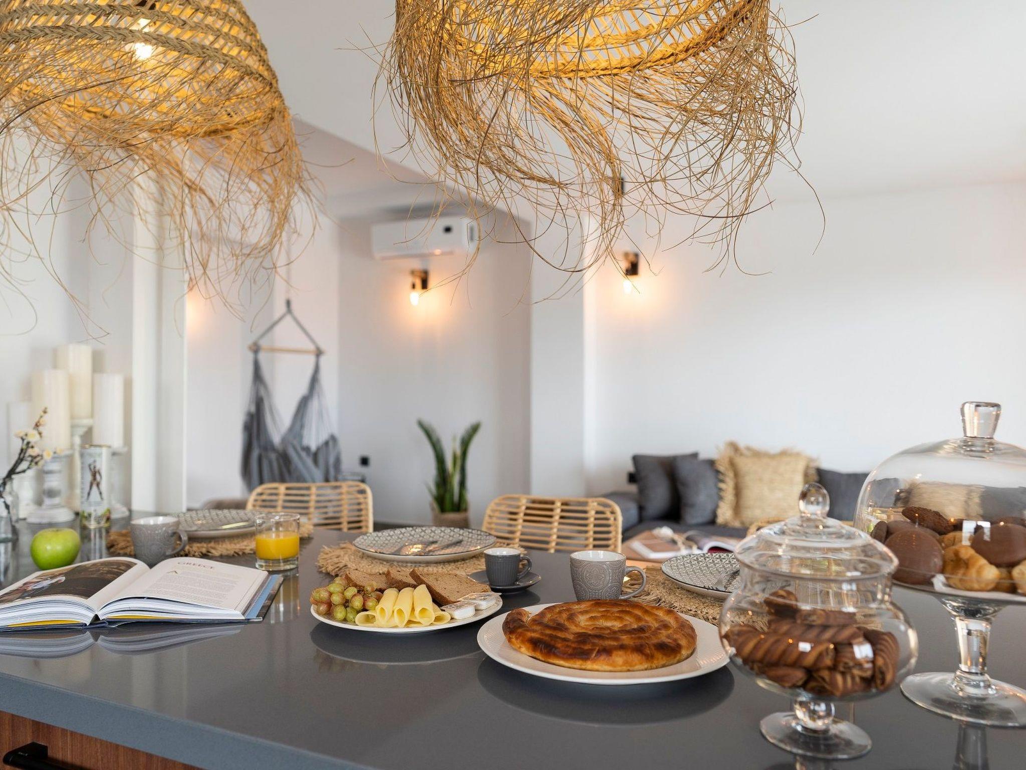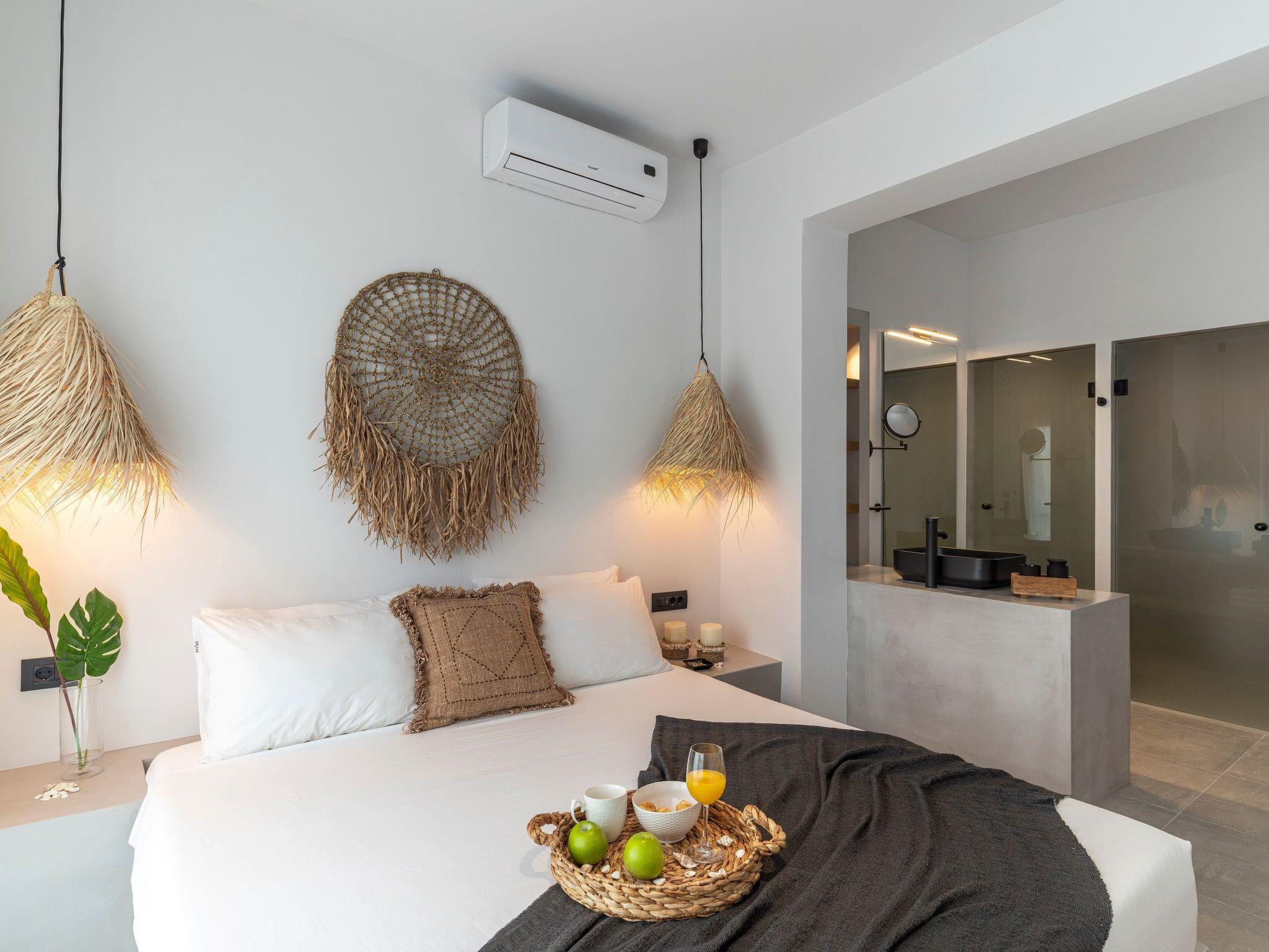 A marble staircase takes you up to the first floor where the three exquisite suites are located. Each suit has a king size bed with luxury mattress, and super modern ensuite bathroom. Two of the suites have stunning sea views and the third has mountain views. The suites are all beautifully furnished and provide a wonderfully relaxing experience for guests staying here.