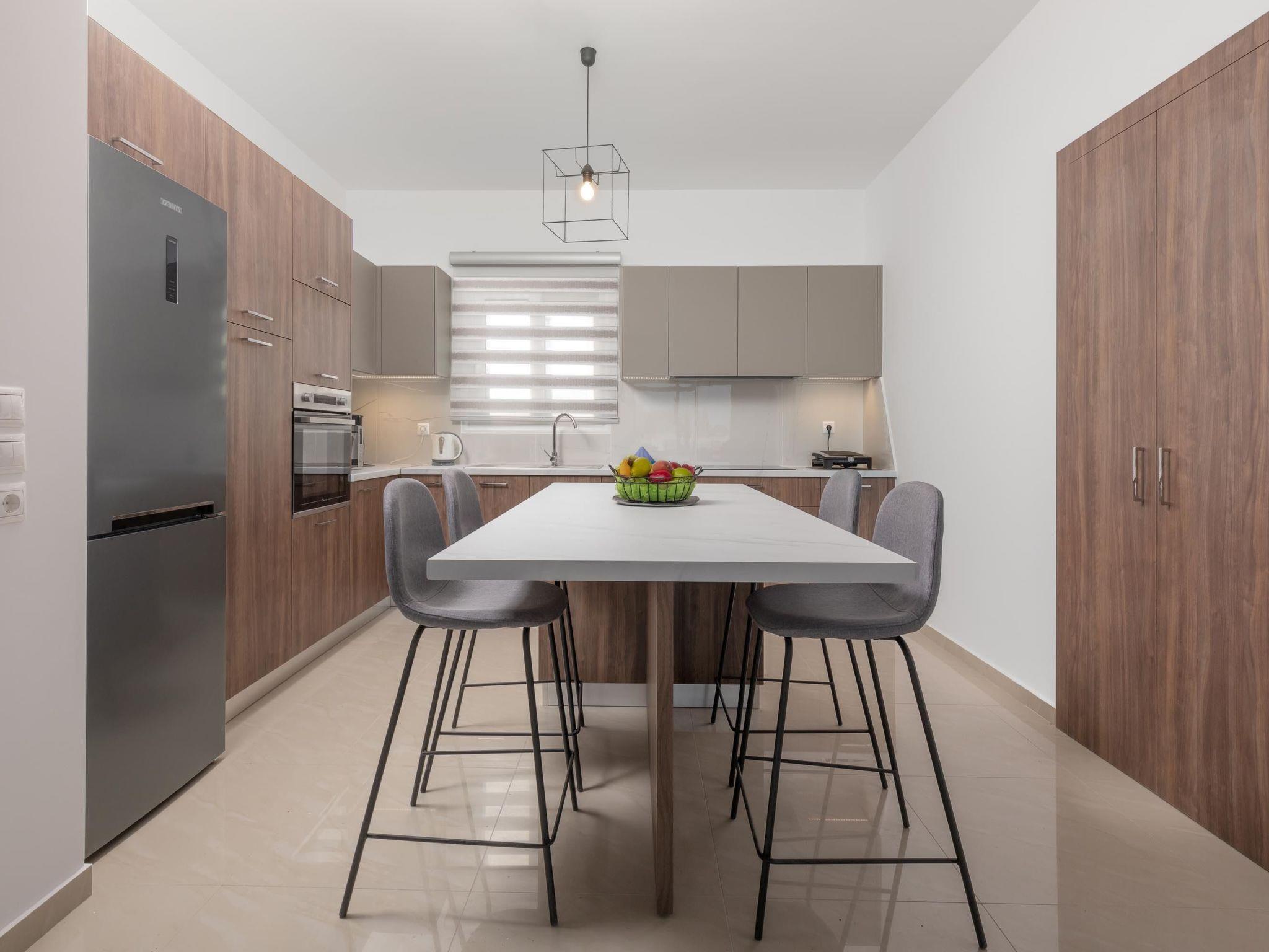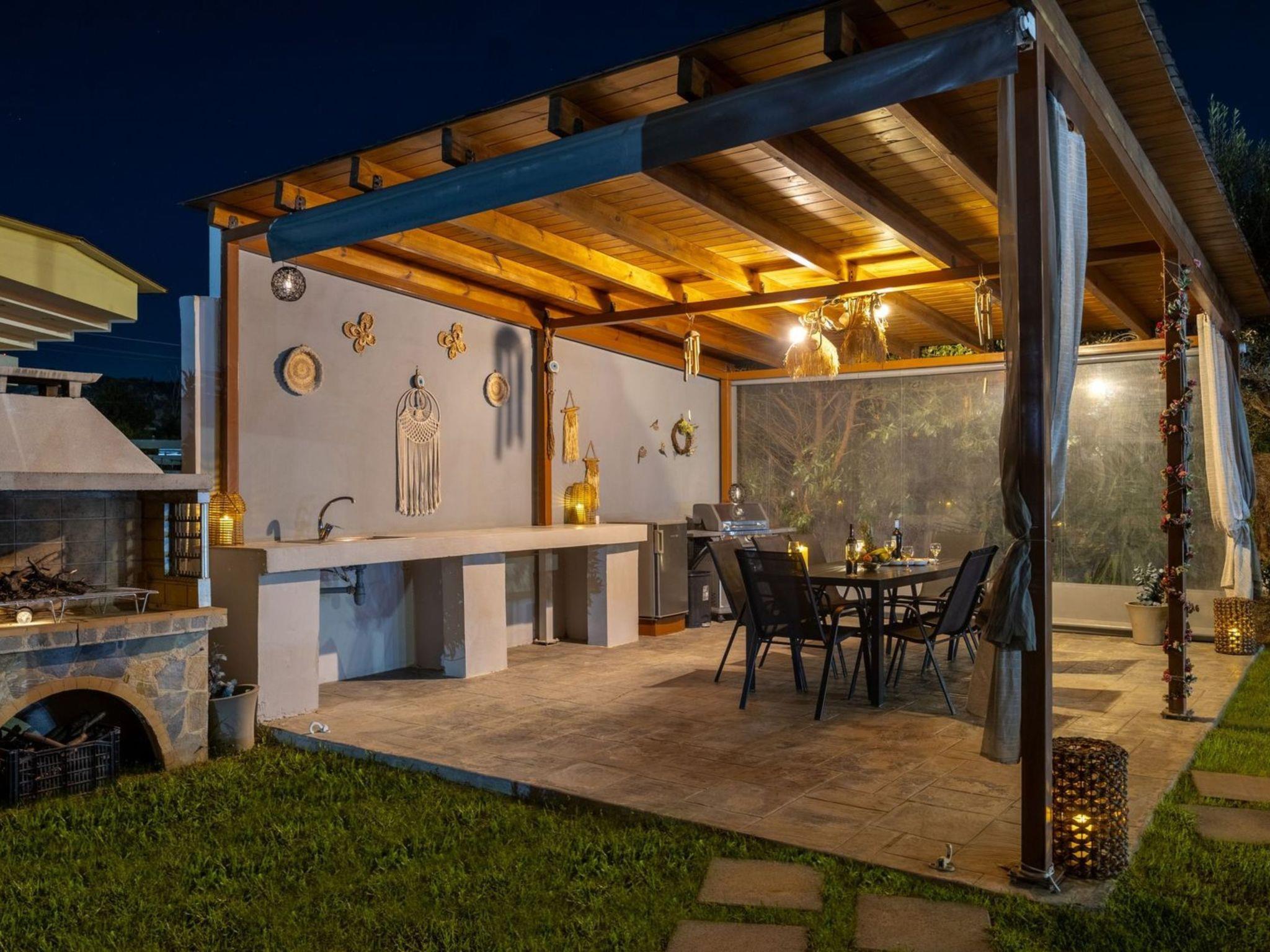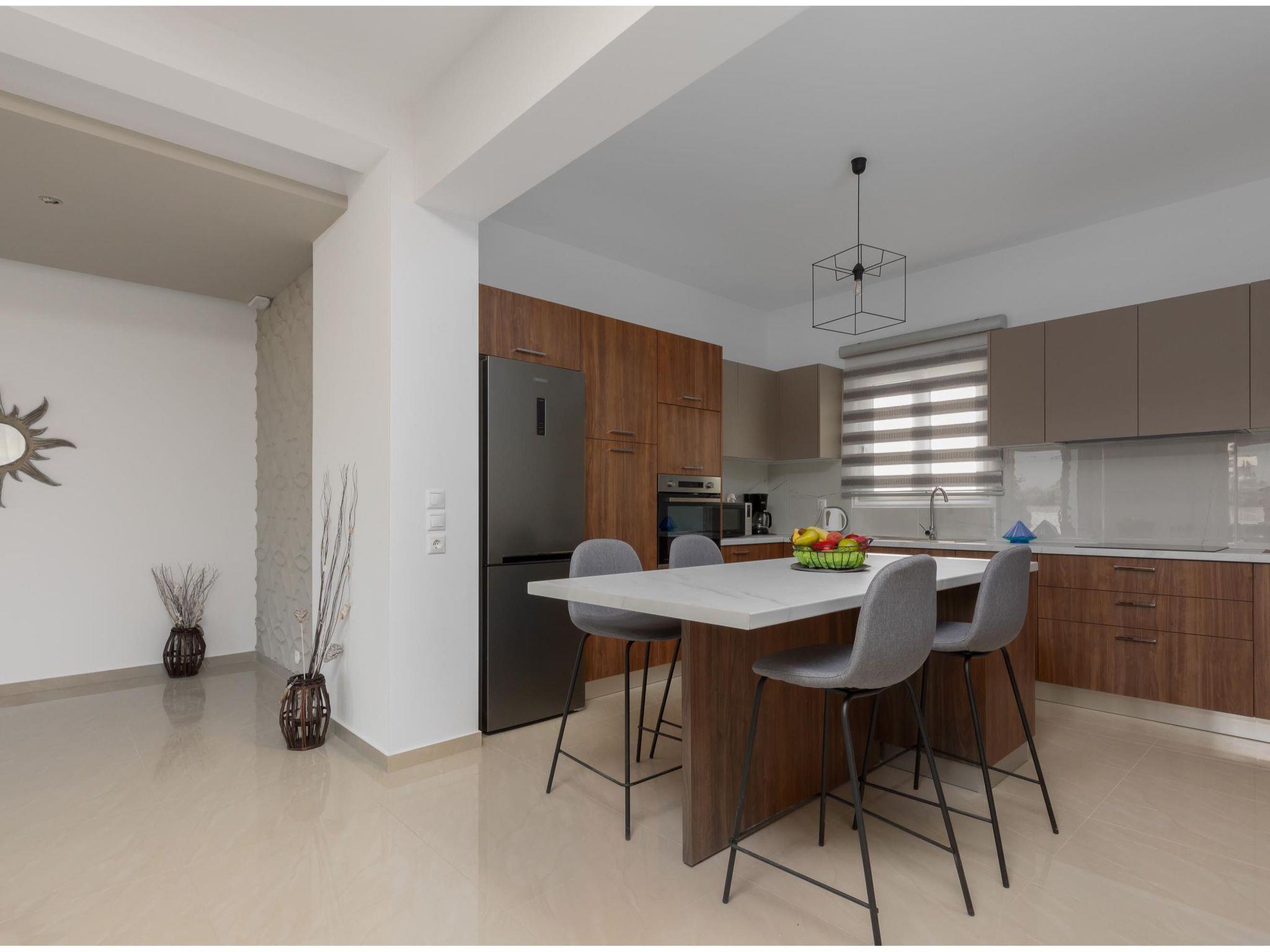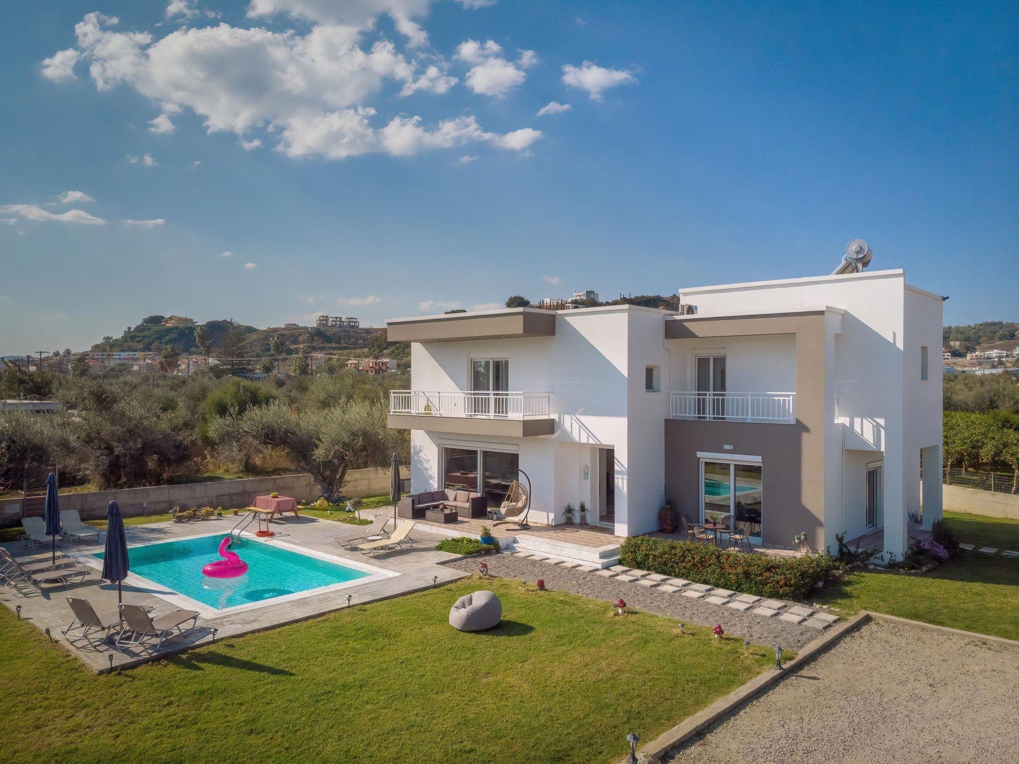 This modern villa has 4 incredible bedrooms. Most of the bedrooms are fully airconditioned, and two of them have balconies. 3 of the bedrooms have double beds and the other one has twin beds. One of the double-bedded rooms has an ensuite bathroom with a shower. One bedroom doesn’t have air-conditioning. There is another bathroom with a bathtub and a WC. Guests will find a beautiful fully equipped kitchen, suitable for every meal preparation accompanied by a seating area. Also, there is a living room with a smart TV where you can relax. There's free WIFI access throughout the property. Outdoors is as wonderful as the indoors. There’s a fantastic private swimming pool where you can spend memorable moments under the Aegean sun. Also, there is a BBQ facility and furniture to enjoy a gathering with your loved ones while preparing a delicious meal.