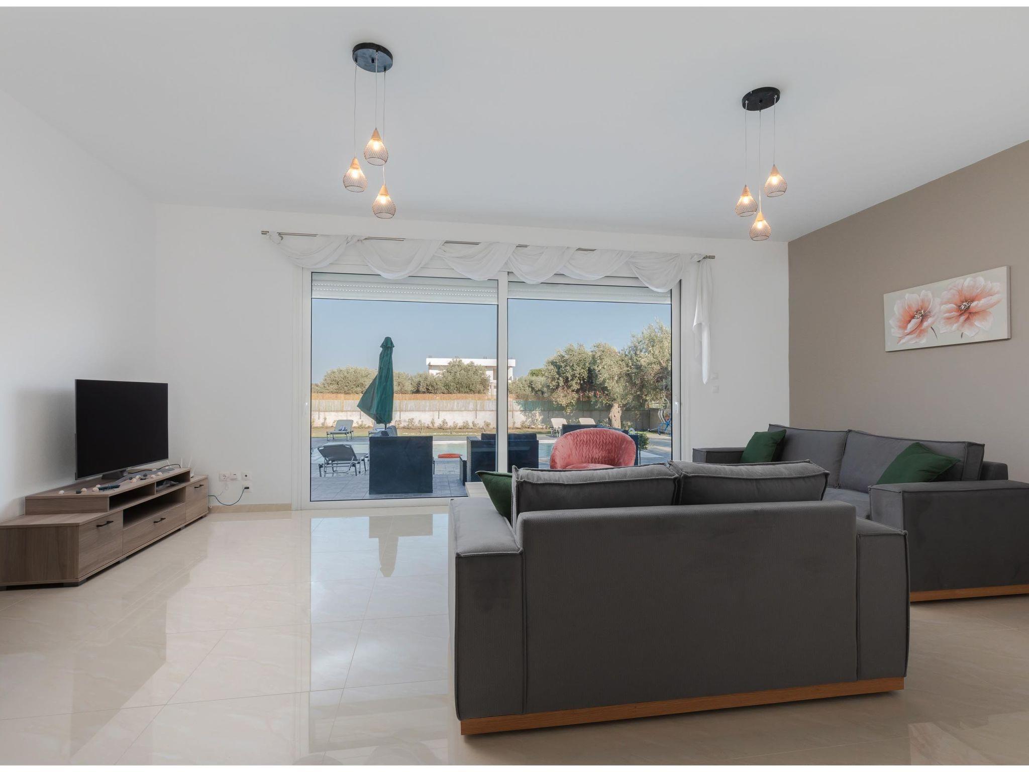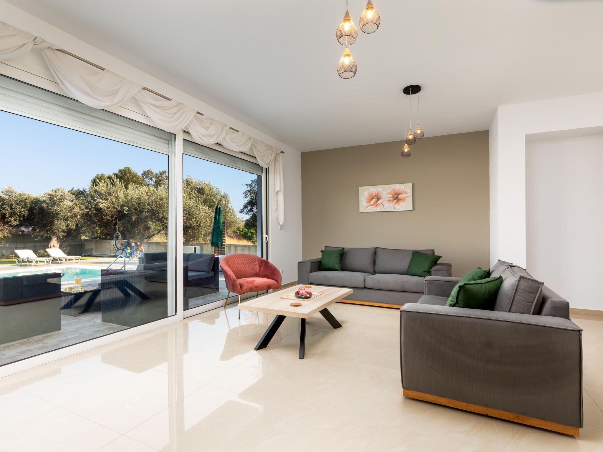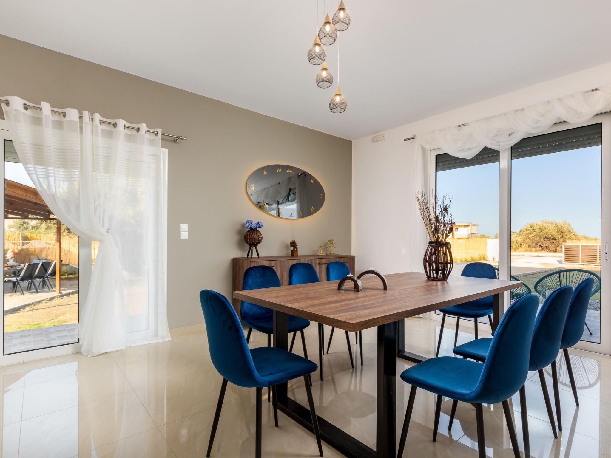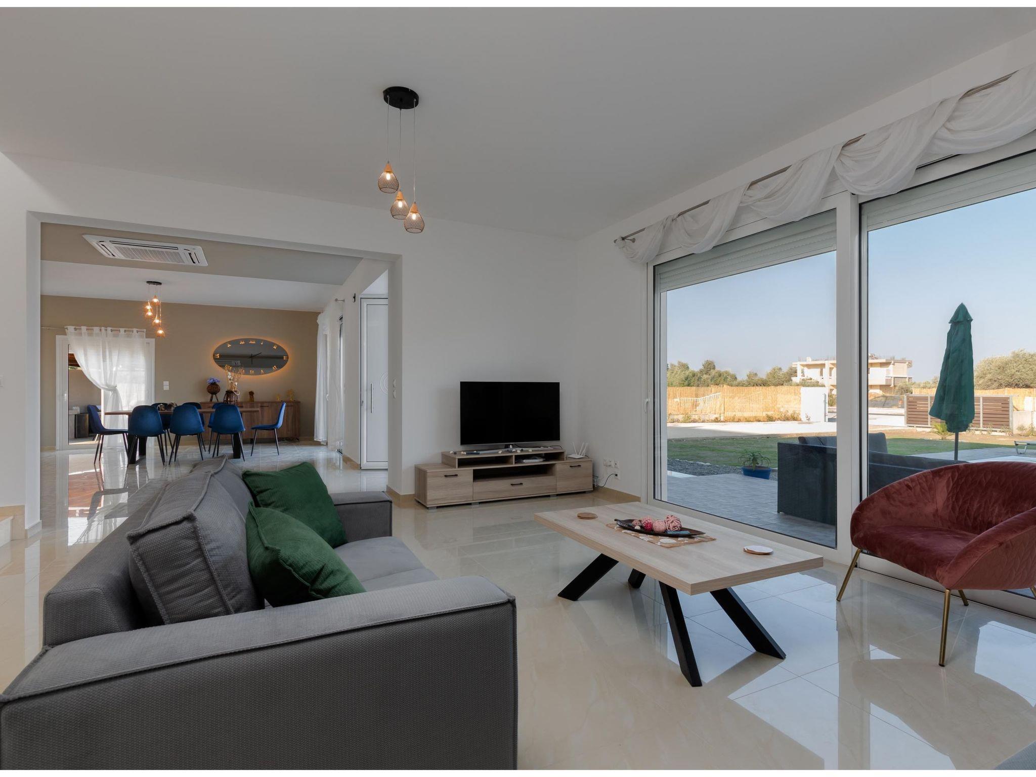 This modern villa has 4 incredible bedrooms. Most of the bedrooms are fully airconditioned, and two of them have balconies. 3 of the bedrooms have double beds and the other one has twin beds. One of the double-bedded rooms has an ensuite bathroom with a shower. One bedroom doesn’t have air-conditioning. There is another bathroom with a bathtub and a WC. Guests will find a beautiful fully equipped kitchen, suitable for every meal preparation accompanied by a seating area. Also, there is a living room with a smart TV where you can relax. There's free WIFI access throughout the property. Outdoors is as wonderful as the indoors. There’s a fantastic private swimming pool where you can spend memorable moments under the Aegean sun. Also, there is a BBQ facility and furniture to enjoy a gathering with your loved ones while preparing a delicious meal.
