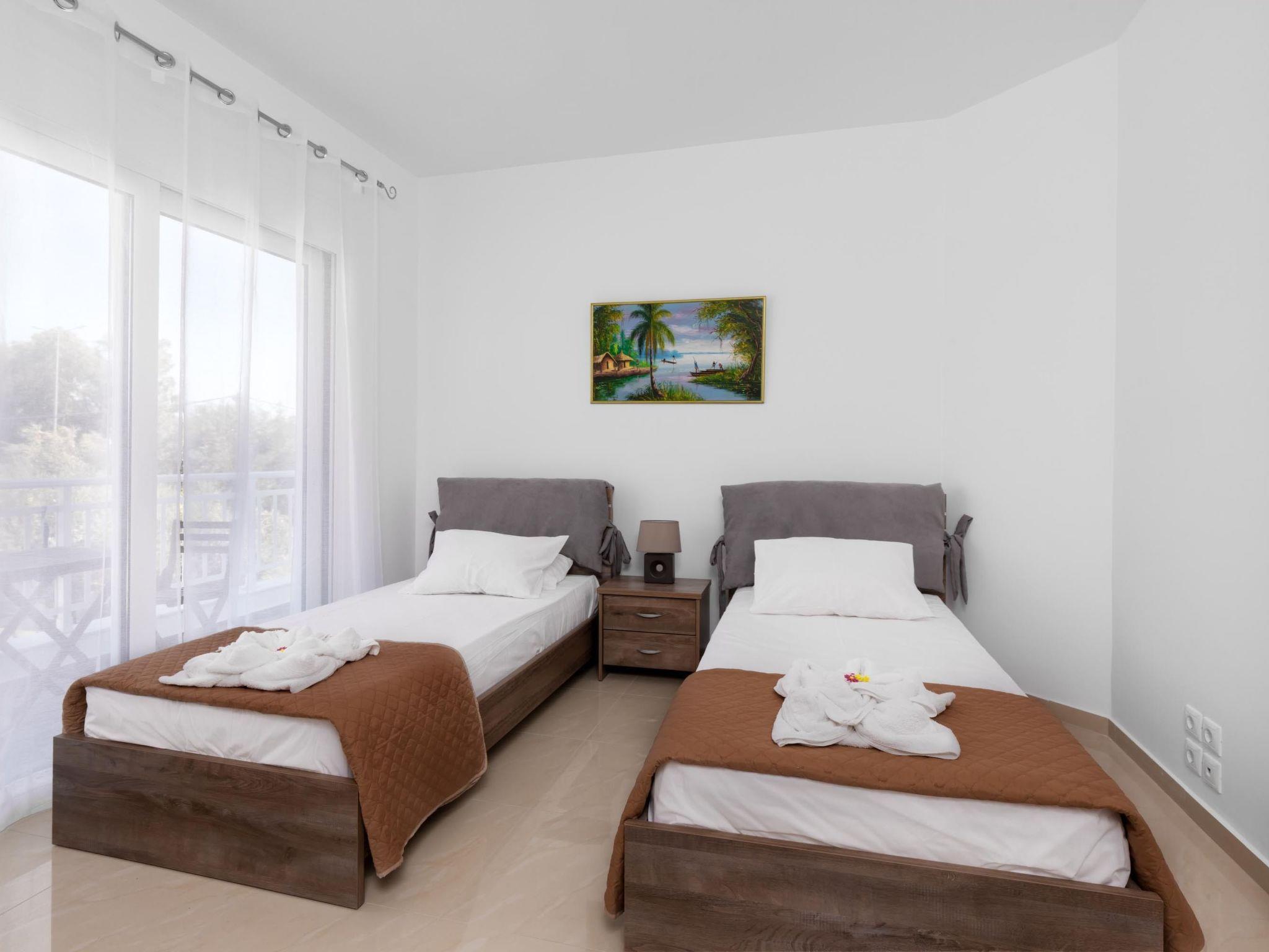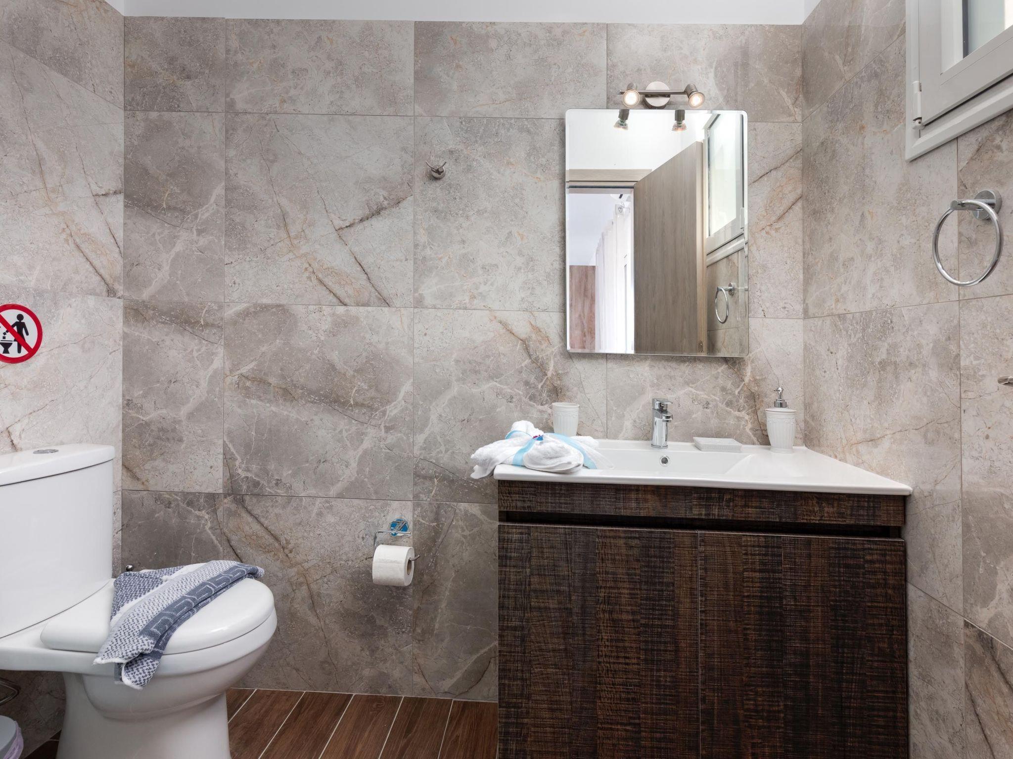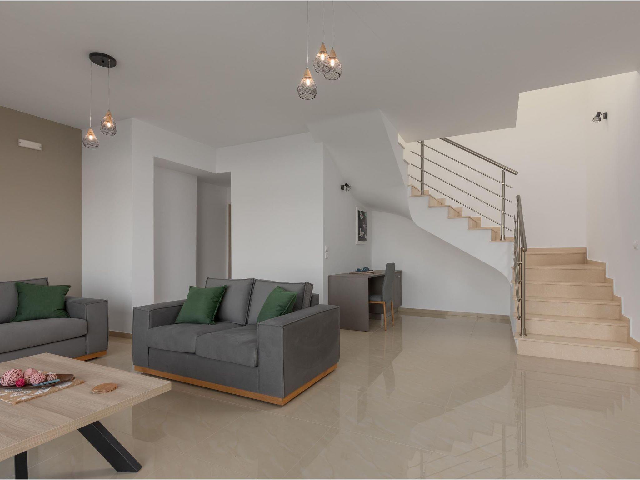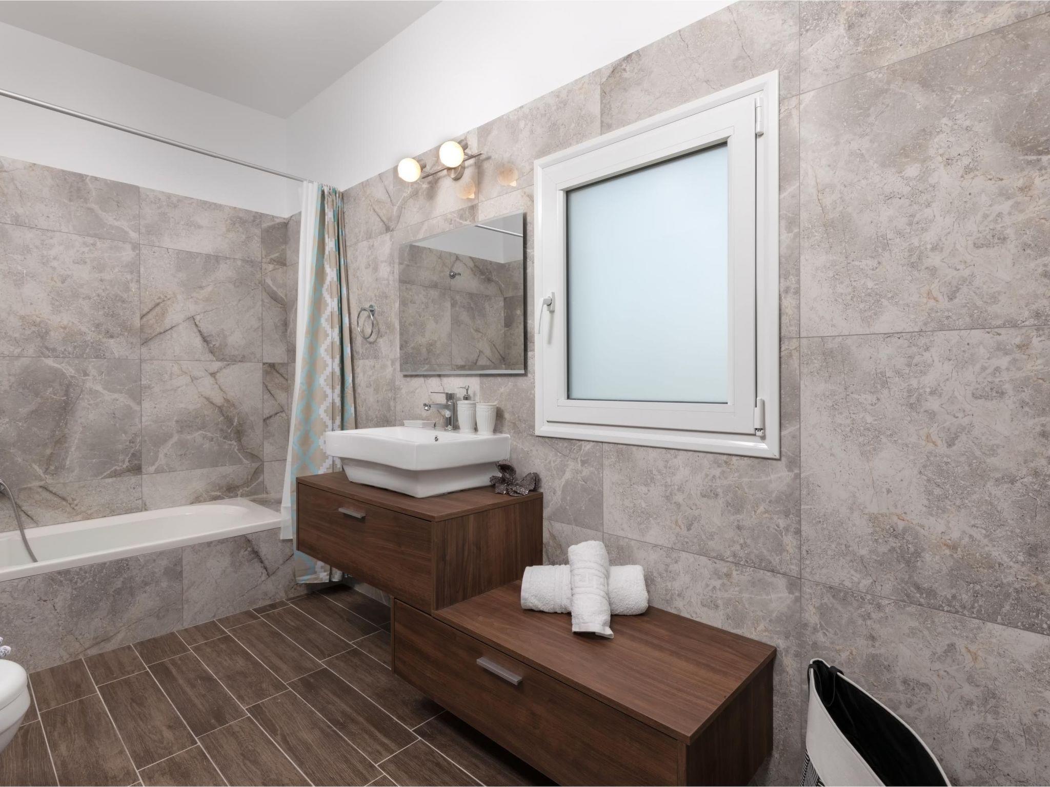 This modern villa has 4 incredible bedrooms. Most of the bedrooms are fully airconditioned, and two of them have balconies. 3 of the bedrooms have double beds and the other one has twin beds. One of the double-bedded rooms has an ensuite bathroom with a shower. One bedroom doesn’t have air-conditioning. There is another bathroom with a bathtub and a WC. Guests will find a beautiful fully equipped kitchen, suitable for every meal preparation accompanied by a seating area. Also, there is a living room with a smart TV where you can relax. There's free WIFI access throughout the property. Outdoors is as wonderful as the indoors. There’s a fantastic private swimming pool where you can spend memorable moments under the Aegean sun. Also, there is a BBQ facility and furniture to enjoy a gathering with your loved ones while preparing a delicious meal.