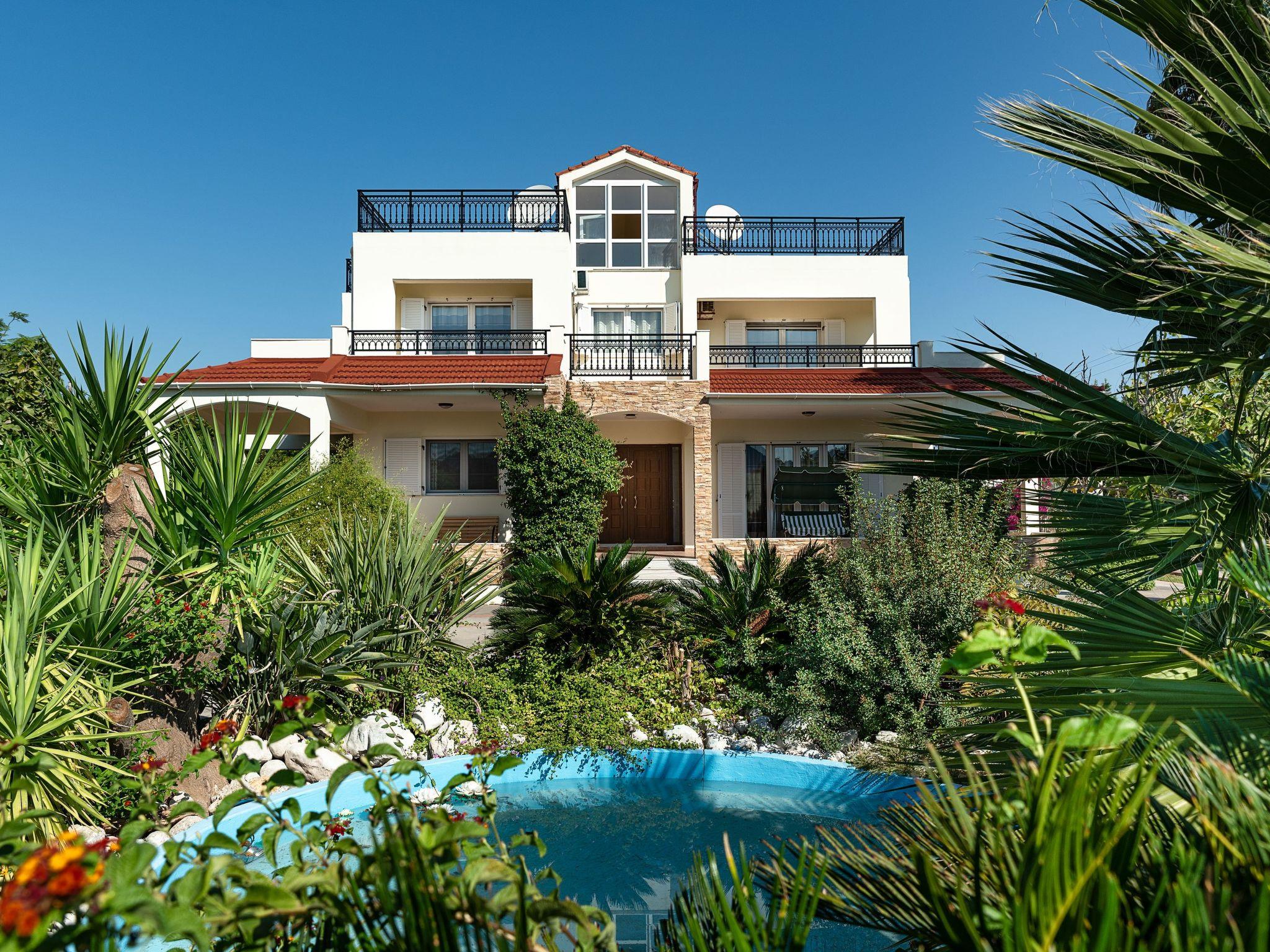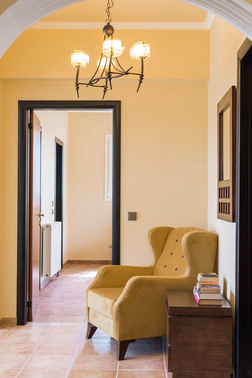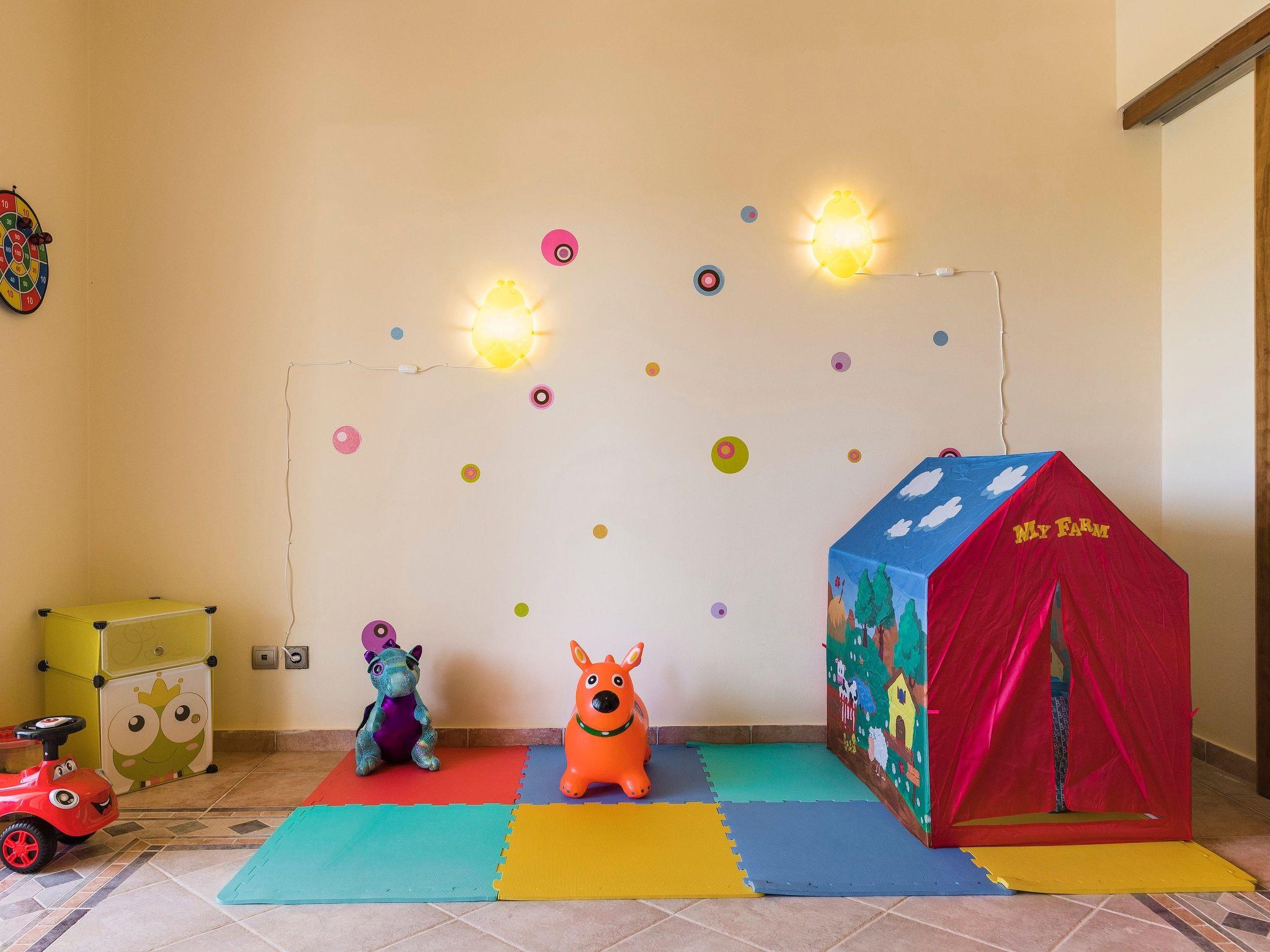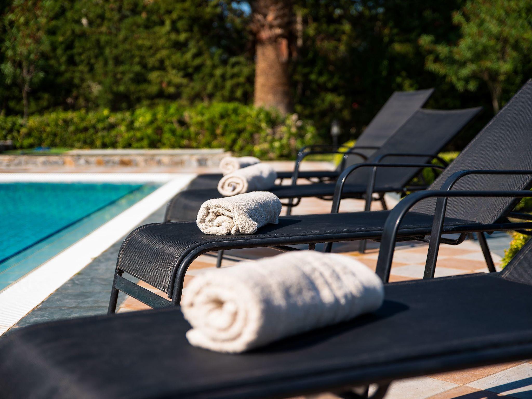 Royal Classico villa is located in the area of Kolympia and offers an incredible private summing pool. This villa is nothing less than a rare temptation for anyone who appreciates the dual nature of comfort. The villa has the ability to transform effortlessly from a peaceful place to a fun one. This villa is a unique property, designed to offer you a unique vacation! It perfectly accommodates up to 10 guests. Villa has 5 fully air-conditioned bedrooms; some of them have balconies with incredible views to the sea. 3 of them have a double bed and two of them have a pair of single beds. One of the double bedded rooms has an ensuite bathroom with an incredible bathtub that transforms into a soothing Jacuzzi for your ultimate relaxation. Also, there are two more bathrooms with a shower and a wc. On the ground floor there’s a large kitchen which is fully equipped for any meal preparation. Also in the same area there’s the living room and the sitting area. There’s free Wi-Fi access throughout the property and a screen TV in the living room. For the younger guests of the house there is a play room to have fun. Outdoors, you will find the exquisite private swimming pool with its sunbeds so you can work on your tan. ! Indeed the fountain at the entrance sets the tone, but it is in the square footage that we find the quintessence of luxury. There’s also a ping pong table and a mini football for fun moments as well as a BBQ installation and a sitting areas to enjoy a gathering with your friends or family.