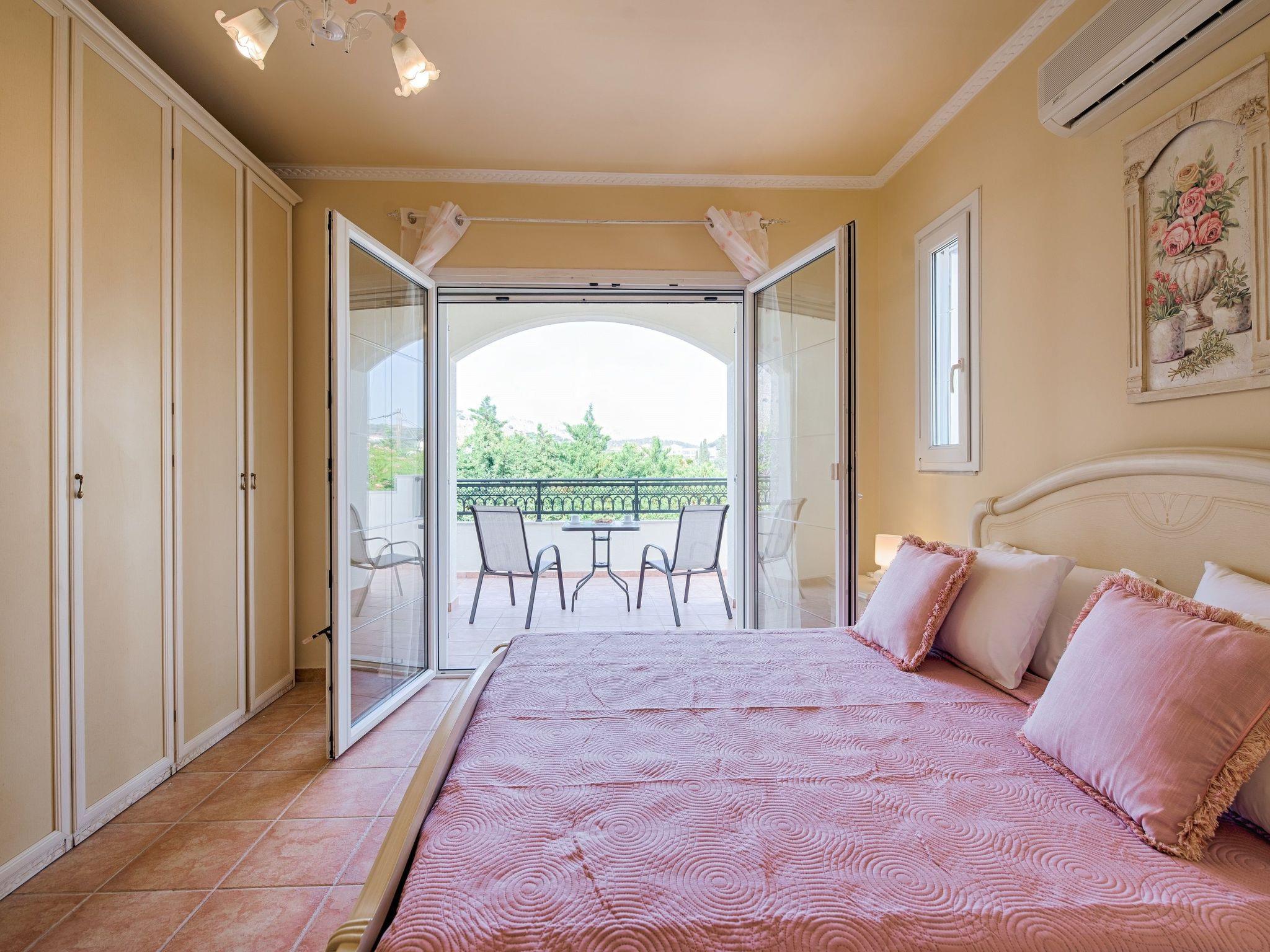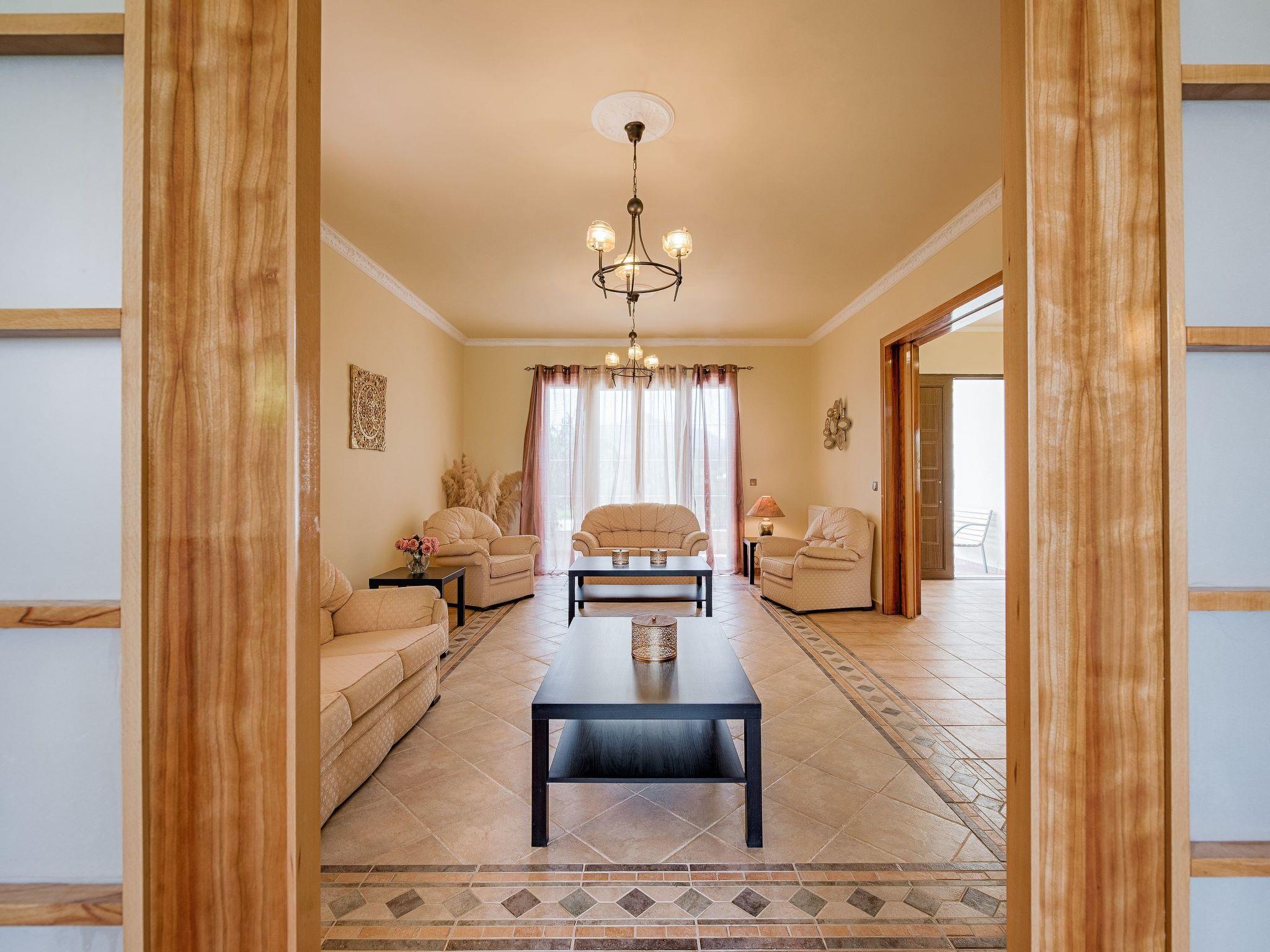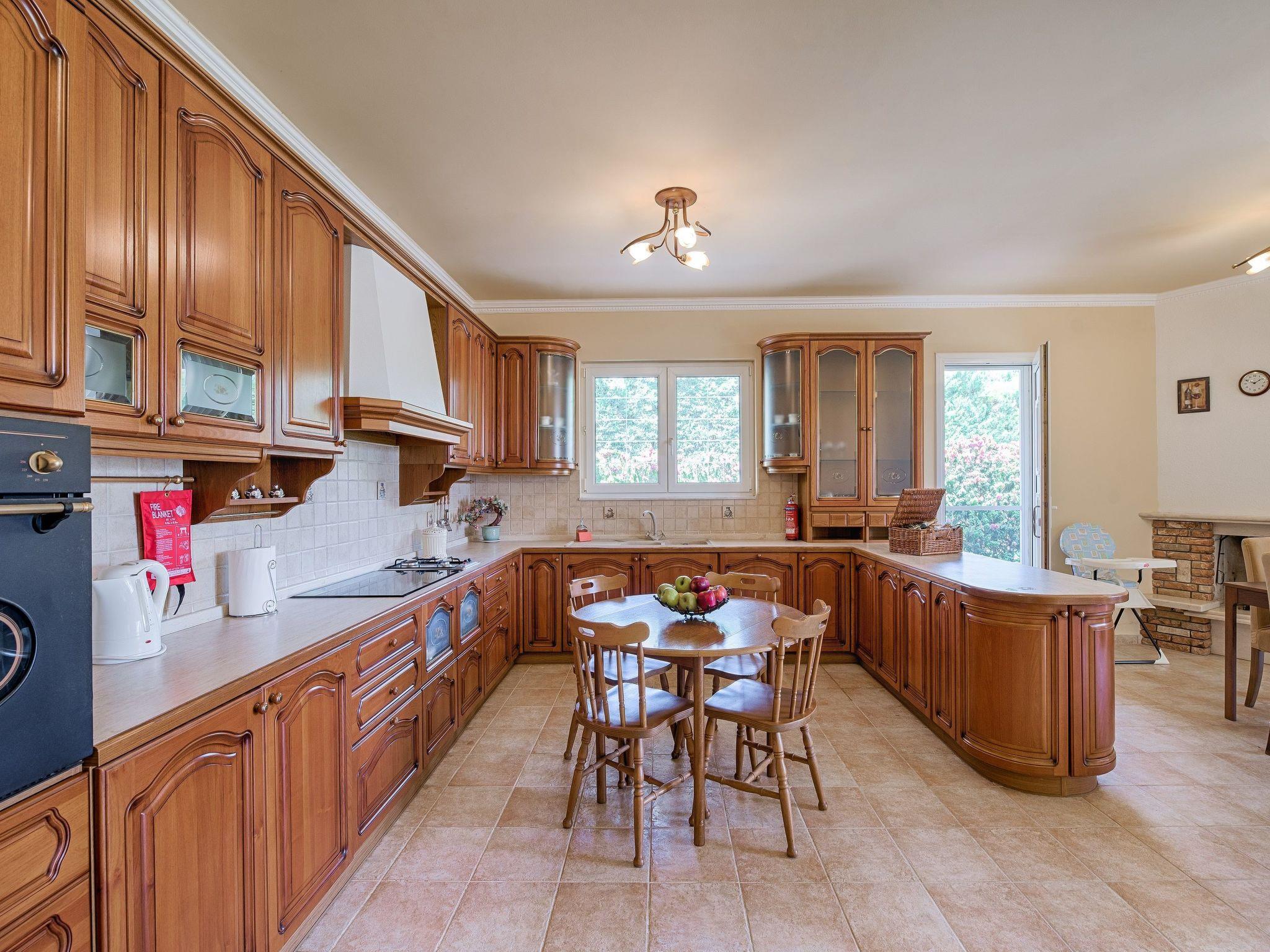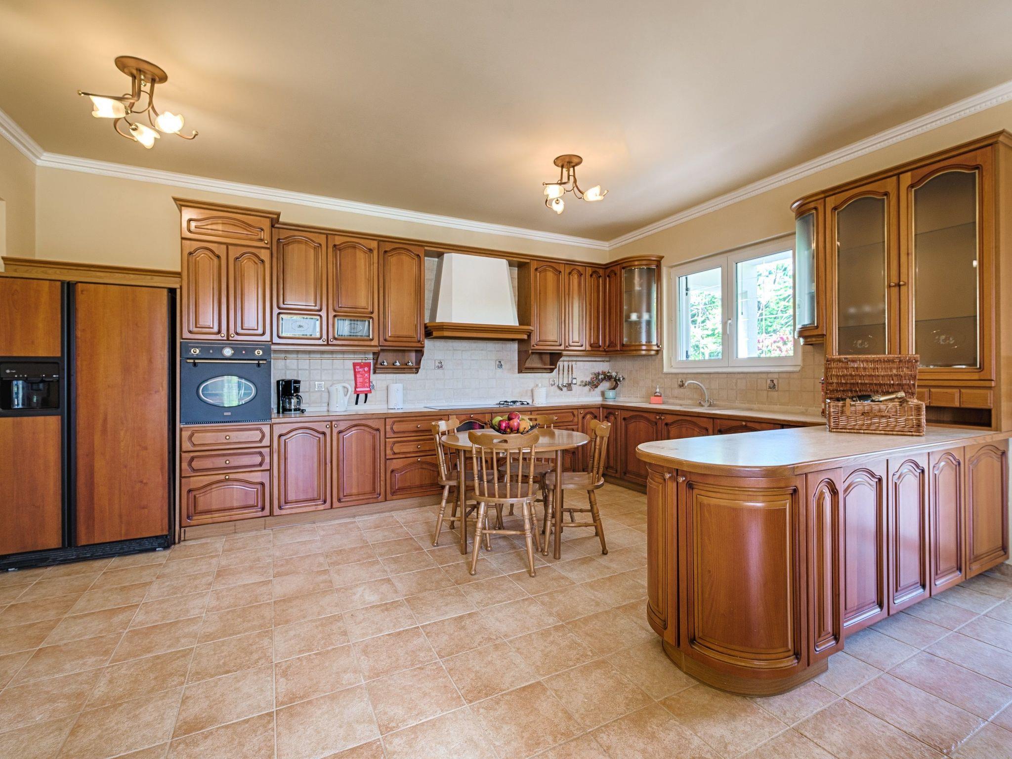 Royal Classico villa is located in the area of Kolympia and offers an incredible private summing pool. This villa is nothing less than a rare temptation for anyone who appreciates the dual nature of comfort. The villa has the ability to transform effortlessly from a peaceful place to a fun one. This villa is a unique property, designed to offer you a unique vacation! It perfectly accommodates up to 10 guests. Villa has 5 fully air-conditioned bedrooms; some of them have balconies with incredible views to the sea. 3 of them have a double bed and two of them have a pair of single beds. One of the double bedded rooms has an ensuite bathroom with an incredible bathtub that transforms into a soothing Jacuzzi for your ultimate relaxation. Also, there are two more bathrooms with a shower and a wc. On the ground floor there’s a large kitchen which is fully equipped for any meal preparation. Also in the same area there’s the living room and the sitting area. There’s free Wi-Fi access throughout the property and a screen TV in the living room. For the younger guests of the house there is a play room to have fun. Outdoors, you will find the exquisite private swimming pool with its sunbeds so you can work on your tan. ! Indeed the fountain at the entrance sets the tone, but it is in the square footage that we find the quintessence of luxury. There’s also a ping pong table and a mini football for fun moments as well as a BBQ installation and a sitting areas to enjoy a gathering with your friends or family.