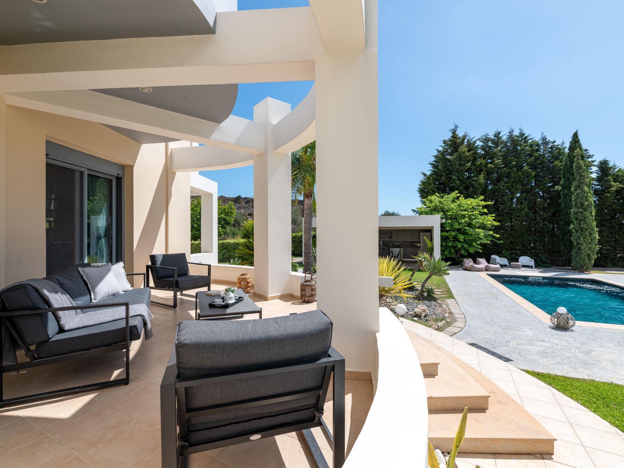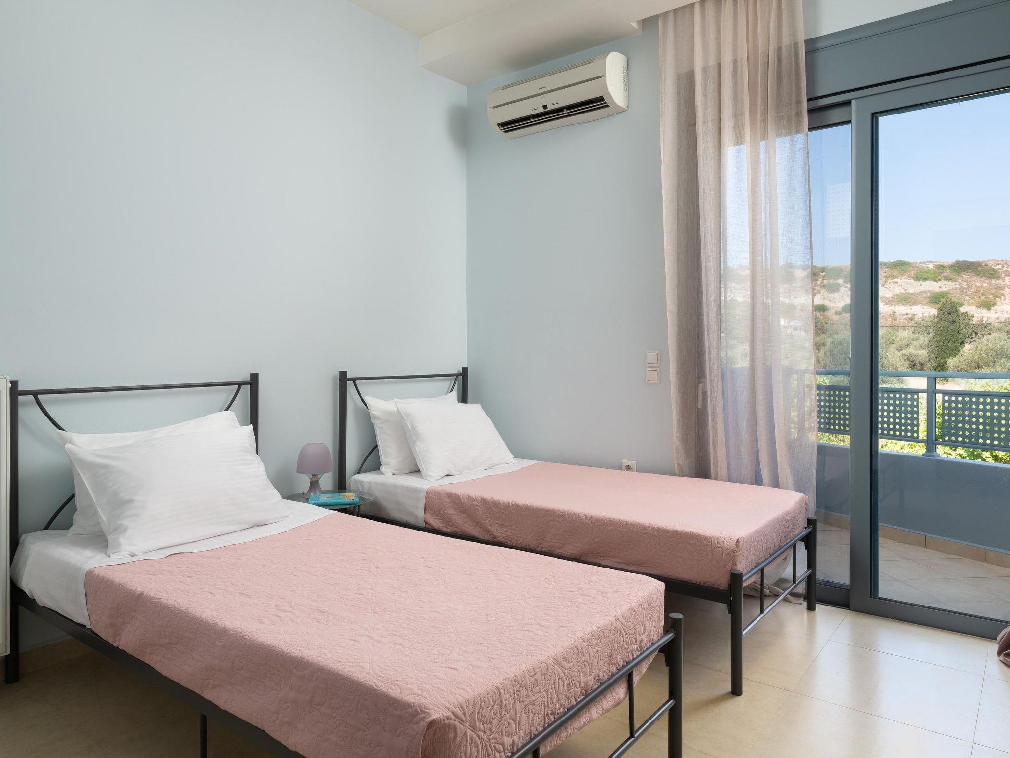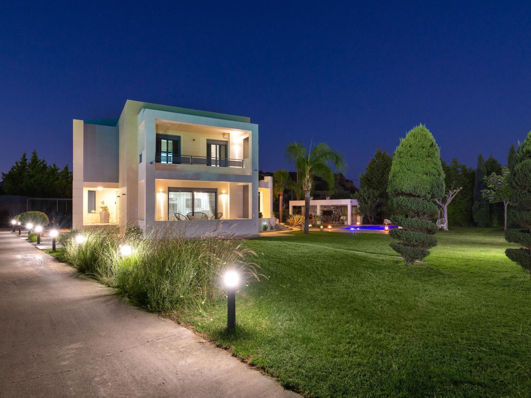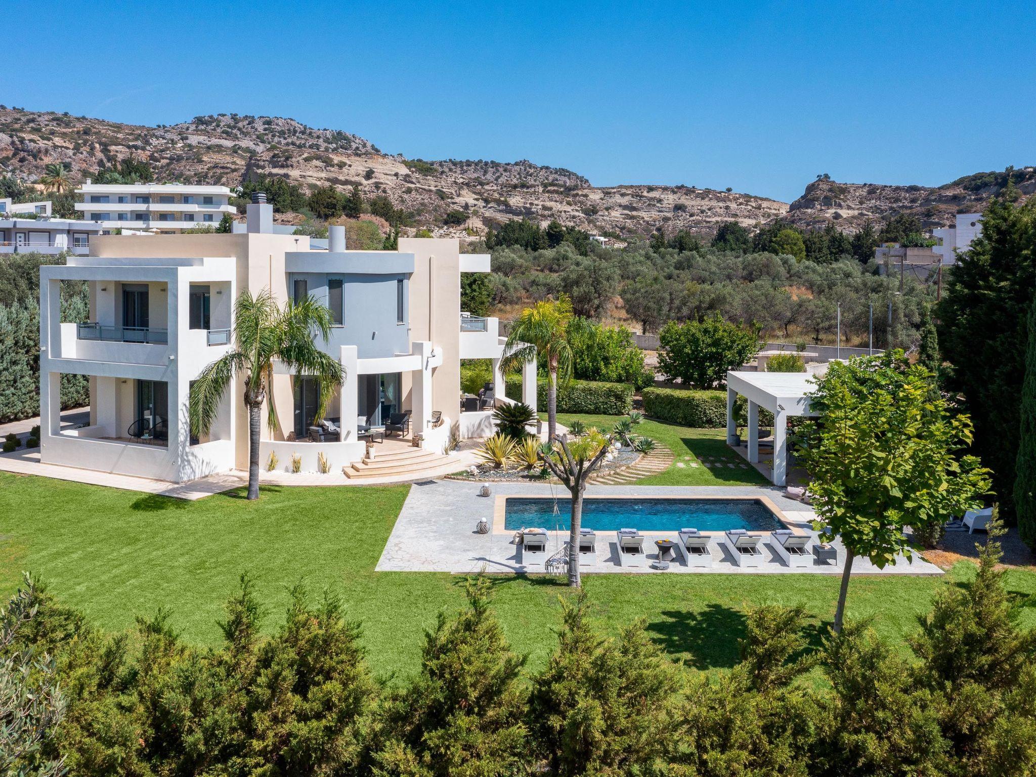 Villa Rapha Maris combines comfort and relaxation in a great location of Village Afantou near all kinds of conveniences and places of interest. Also, this impressive villa is quite close from the cleanest beach of the island, Afantou beach, in an only 5-minute drive. Ideal for families and groups of friends, the villa is arranged in 2 floors and can accommodate up to 10 people.The villa has four spacious bedrooms, three double bedded rooms and one with twin beds. All incredible bedrooms have balconies and are fully airconditioned. In the master bedroom there is a beautiful bathroom with a bathtub for your ultimate relaxation. Also, there’s a sharing bathroom with a shower and 2 wc. Villa Rapha Maris features a spacious living room with a smart TV. There are 2 fully equipped kitchens (an internal and an external) for any meal preparation accompanied from the dining areas. The villa’s outdoor spaces feature a stunning private swimming pool with sunbeds, the external fully equipped kitchen and BBQ facilities, with outdoor dining area, everything surrounded by the eye pleasing gardens where you can relax and enjoy the perfect summer days of Rhodes.