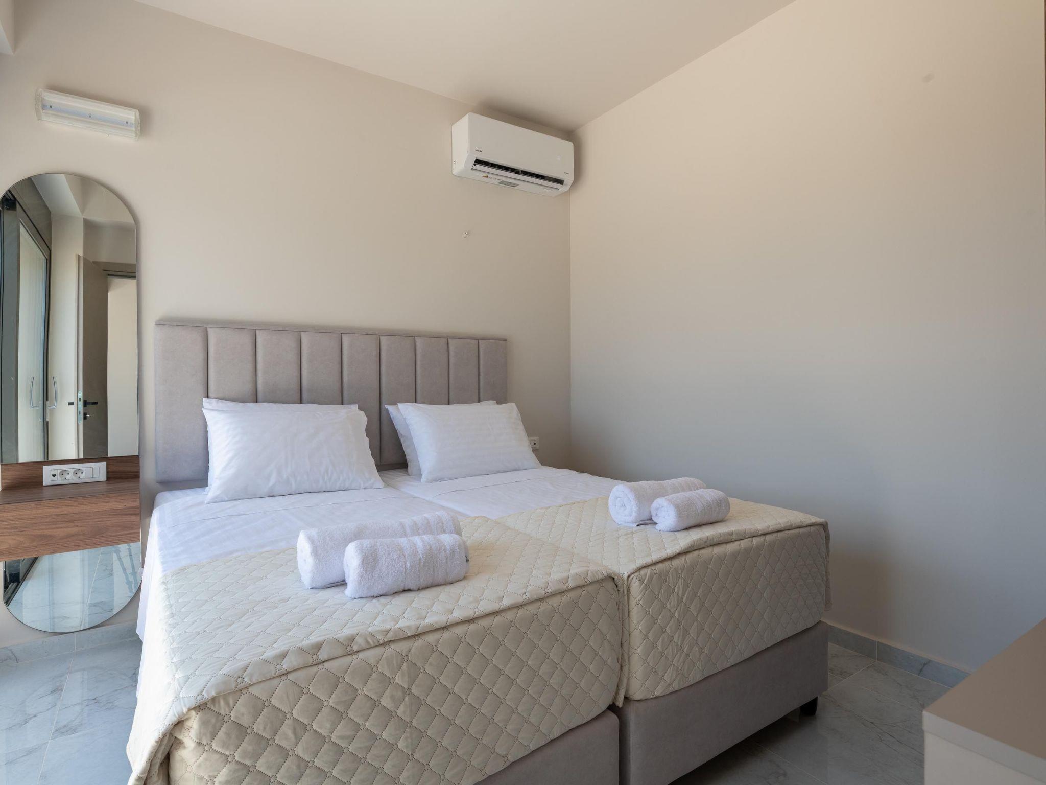 Rhodes Stars Stellar Villas offer a comfortable and relaxing stay in one of Rhodes’ most beautiful areas. Each villa features two spacious bedrooms: the first-floor bedroom has a double bed, a private bathroom with a shower, and a balcony with stunning sea views. The second bedroom is on the ground floor and includes two single beds, also with beautiful sea views. Both bedrooms come with TVs for your entertainment.