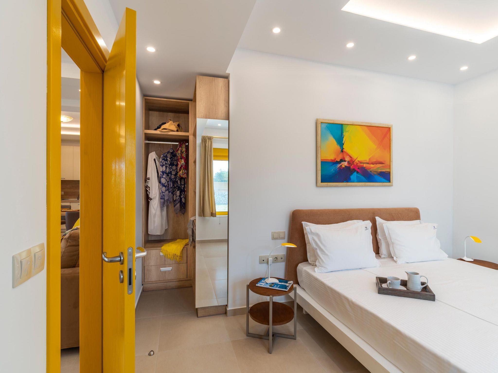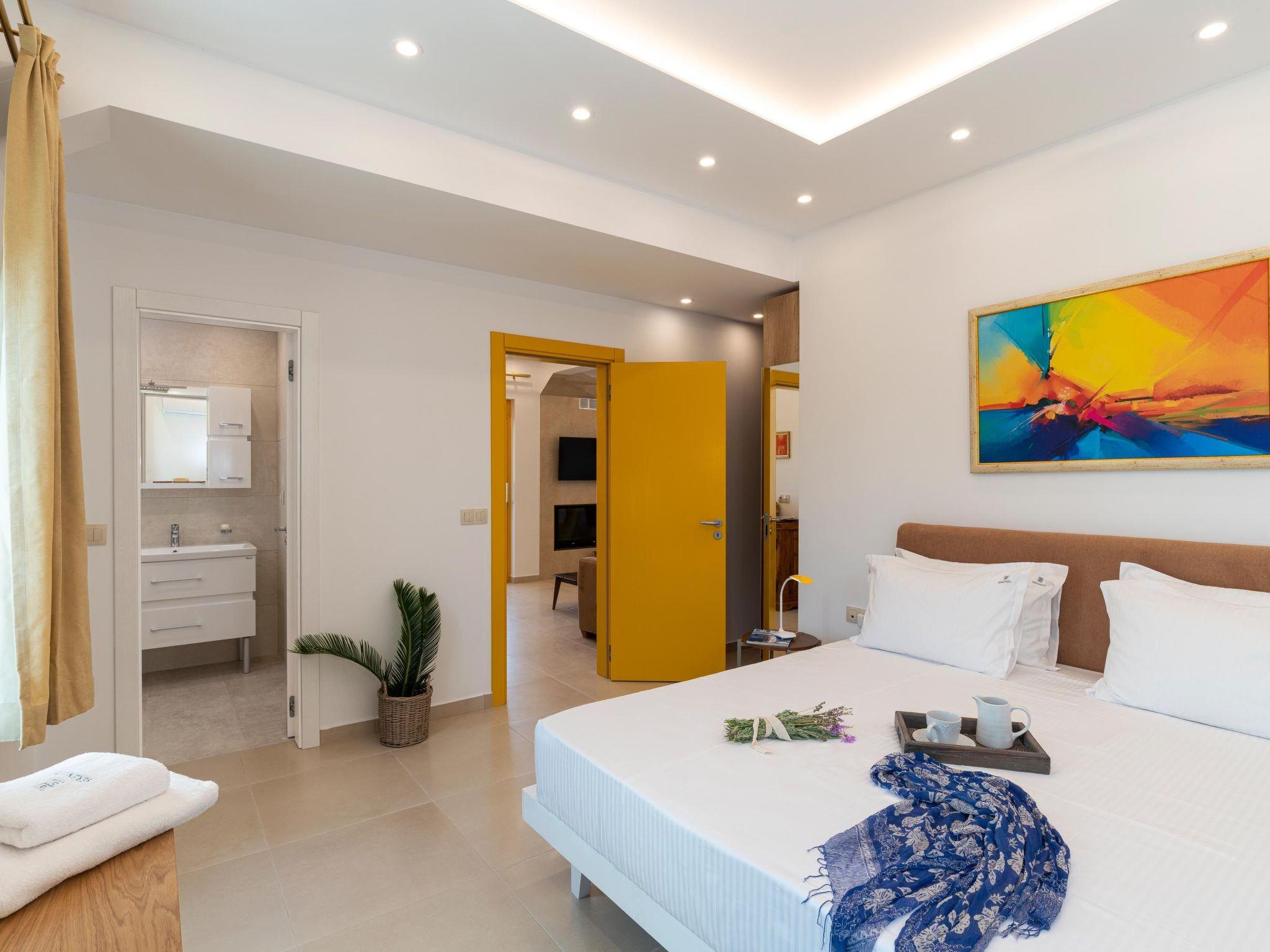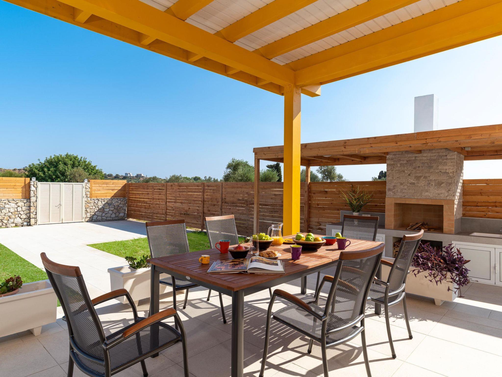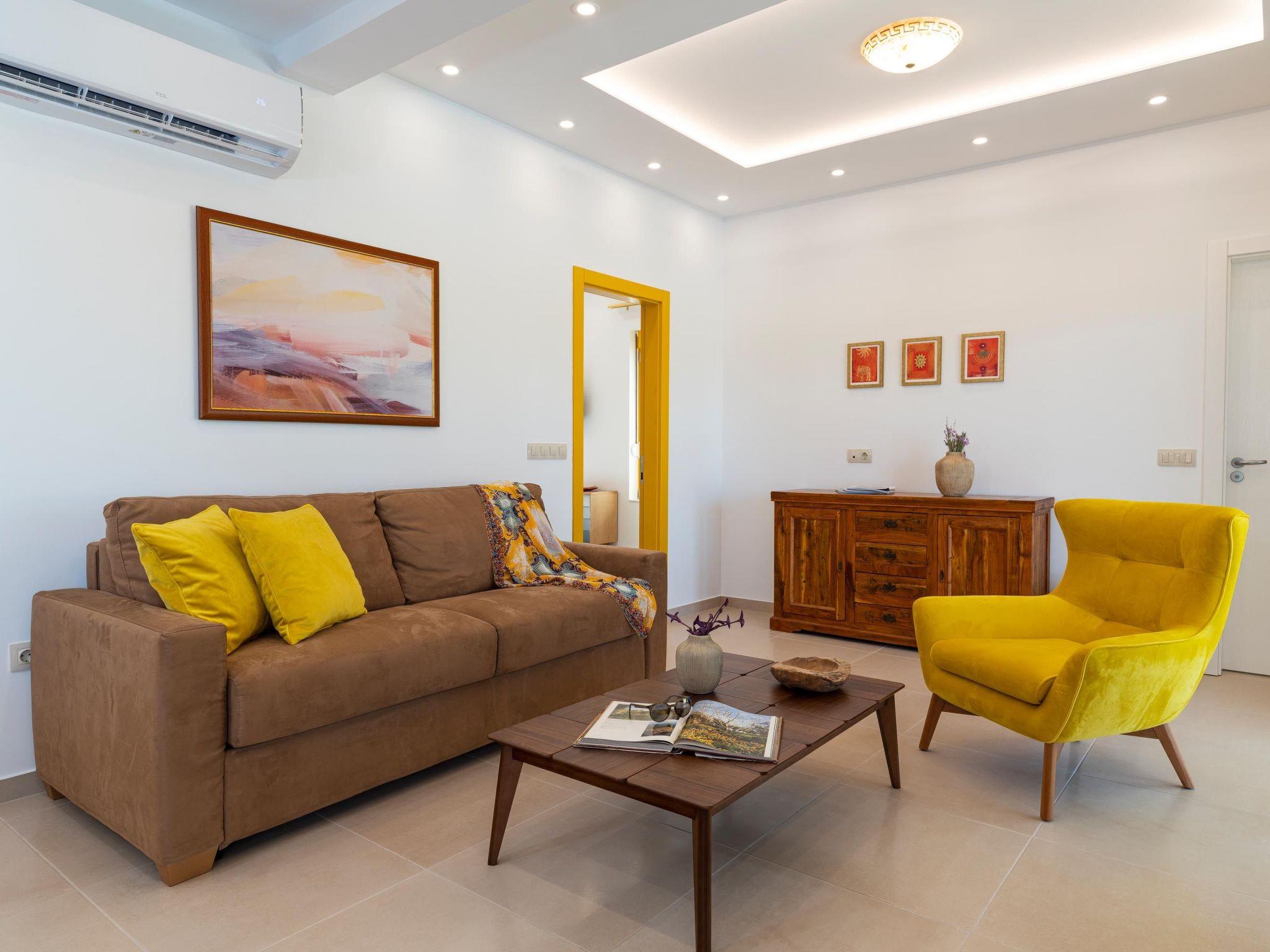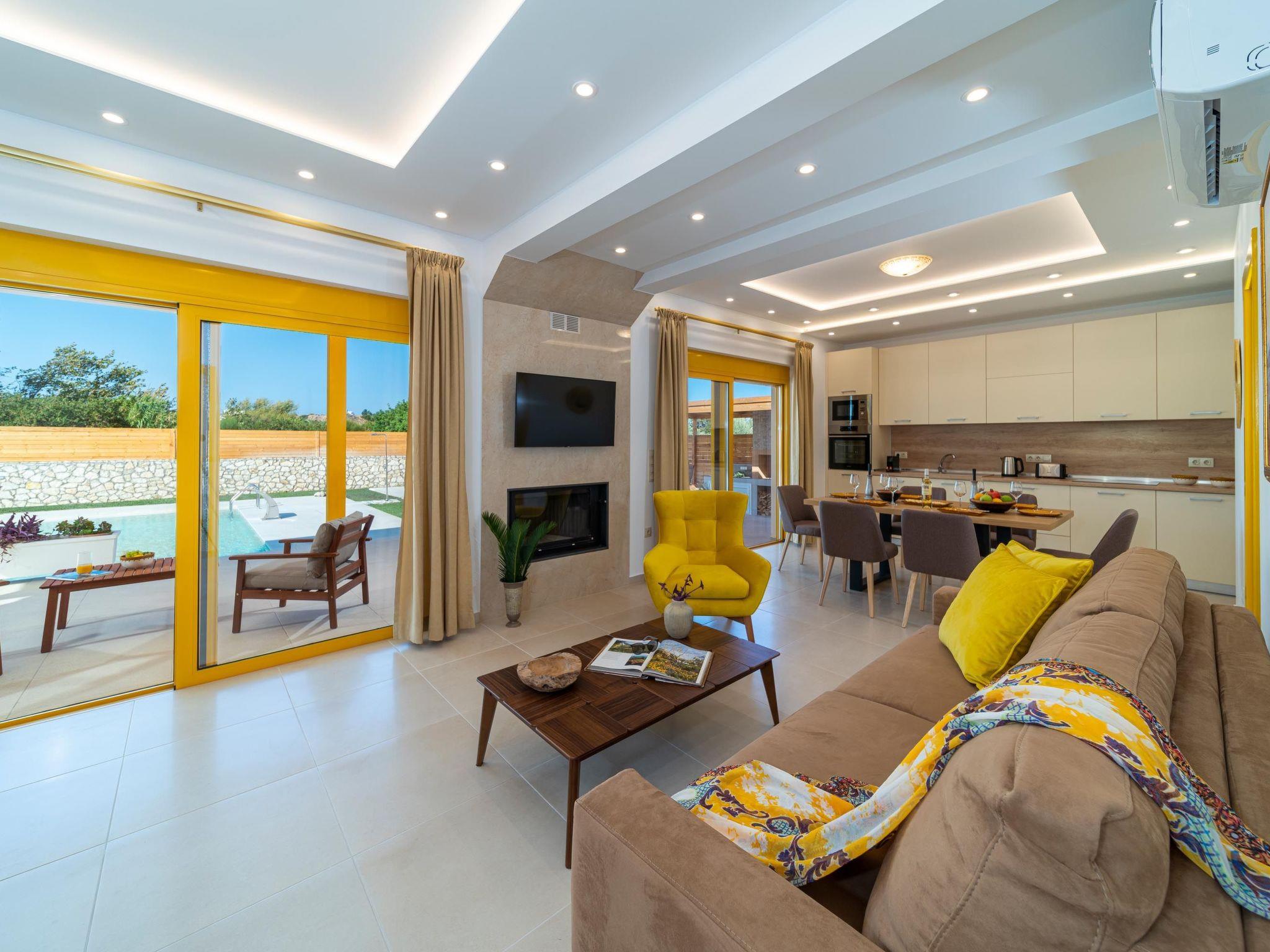 Villa Ilios has two fully air-conditioned bedrooms with ensuite bathrooms with showers and a comfy double sofa-bed in the living room. There is also one bathroom with a shower next to the living room. The kitchen is fully equipped, suitable for any meal preparation accompanied by the sitting area. The interior design is absolutely incredible with a tasteful decoration. Guests will find flat screen TVs and free Wi-Fi access throughout the property. Outdoors, there’s a magnificent private swimming pool and sitting areas to relax under the Aegean sun. The BBQ facility and utensils offer you the opportunity to enjoy outdoor al fresco dinners by the pool.