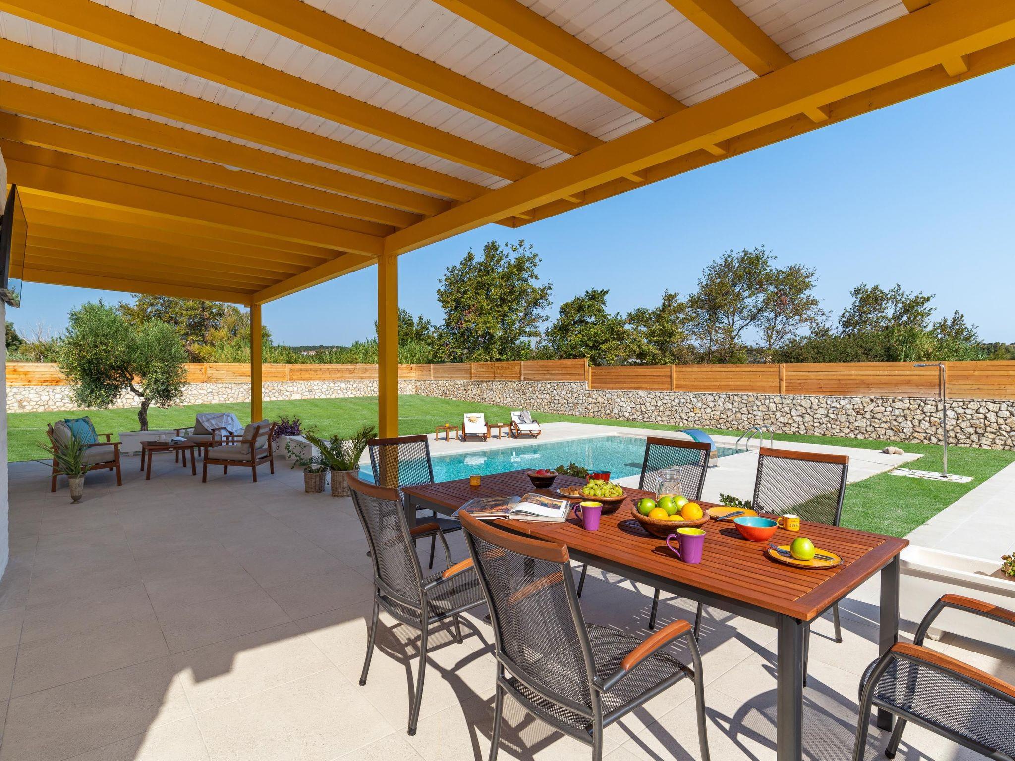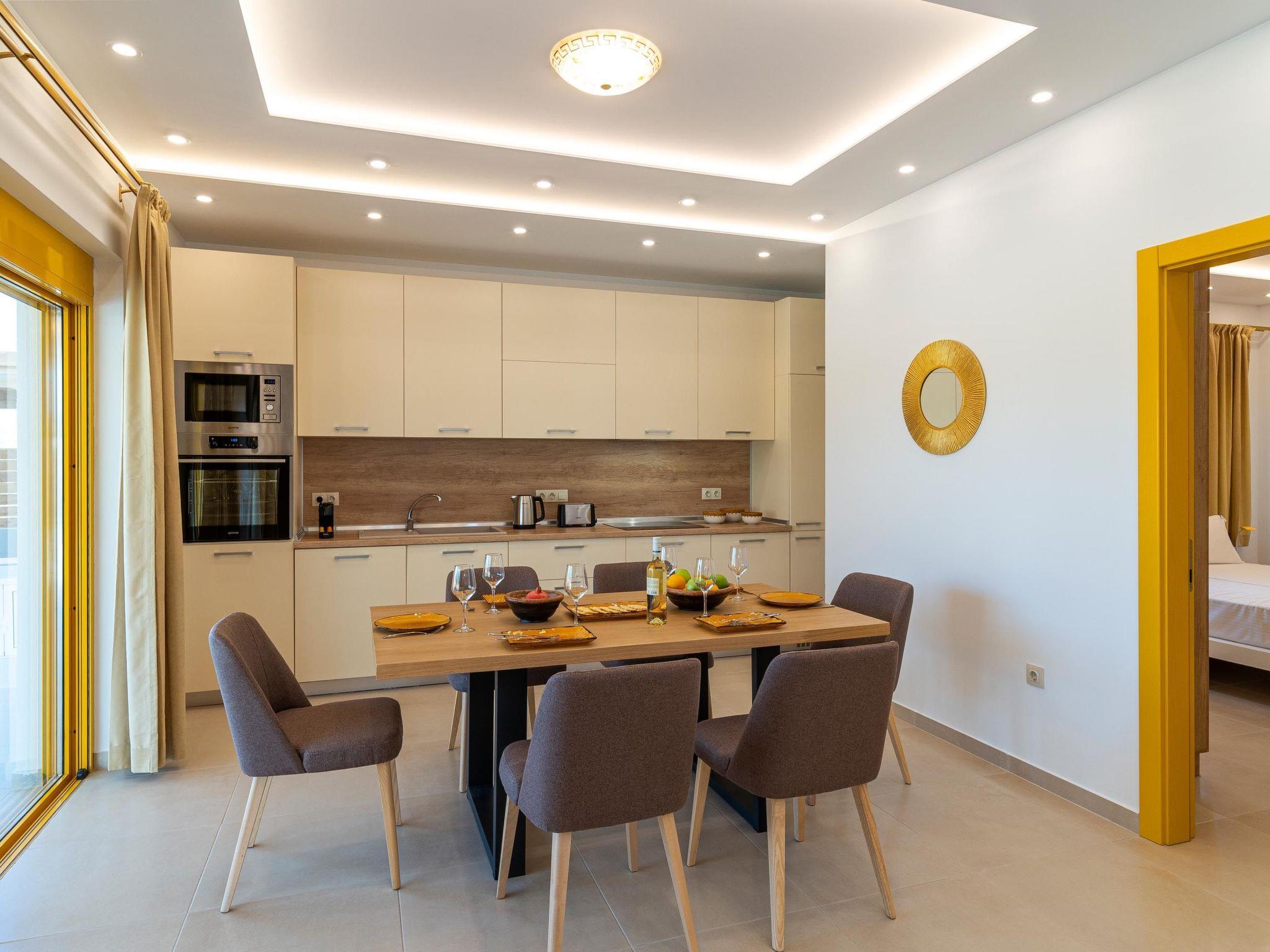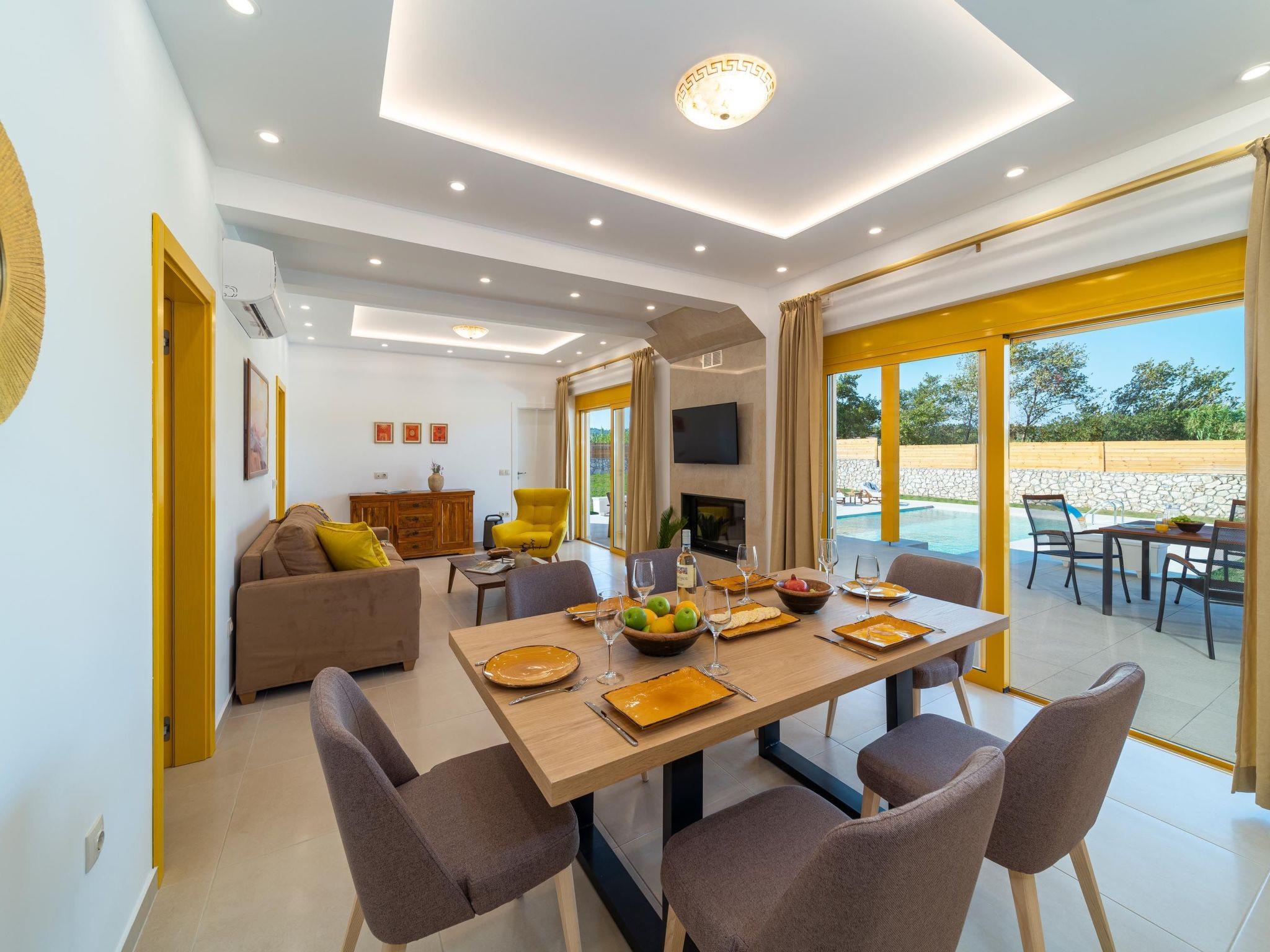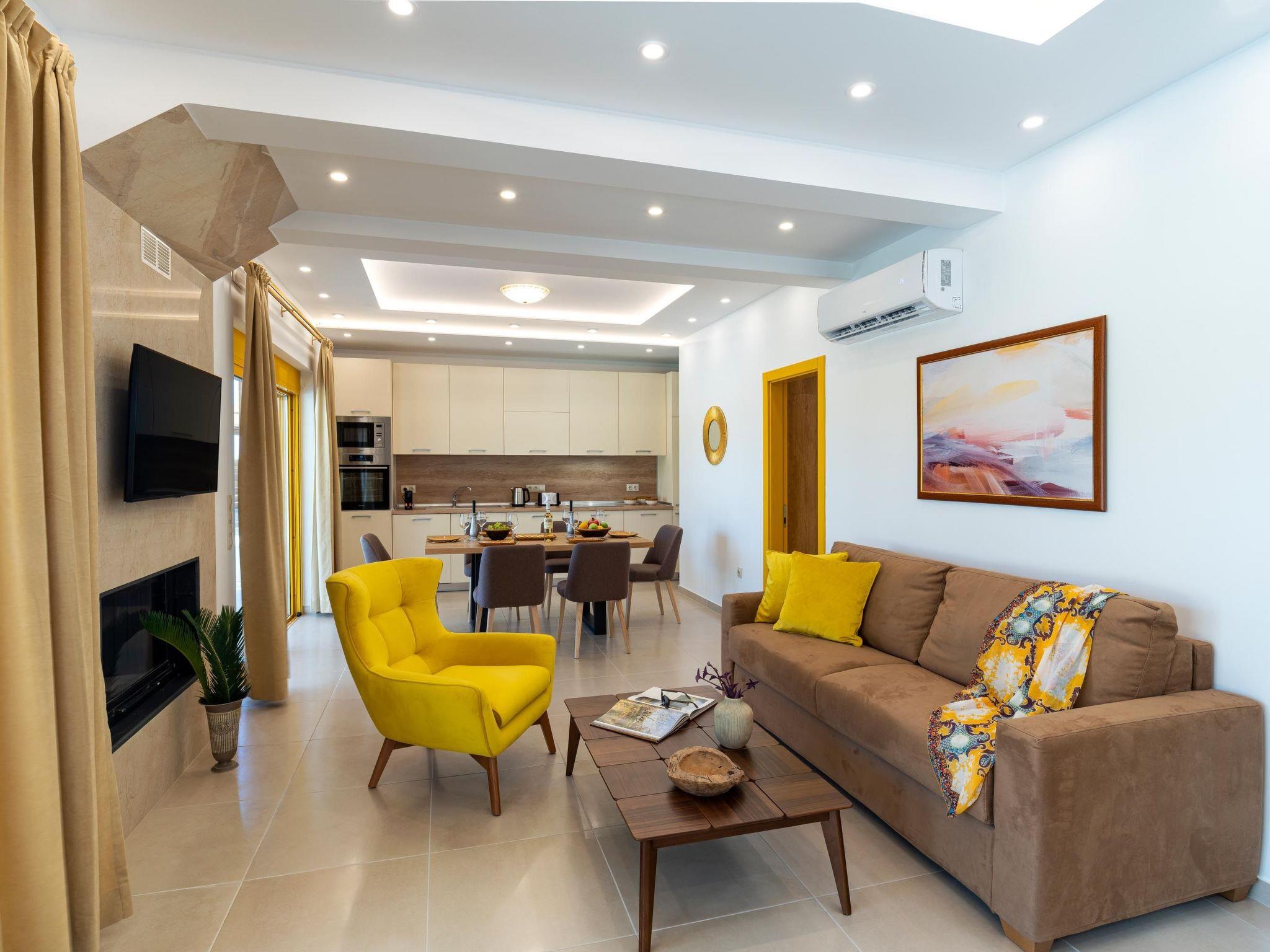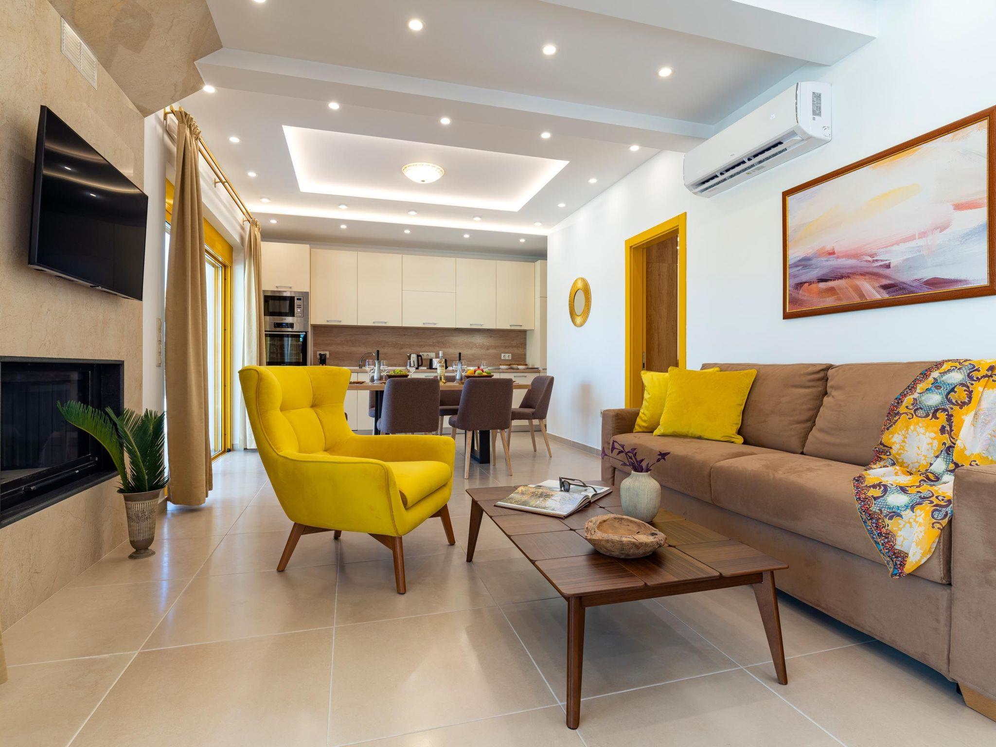 Villa Ilios has two fully air-conditioned bedrooms with ensuite bathrooms with showers and a comfy double sofa-bed in the living room. There is also one bathroom with a shower next to the living room. The kitchen is fully equipped, suitable for any meal preparation accompanied by the sitting area. The interior design is absolutely incredible with a tasteful decoration. Guests will find flat screen TVs and free Wi-Fi access throughout the property. Outdoors, there’s a magnificent private swimming pool and sitting areas to relax under the Aegean sun. The BBQ facility and utensils offer you the opportunity to enjoy outdoor al fresco dinners by the pool.
