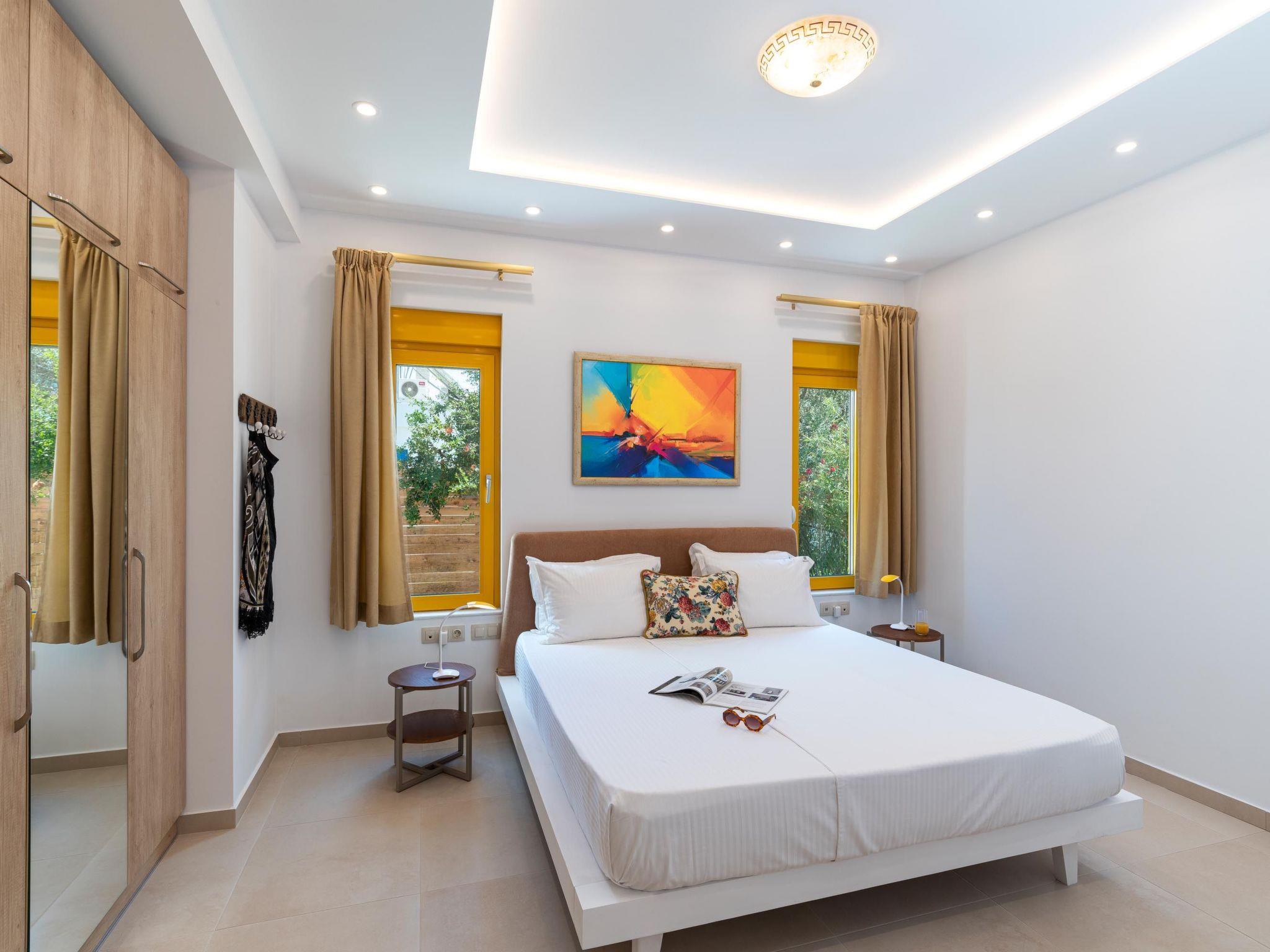The Villa is located in Kolympia Village. In the village you will find shops, cafes, restaurants and bars. The distance to Rhodes town is found within a driving distance of 35 minutes. You should not miss visiting Lindos Village and its incredible Acropolis at a distance of 30 minutes. Also, Tsampika beach, which is considered to be the most beautiful sandy beach in Rhodes, is only 5 minutes away by car. One of the most charming locations in Rhodes, the Seven Springs forest is only 3km away. The area of Seven Springs and the nearby forests are suitable for hiking. The airport of Rhodes is found at a distance of only 30 minutes.
