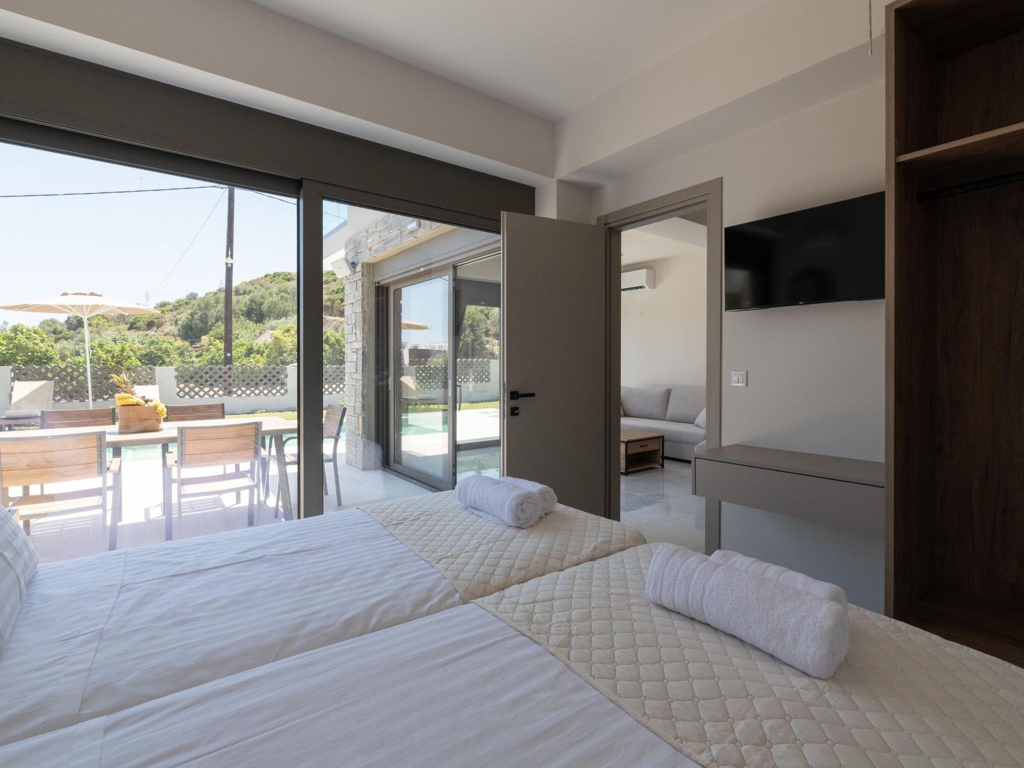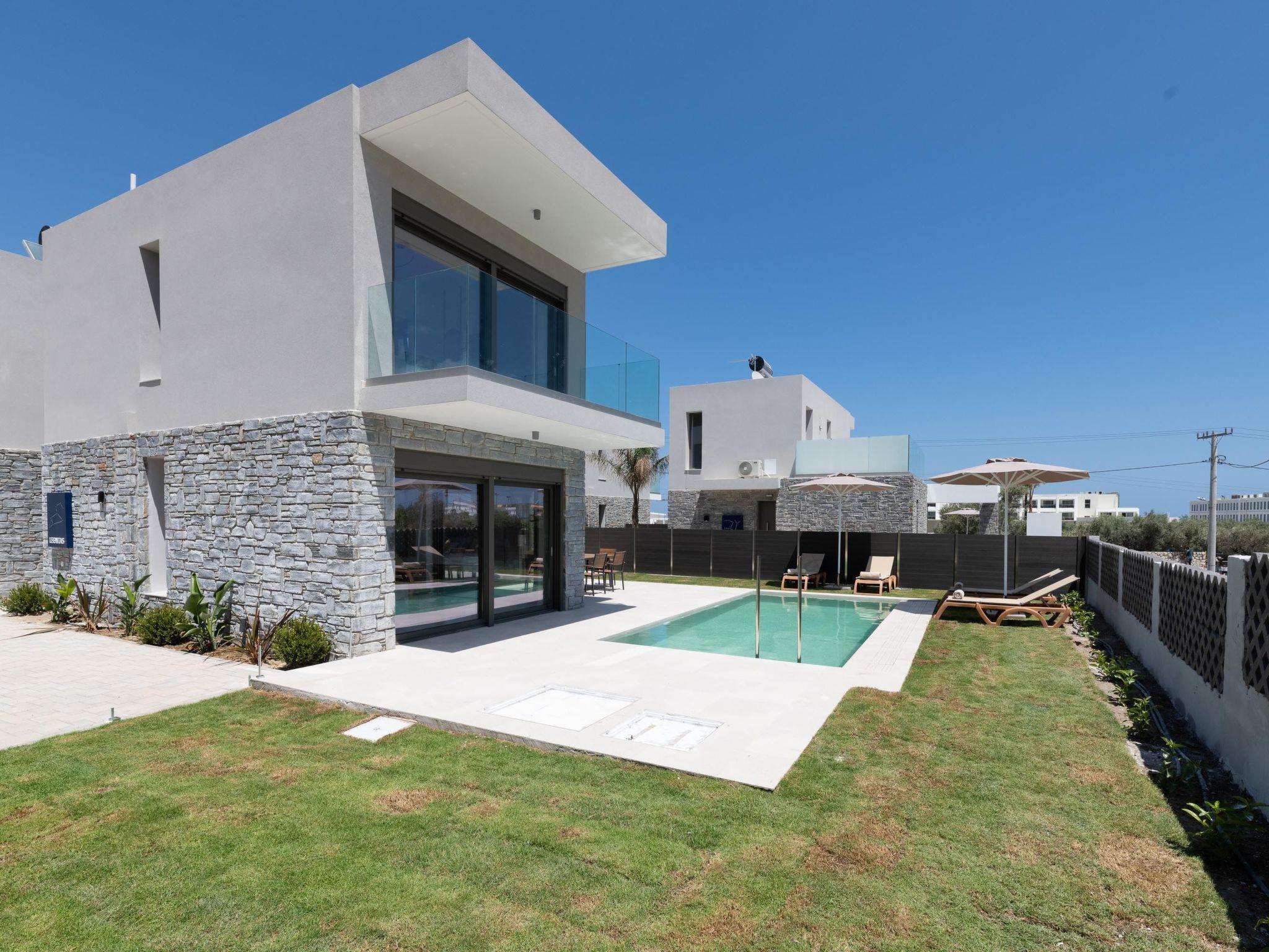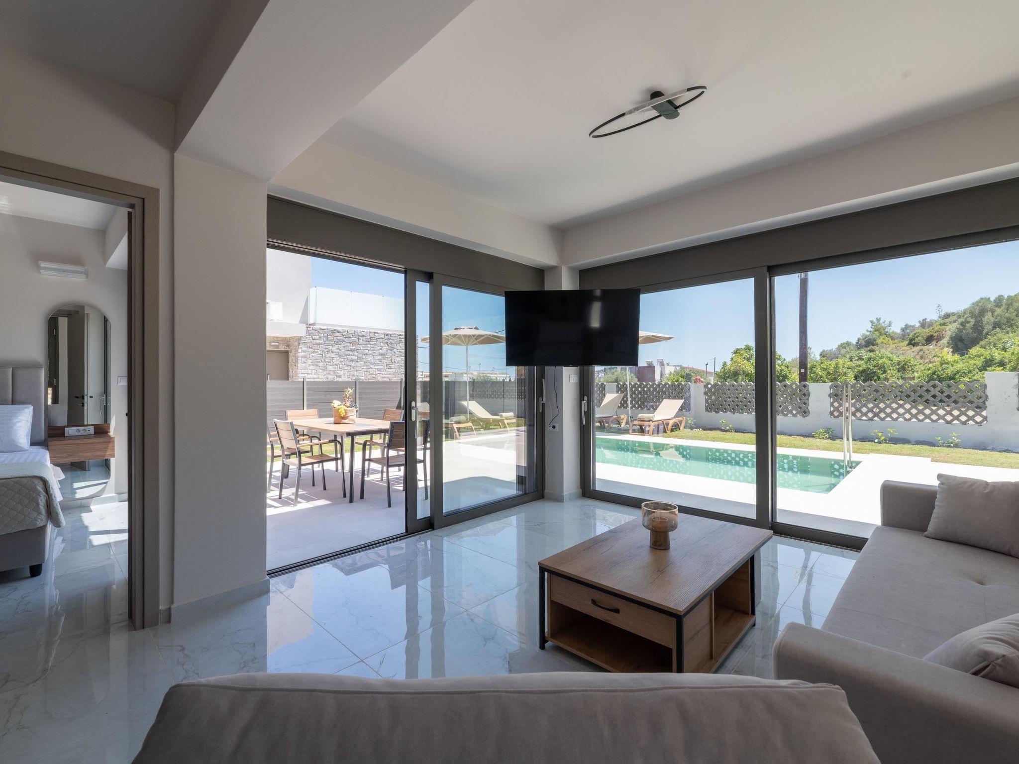 The city center of Rhodes is approximately 35 km away, while the famous village of Lindos is about 25 km from the villas, both easily accessible for day trips. Nearby, you’ll find several local restaurants, bars, and a supermarket for your daily needs. A pharmacy is also located close to the villas for your convenience.