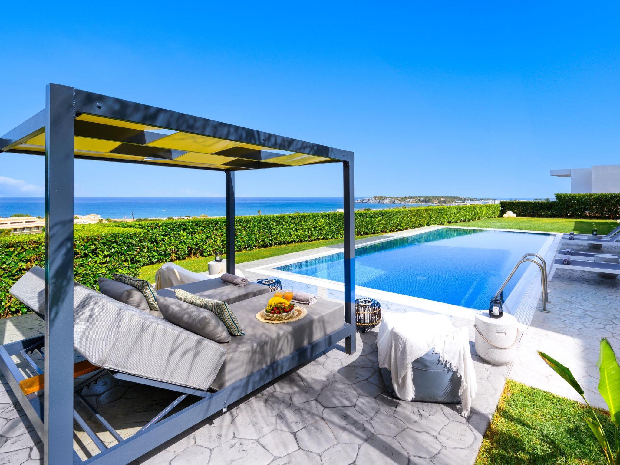 Discover the true meaning of vacation while staying at the beautiful Hill & Sea View Villas. Kolympia is located half way between Rhodes town and Lindos. Guests will find Tsambika beach with its dreamy waters in the distance of a 5 minute drive. Kolymbia village is a peaceful place and surely you’ll find all your necessary urban conveniences such as super markets, pharmacies, bars, restaurants, and car rentals. You should visit Afantou beach, the cleanest beach of the island, which is only about a 10 minute drive away. Guests should not miss visiting Lindos which is about a half drive far from the Villa. Lindos Acropolis is the most breathtaking archaeological site of Rhodes and has the most idyllic beaches. Also, visitors should explore the Old Town of Rhodes, a UNESCO World Heritage, in a distance of about a half hour drive away from the villa. The airport is located a half hour drive away.