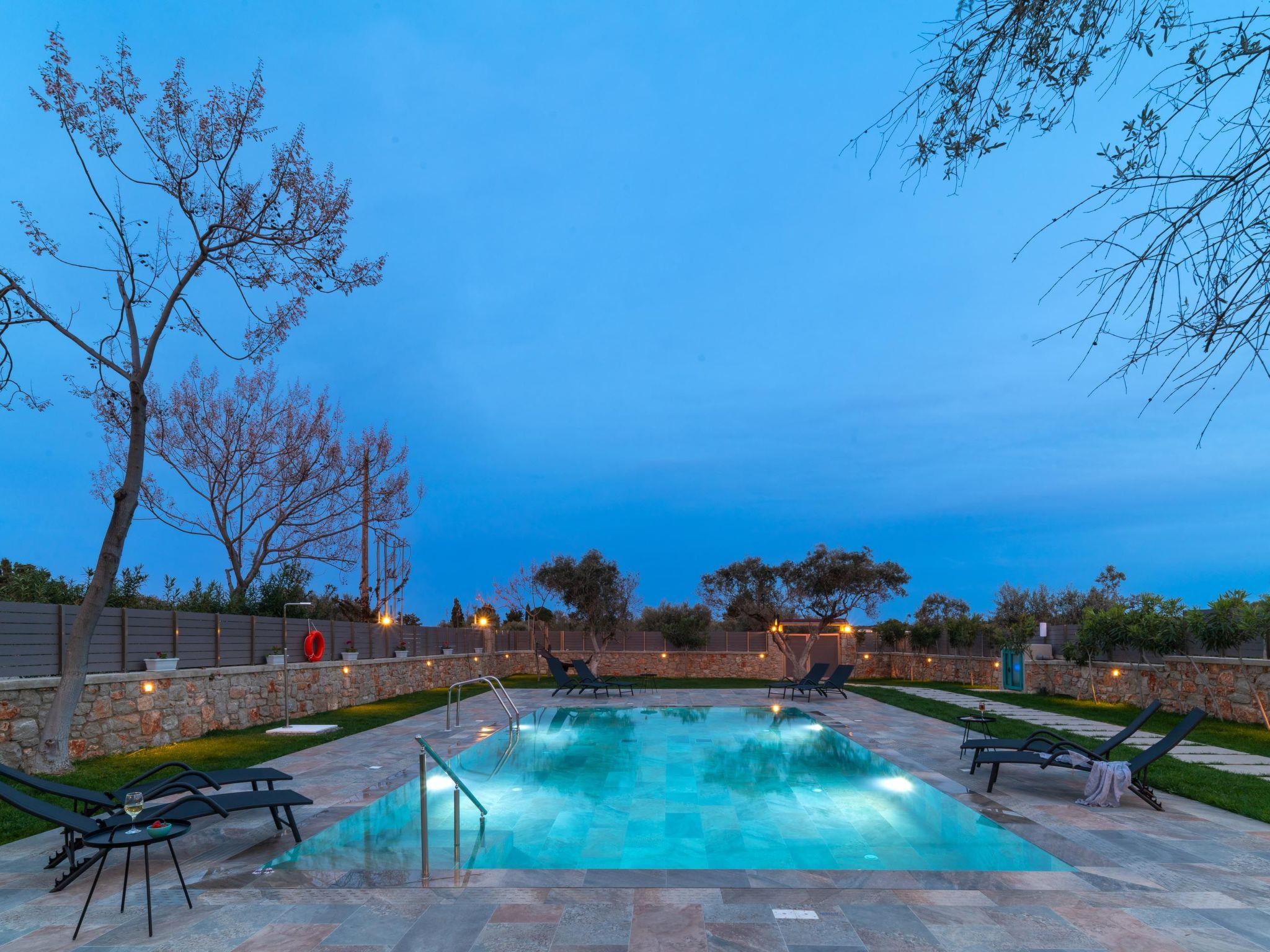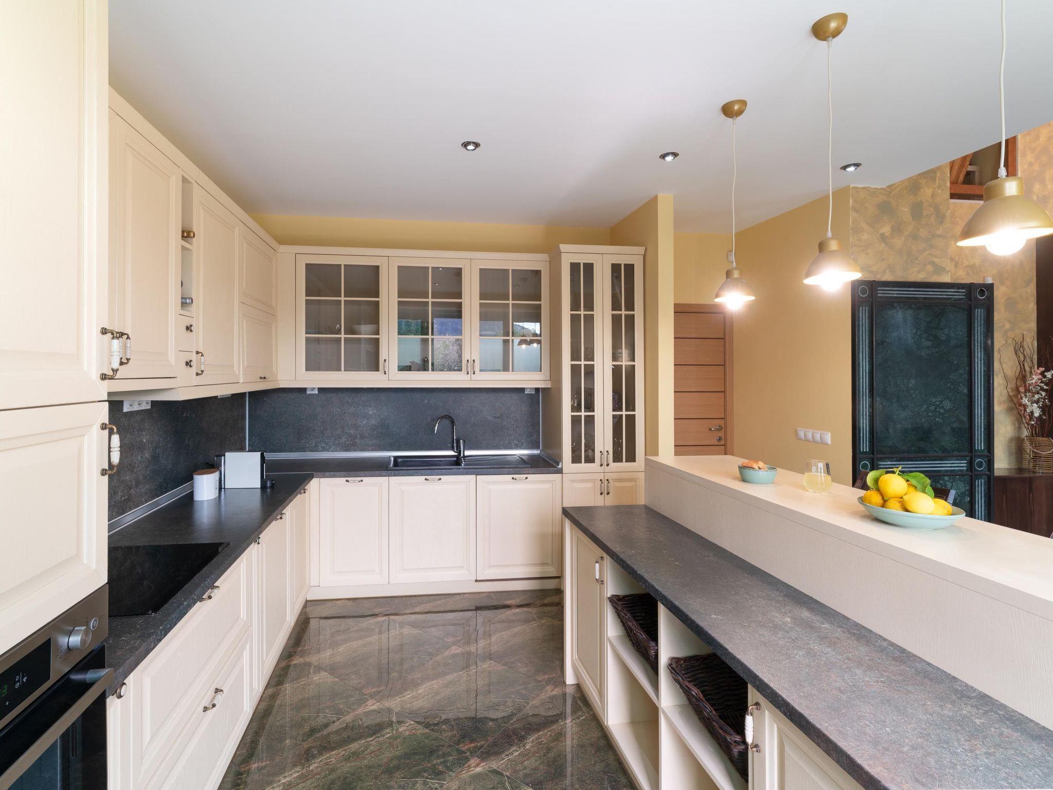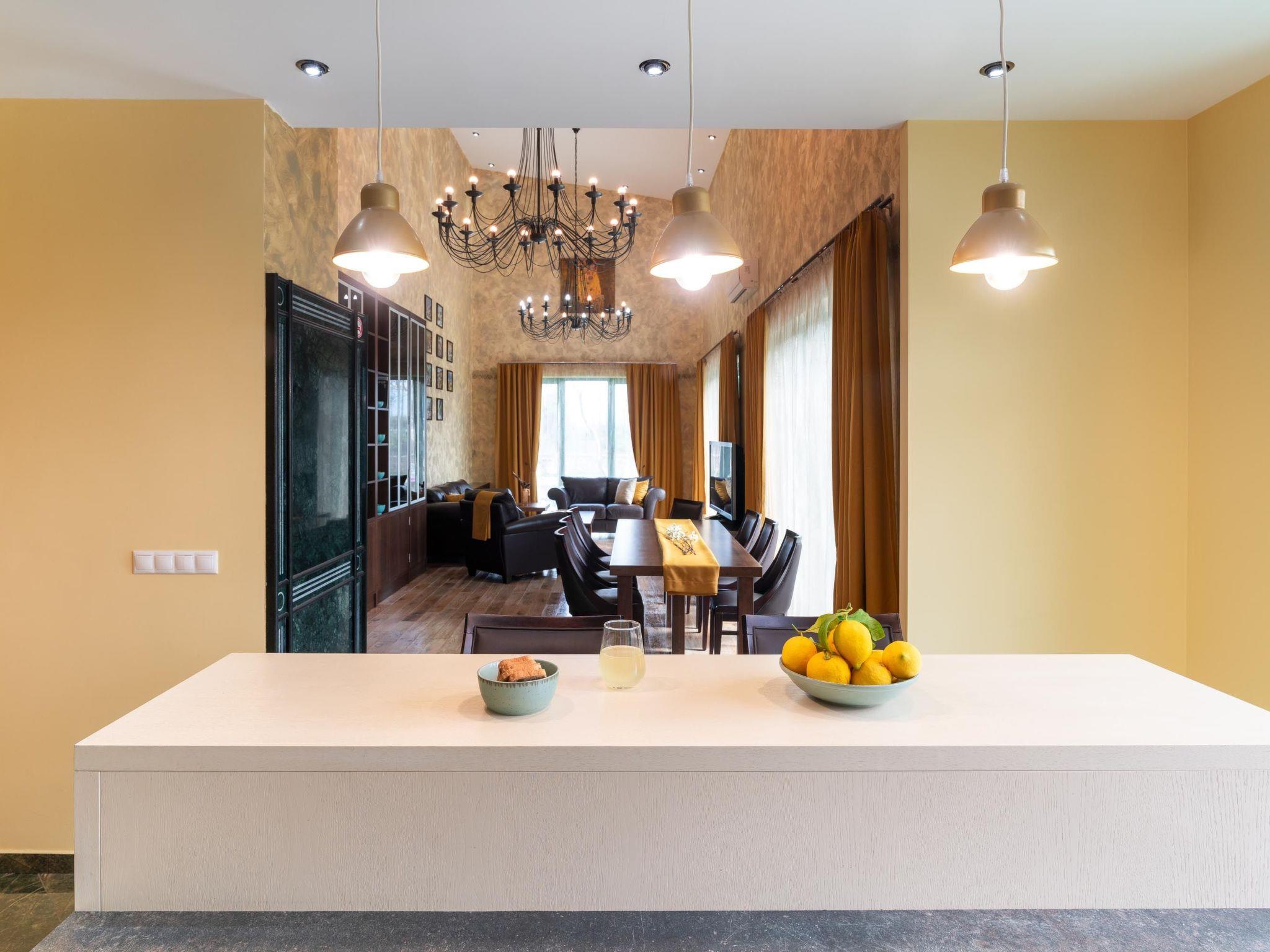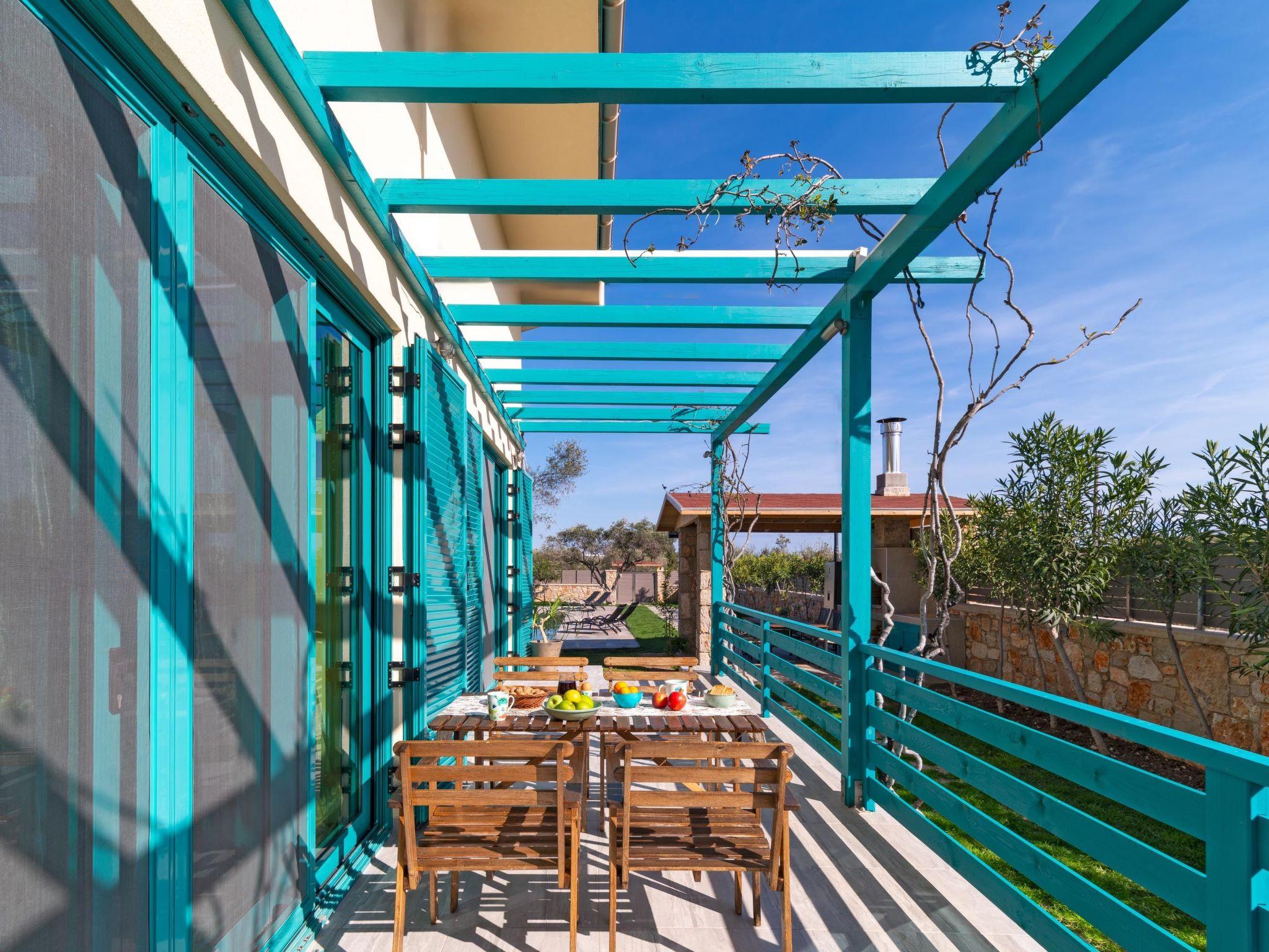 Throughout centuries, the people of Rhodes have used various types of stone to construct their towns, temples. Villa Terra stands as a testament to the craftsmanship and artistry of master stonemasons (?????t?st??), meticulously hand-carving each stone of the fence to preserve the distinctive nuances of the local terrain. The turquoise essence of the Aegean breeze woven into the windows and shutters. Spacious patio, lush green surroundings, a dedicated BBQ area equipped with TV and all the essentials invite guests to leisurely gatherings. Dive into the refreshing embrace of the spacious swimming pool, complete with amenities for both relaxation and recreation, including a counter-current feature and a Jacuzzi section. Inside, Villa Terra exudes a sense of balance and harmony. Natural wooden parquet, marble fireplace, onyx accents and a graceful oak staircase adorn the floors, leading to three elegantly appointed bedrooms with en-suite bathrooms. King-size beds on the upper floor and singles on the lower floor offer comfortable accommodations for up to six guests. With provision for additional 2 beds and 2 baby cots upon request, ensuring comfortable accommodations for larger groups or families. Each room is equipped with air conditioning, guaranteeing optimal comfort throughout your stay. The ground floor features a dedicated toilet and a fully equipped laundry room, complete with ironing facilities for added convenience. An airy open-plan living room seamlessly transitions into a sleek Scavolini kitchen, boasting contemporary appliances and generous counter space. A central island invites casual dining or an afternoon drink on the bar stools, leather sofas and armchairs invite relaxation. A private garage within the villa premises accommodates two cars, with extra parking available outside.