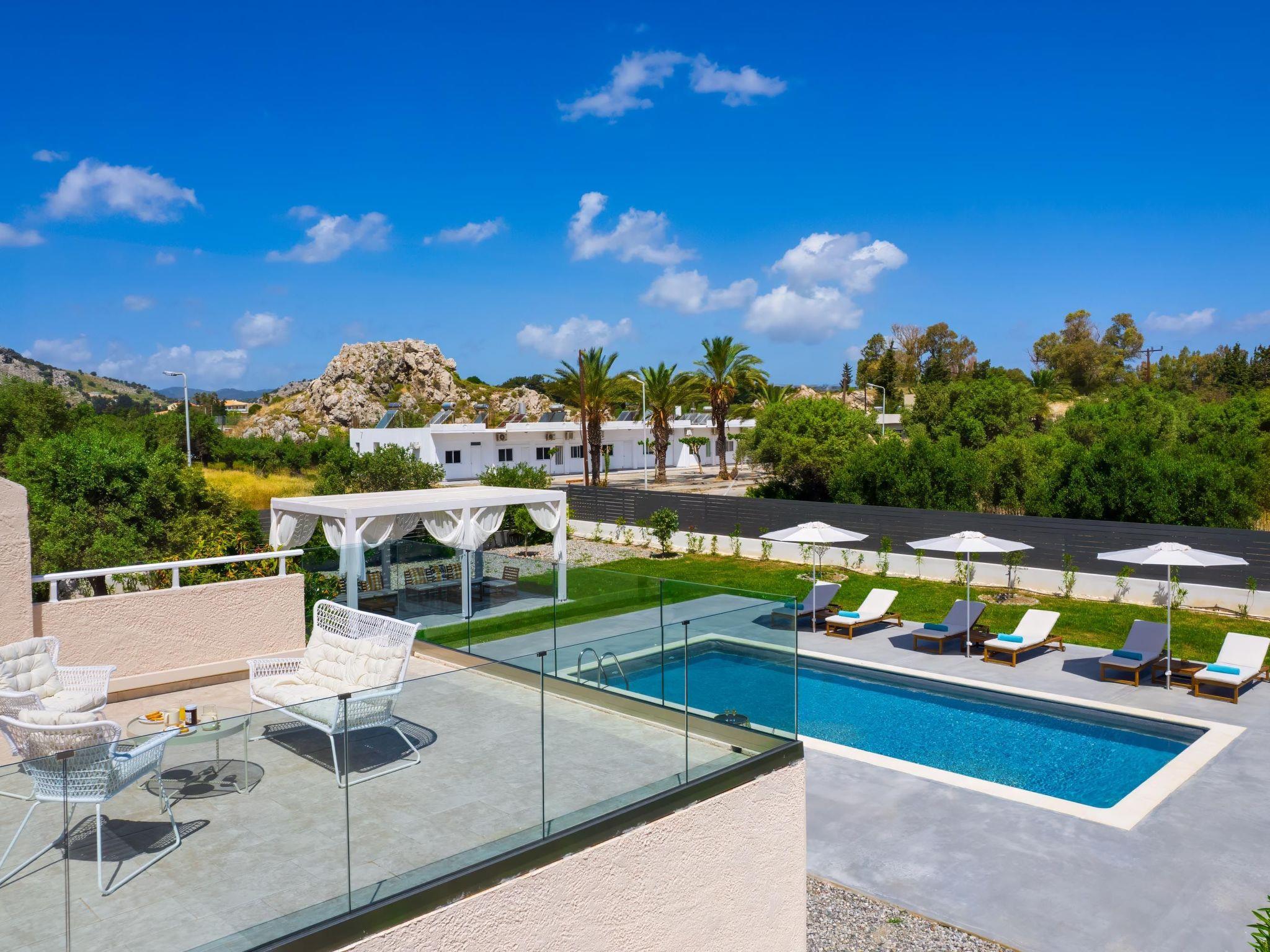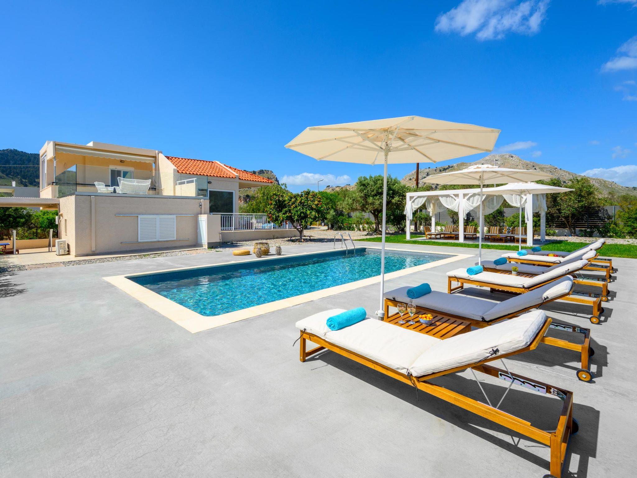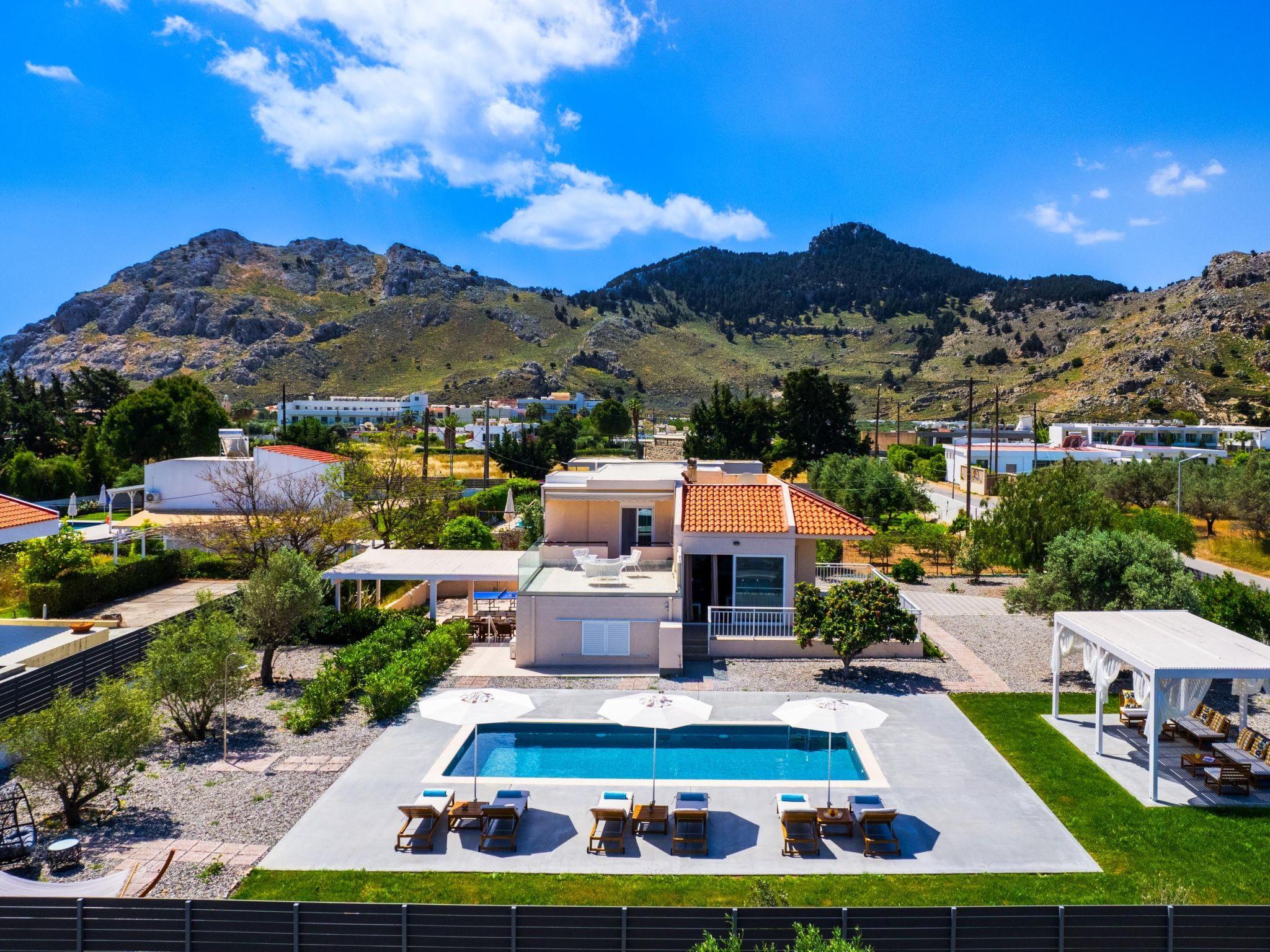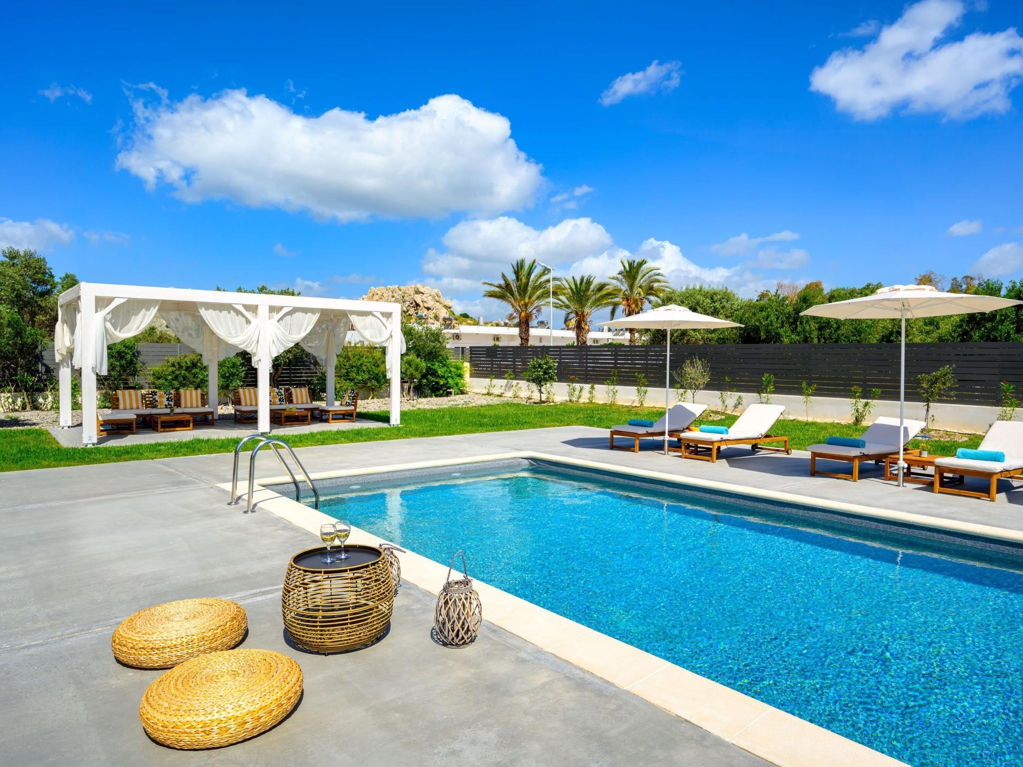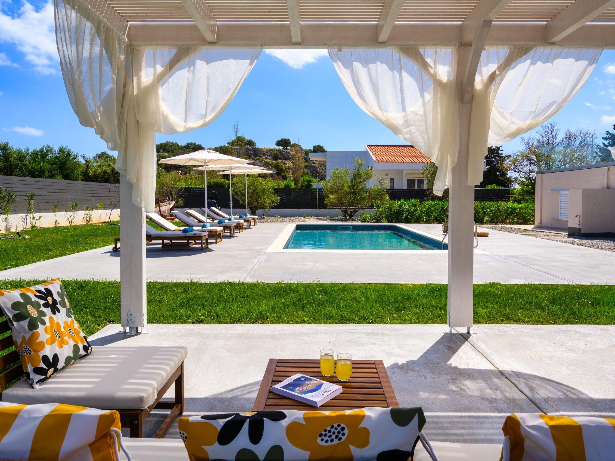 Eternity Villa in Kolympia, Rhodes, welcomes up to 7 guests. This spacious retreat offers modern amenities, including a private pool and lush garden. With multiple bedrooms and bathrooms, it ensures comfort and privacy for families or groups. Enjoy serene surroundings and easy access to nearby attractions during your stay.