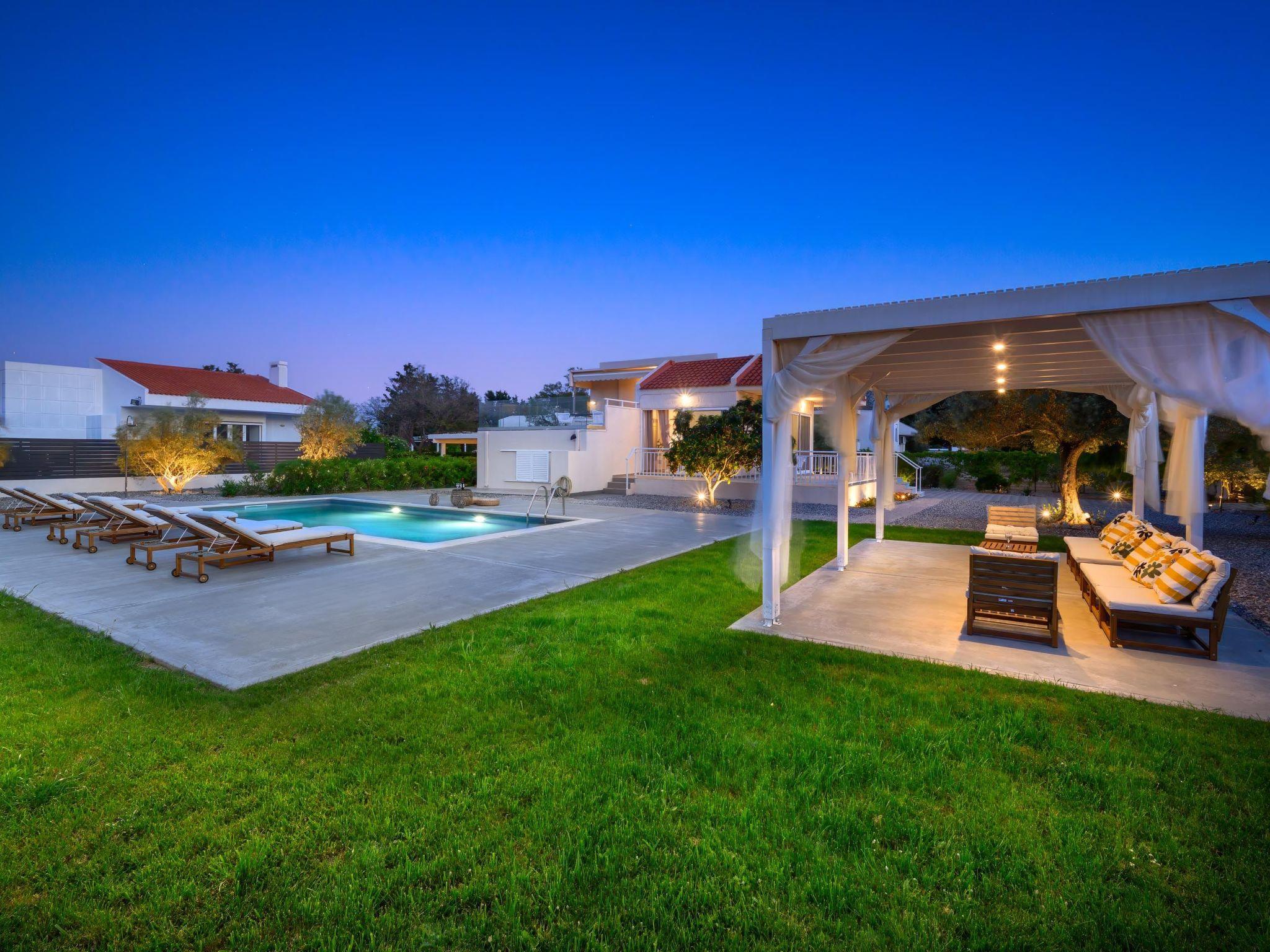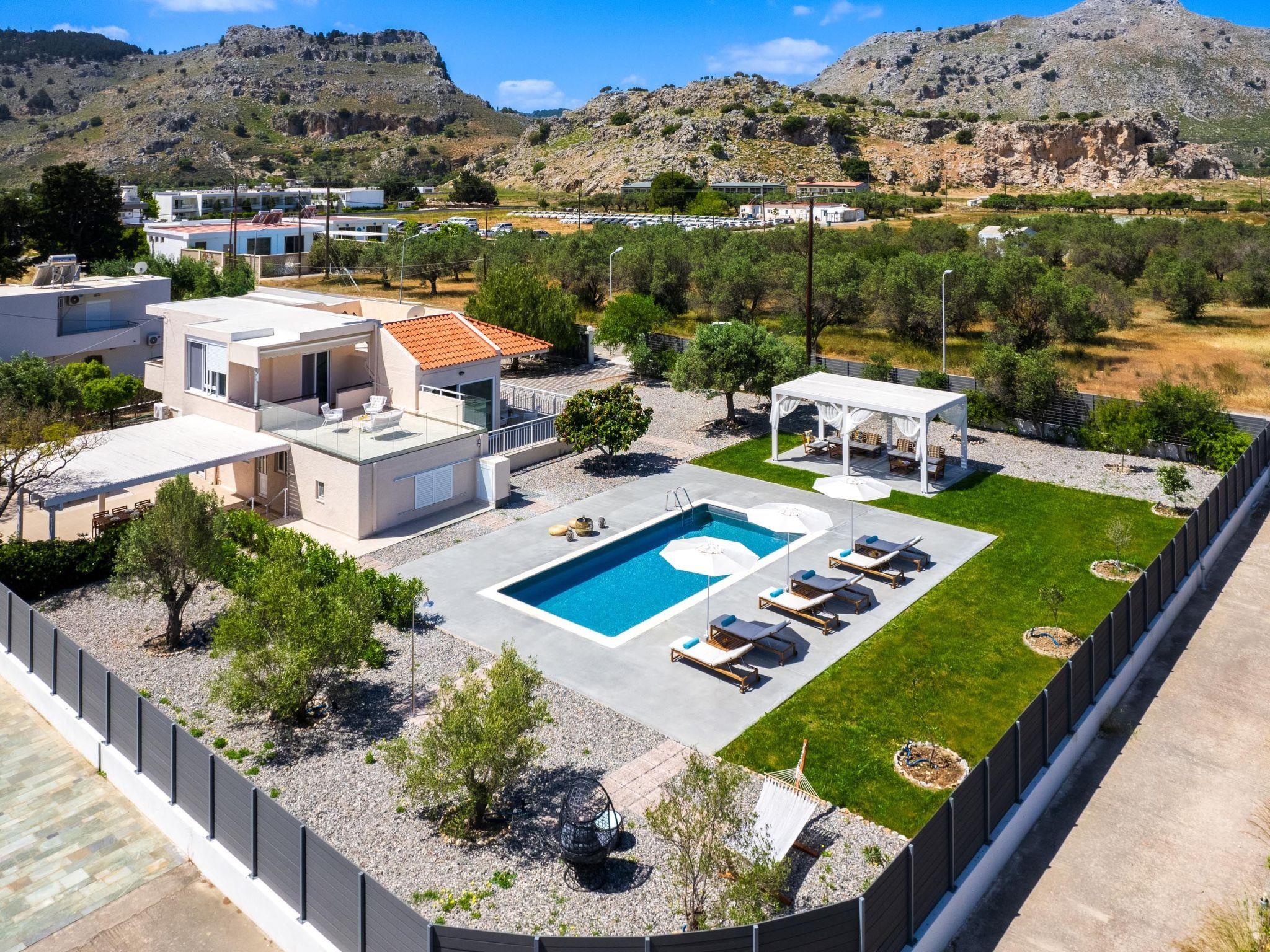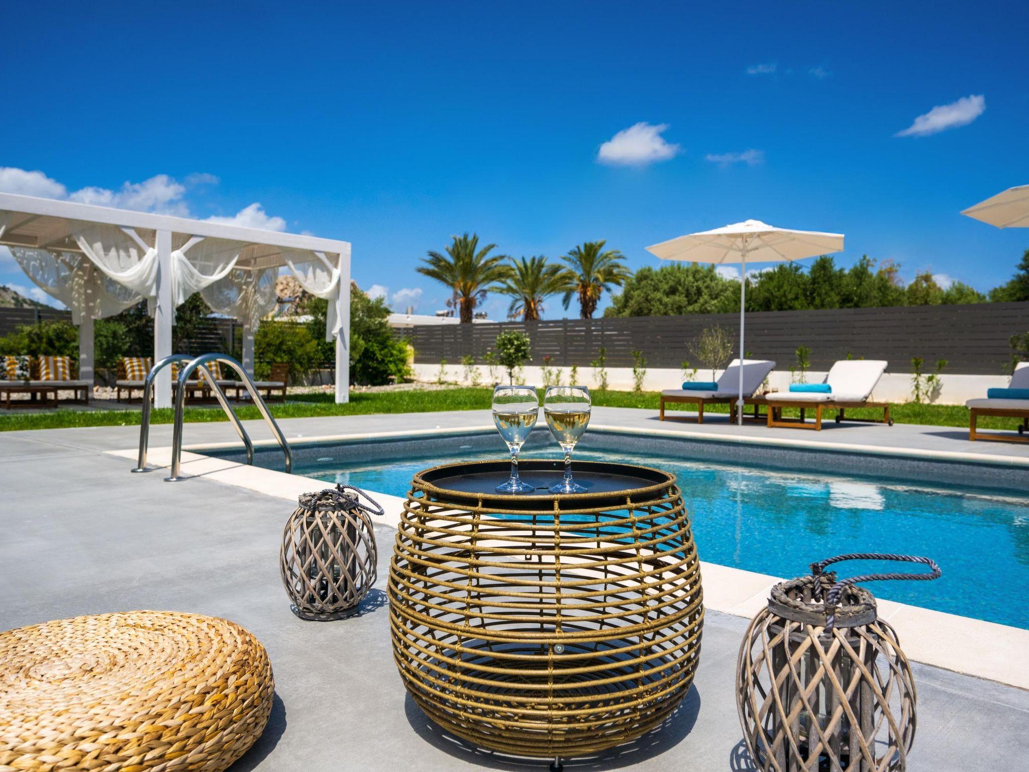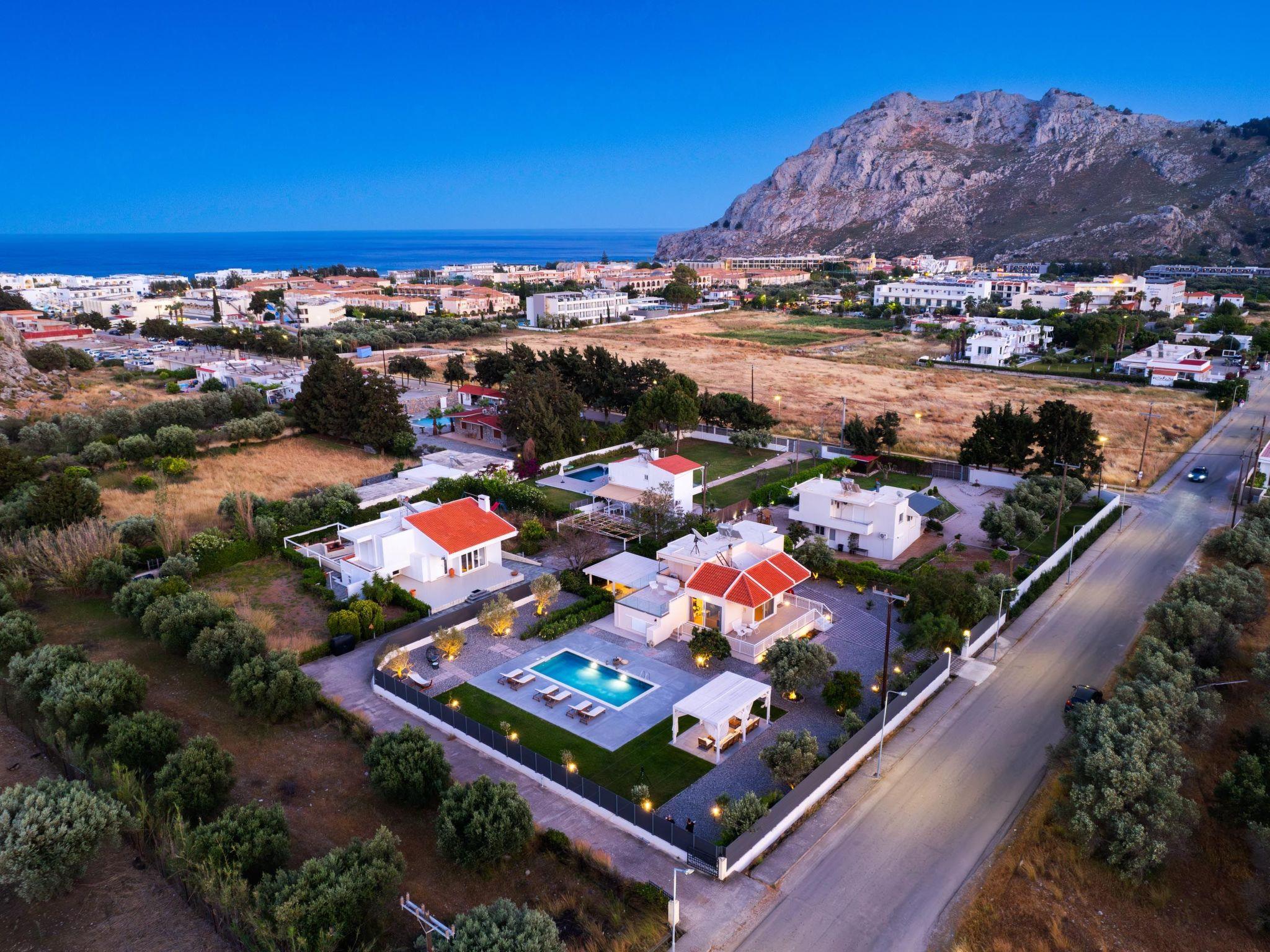 Eternity Villa in Kolympia, Rhodes, welcomes up to 7 guests. This spacious retreat offers modern amenities, including a private pool and lush garden. With multiple bedrooms and bathrooms, it ensures comfort and privacy for families or groups. Enjoy serene surroundings and easy access to nearby attractions during your stay.