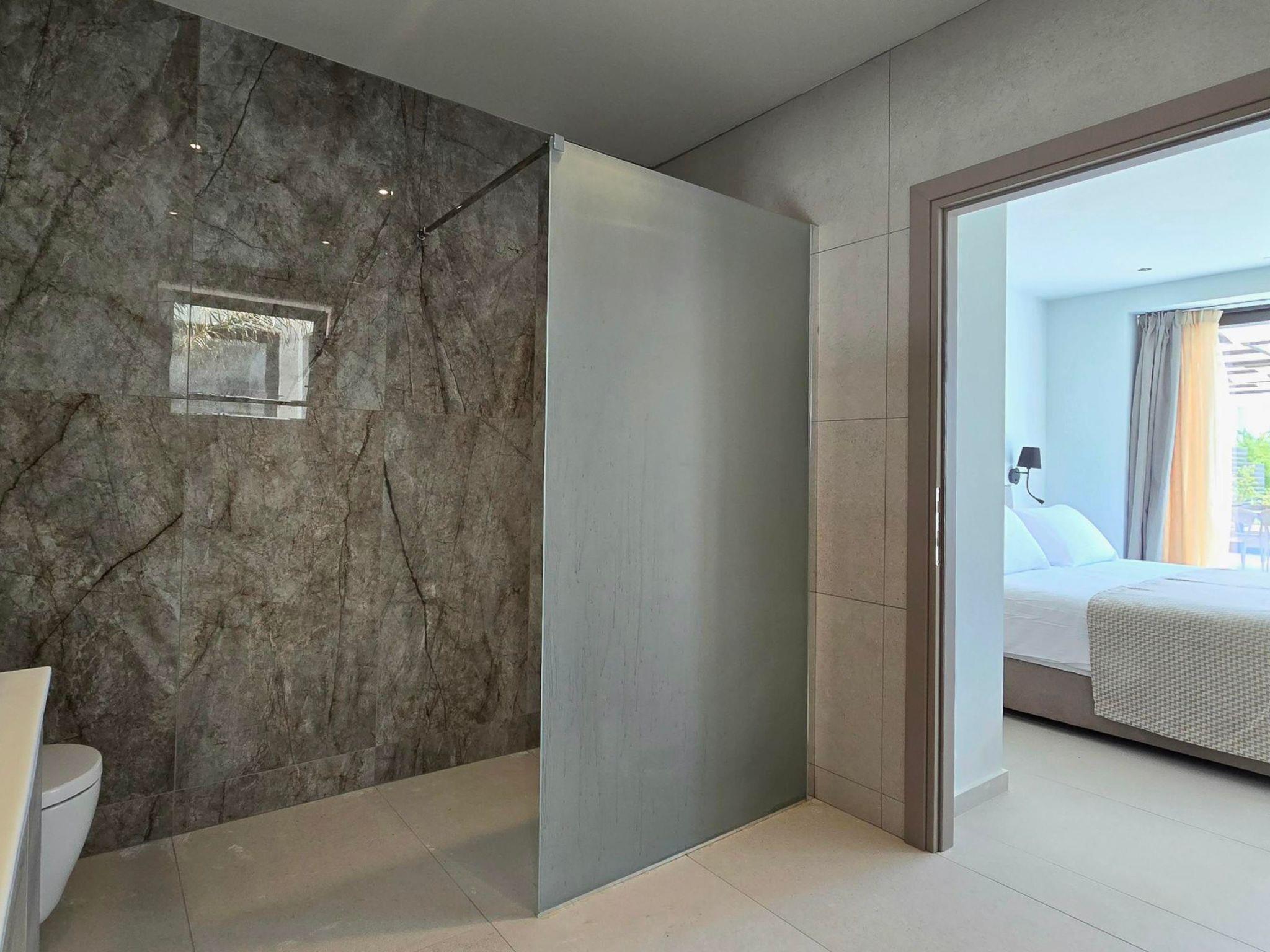 Welcome to the magic luxury living of Trapezia Villas. Trapezia Luxury Living boasts a stunning design that combines modern aesthetics with timeless elegance. Every detail is meticulously crafted to create a sophisticated and luxurious atmosphere. They offers expansive living spaces, including large living rooms, dining areas, and three fully equipped bedrooms with en-suite. The high ceilings and open floor plan enhance the sense of grandeur and provide ample room for relaxation and entertainment. All Trapezia villas are equipped with top-of-the-line amenities to ensure an unparalleled experience of luxury. From a fully-equipped outdoor gourmet kitchen to a private swimming pool and spa, every aspect of comfort and indulgence is taken care of. Trapezia Luxury Living is the epitome of opulence and sophistication, offering a truly exceptional living experience for those seeking the finest in accommodation.Type B villas are one floor detached luxury villa that hosts up to 6 guests. There are 3 fully air-conditioned bedrooms with unique decorations. All of the bedrooms offer ensuite bathrooms with a shower. There’s a fully equipped kitchen in warm colors, suitable for any meal preparation accompanied by the seating area and the living room. There’s a smart TV and free WIFI access throughout the property. Outdoors, there’s a private swimming pool and jacuzzi with sunbeds and a seating area where you can relax under the rays of the Aegean sun. You can spend your time by your private swimming pool or enjoy a fresh meal prepared in the BBQ installation. This amazing property and the beautiful location make the perfect match for a memorable stay and unforgettable holidays in Rhodes!