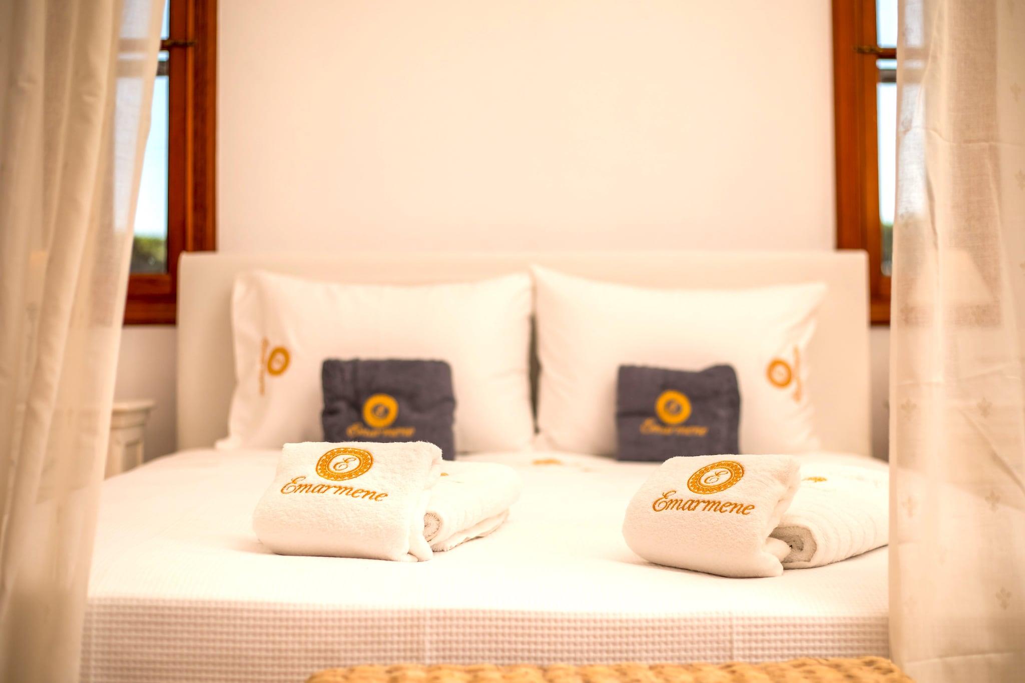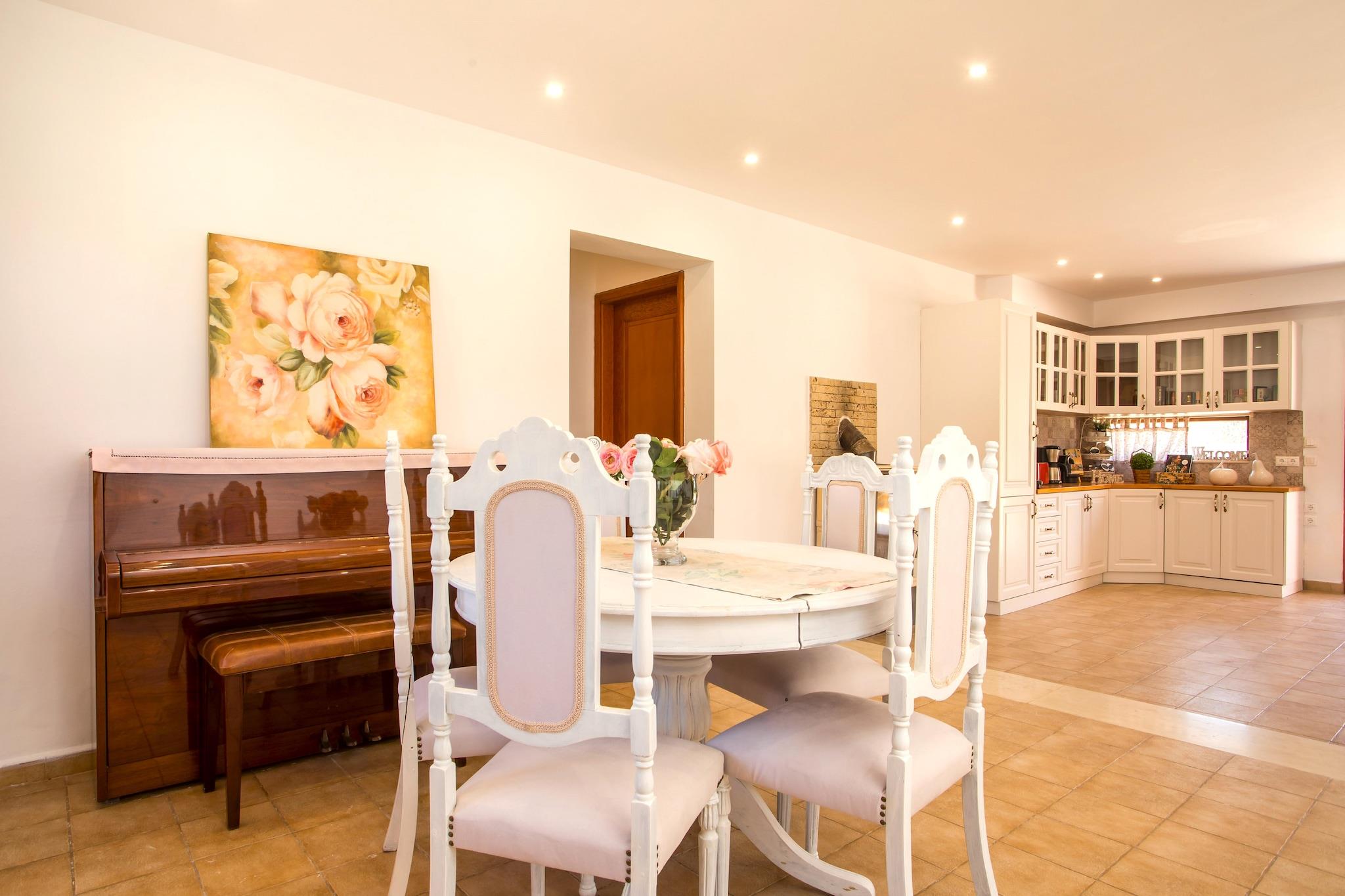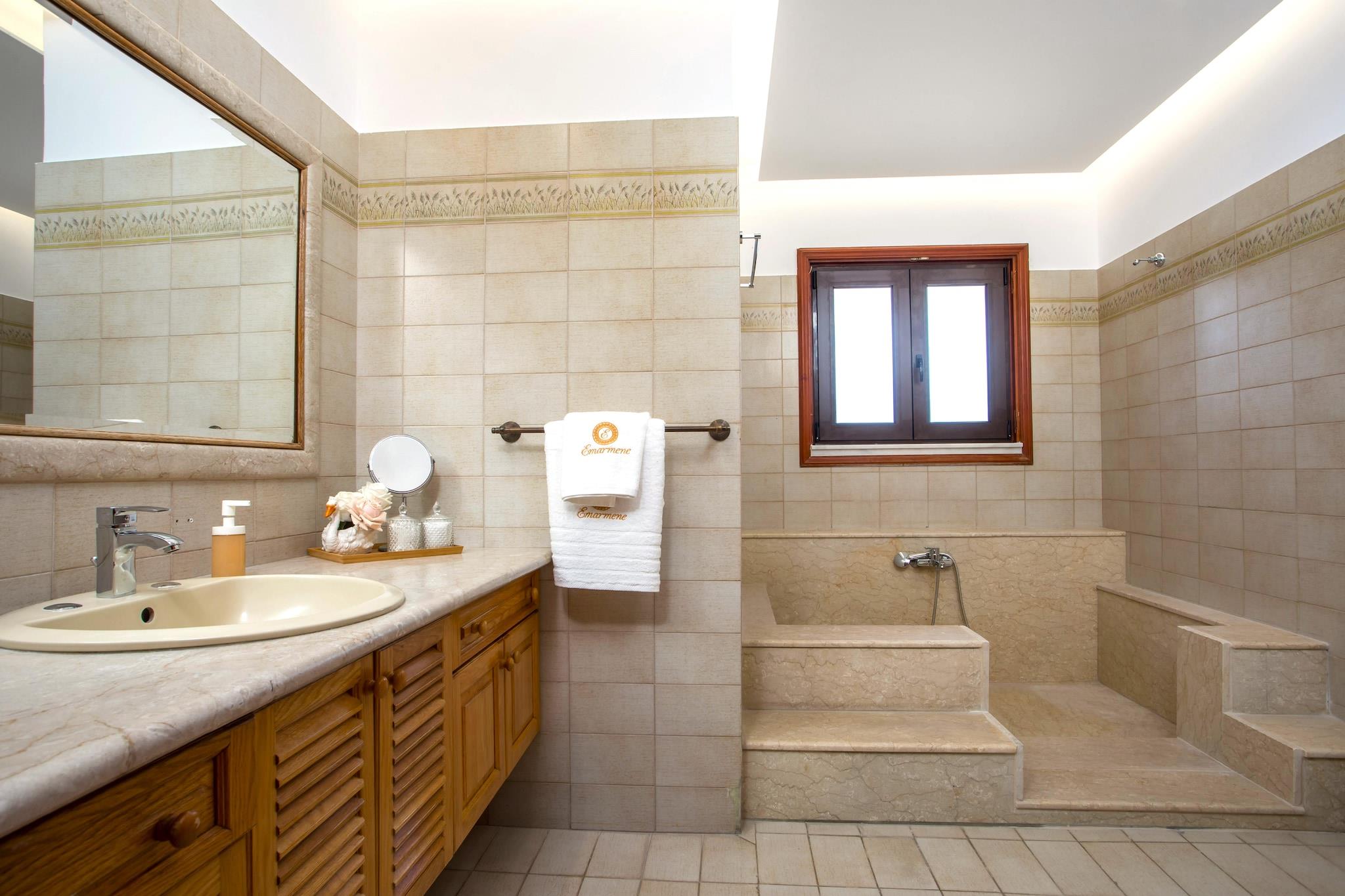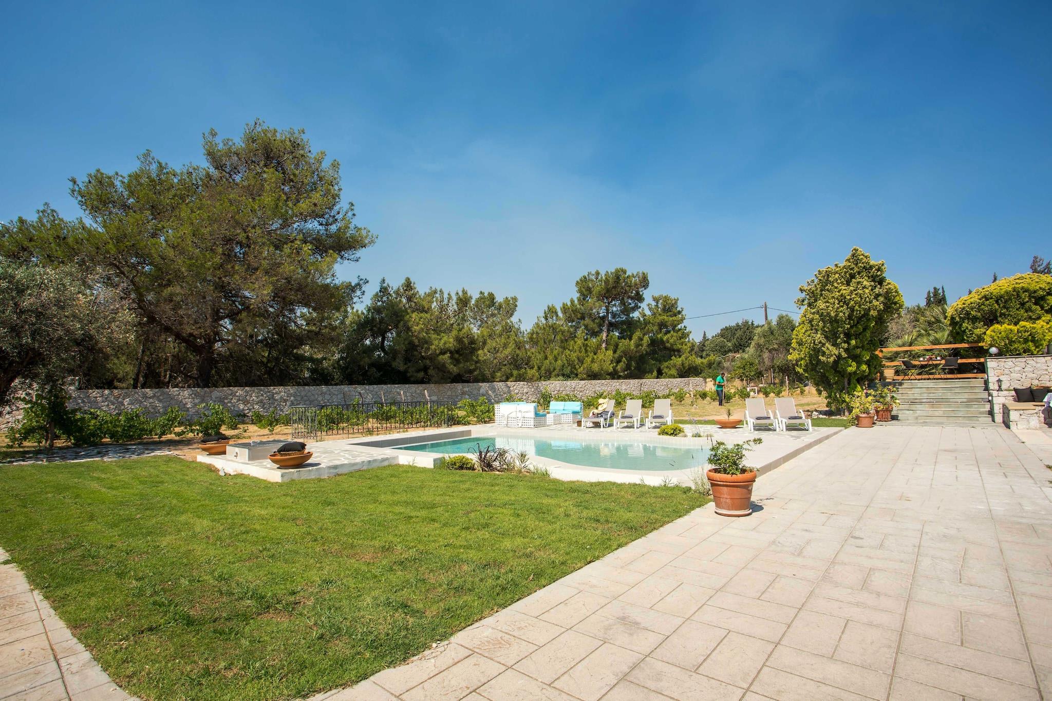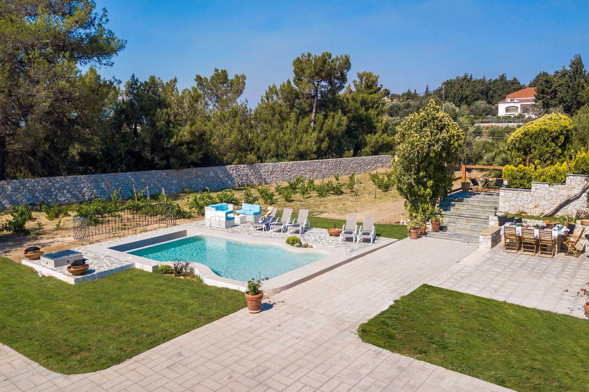 Forkæl dig selv med en behagelig og solbeskinnet flugt i denne moderne ferievilla, beliggende i den charmerende landsby Koskinou på øen Rhodos. Kun 480 meter fra det glitrende Ægæiske Hav har villaen en privat swimmingpool, have og rummeligt interiør, hvilket gør den ideel til familier eller vennegrupper, der søger en afslappende ferie nær stranden. Tilbring dine dage med at slappe af på den nærliggende strand eller udforske øens naturlige skønhed og rige historie. Afandou Golfbane ligger kun 12,5 km væk for golfelskere, mens daglige fornødenheder kan findes i supermarkedet Sklavenitis, 6,2 km fra ejendommen. Der er også flere lokale taverner og restauranter i nærheden, som tilbyder autentiske græske retter. Villaen er beliggende nær Euromedica Clinic og er godt forbundet til omkringliggende attraktioner. Indenfor finder du to indbydende stuer med komfortable siddepladser og tv udstyret med streamingtjenester. Det fuldt udstyrede køkken inkluderer en opvaskemaskine, ovn og alle de nødvendige værktøjer til at tilberede lækre hjemmelavede måltider. Alle soveværelser har aircondition for at sikre en kølig og afslappende nattesøvn, og nogle har private balkoner med dejlig udsigt over det omkringliggende landskab. Dette hjem er perfekt til en afslappende og mindeværdig græsk ø-ferie.