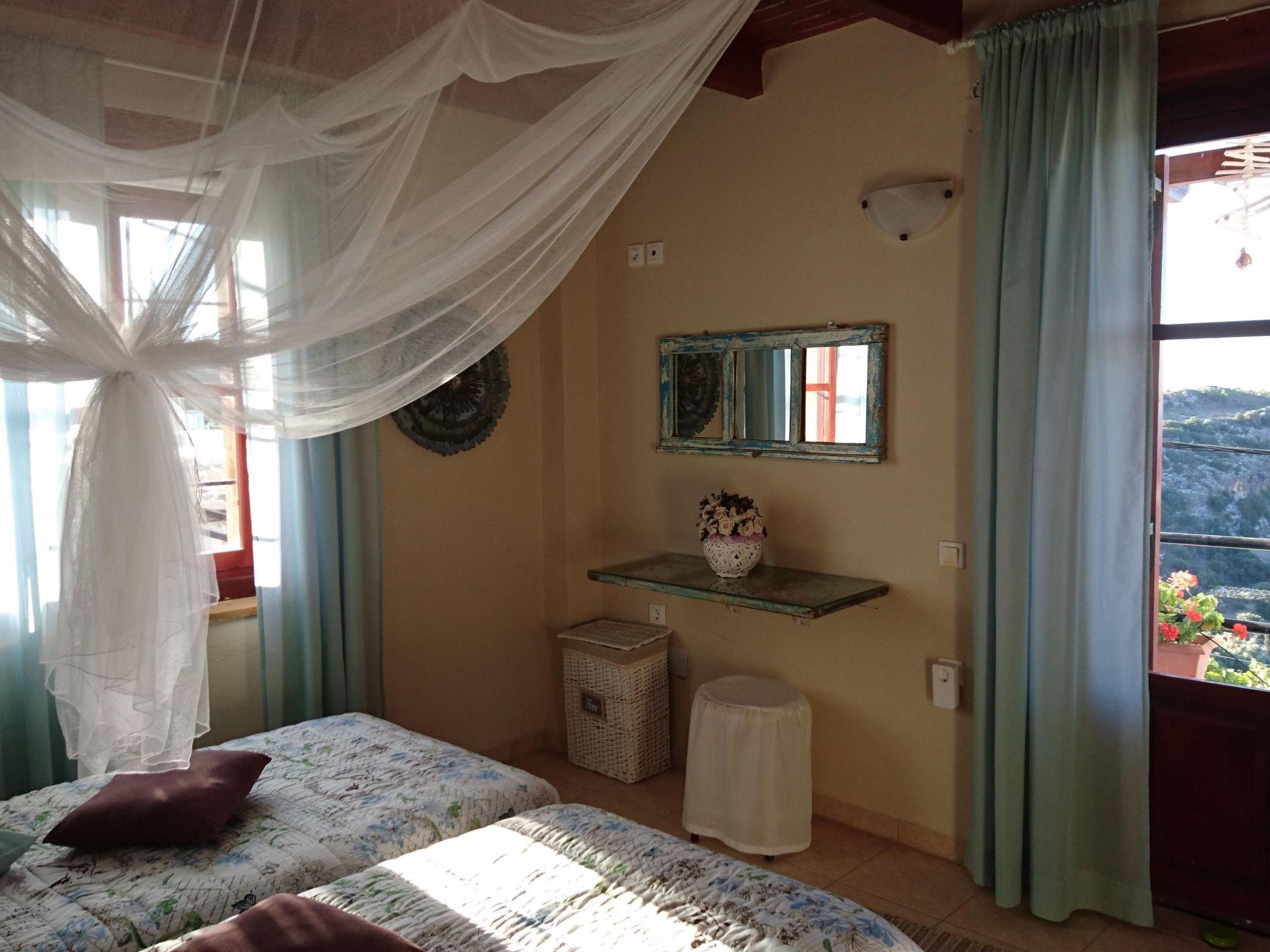 The house combines tradition with comfort. The ground floor, about 55 m² in size, consists of the following rooms: A living room with fireplace, flatscreen TV and single sofa bed; a fully equipped kitchen with cooker, microwave, coffee machine and dining area as well as an adjoining bathroom with shower. A balcony terrace adjoining the living room offers a view over the Libyan Sea to the horizon. On the upper floor there are two beautiful bedrooms with air conditioning and separate balconies as well as a spacious bathroom with shower.