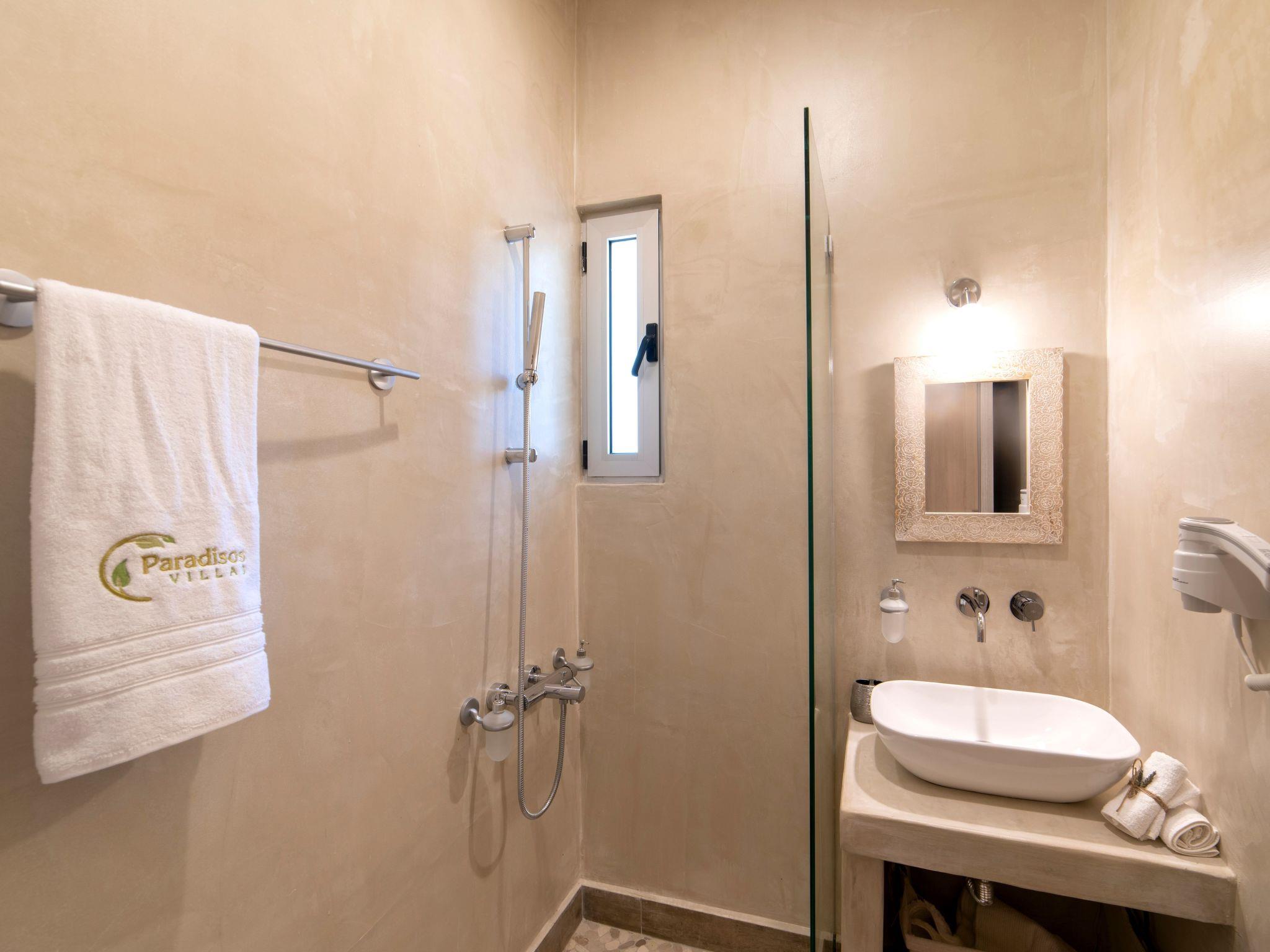 Contemporary décor blends harmoniously with natural stone & wood elements in an unparalleled ambiance of serenity and elegance. Hammocks & lounge chairs under the sun or shaded keep you serene and relaxed. Private infinity pool (heated extra cost), outdoor and indoor whirlpools & BBQ. 5 elegant bedrooms with en-suite full bath, 6th bedroom that sleeps 4, plus loft with en-suite WC. For larger groups, additional space may be available - please ask for quote. Beach with bar/tavernas 2 min walk.