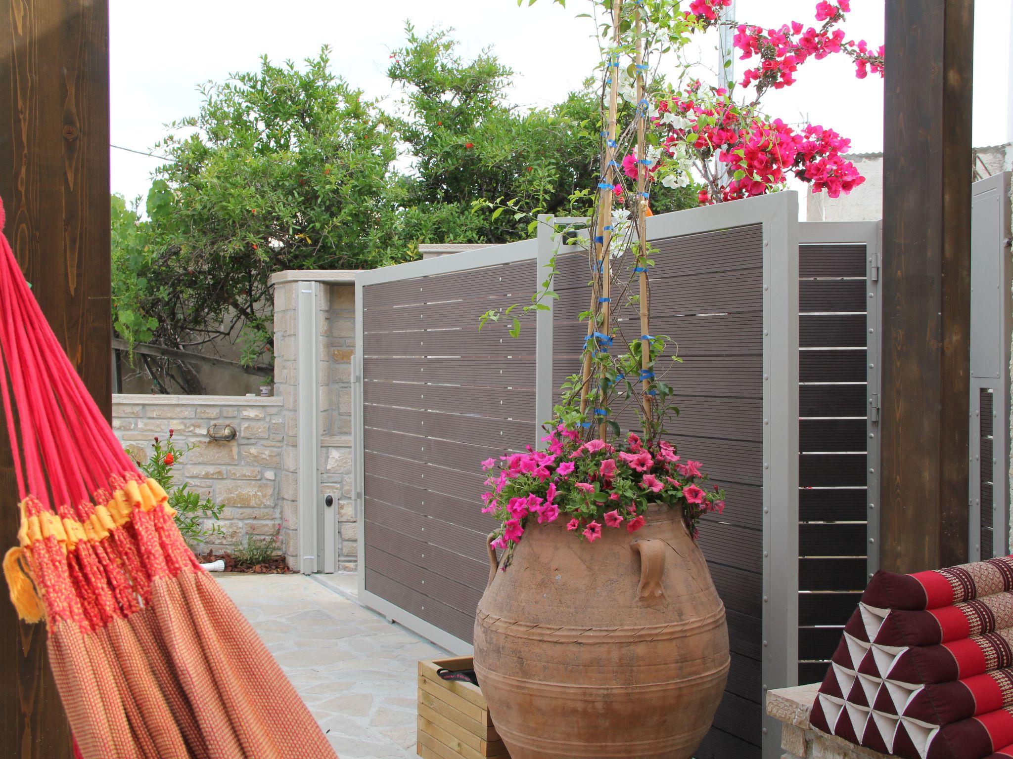 Lemonia (Lemon tree) is a traditional Kretan house with thick stone walls, two outdoor patios (one shaded with a large lemon tree, the other sunny), a happy long history, and authentic, hand-made decorations. It has a private driving entrance, two master bedrooms with en suite bathrooms, as well as a third large bedroom with 3 single beds, one of which is for special needs. There is also a chair bed that can sleep a 4th child. Built in 1935, it has been fully renovated. The whole villa is ground level and handicapped accessible.