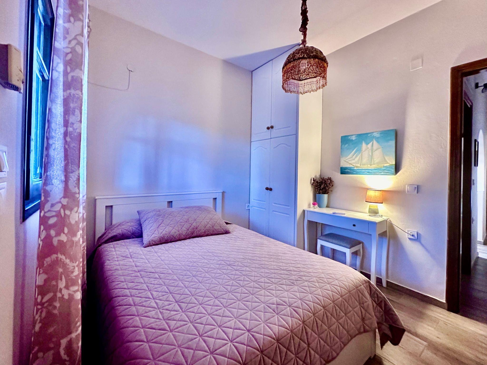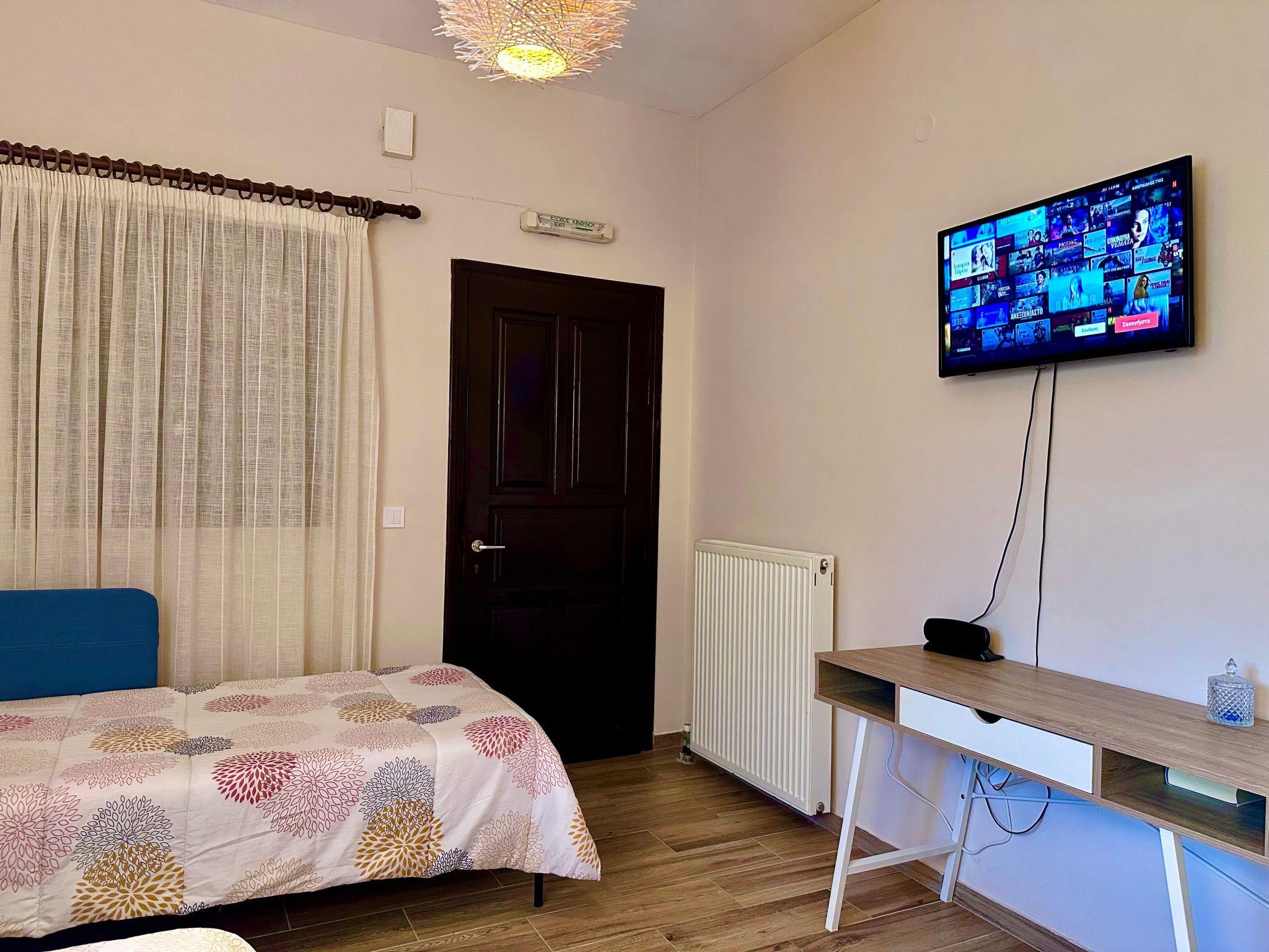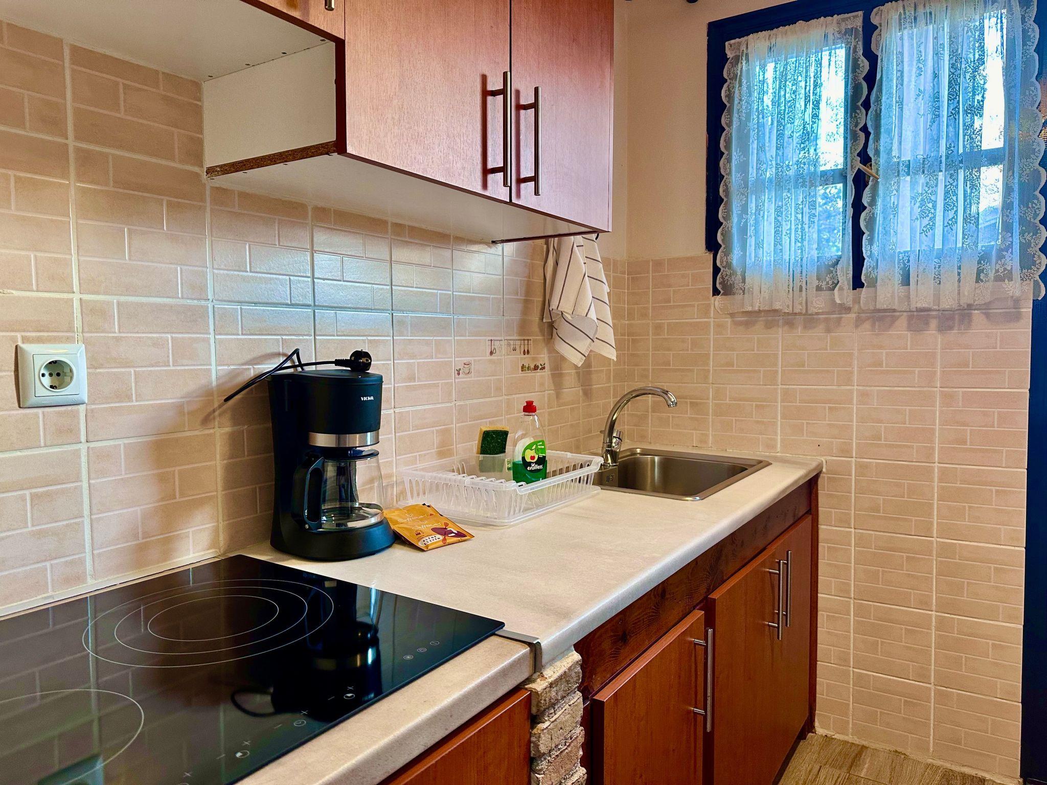Inside, you will find a meticulously designed 40 sqm space that can comfortably accommodate up to 4 adults or 2 adults and 2 children.The two-bedroom apartment boasts a sea view, featuring one large double bed and two single beds arranged across a separate double bedroom and a living room which also serves as a second bedroom. The simple kitchen is fully equipped to cater to up to five persons, complemented by a bathroom with a shower unit. The charm of the indoors is matched by the convenience and comfort, ensuring your stay feels as homely as possible.