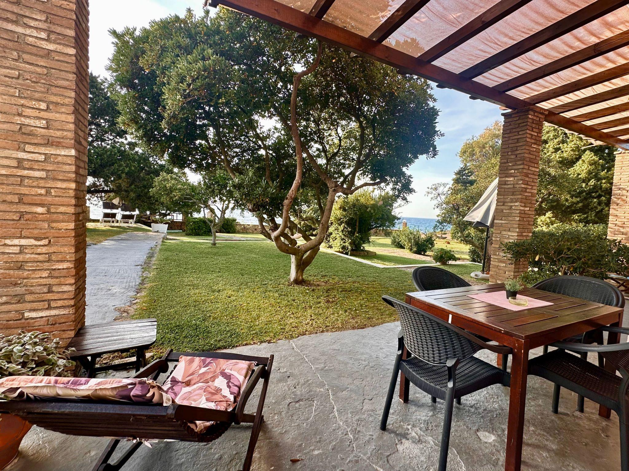 Outdoors, the veranda with its pergolas presents a breathtaking view of the Ionian Sea, inviting guests to unwind and revel in the beauty of their surroundings. The well-maintained garden creates a peaceful haven for reading, meditation, or simply soaking in the tranquility of nature. With direct access to the sea via a private exit and the smooth rocks ideal for sunbathing, every moment spent outside is sure to enrich your holiday experience.