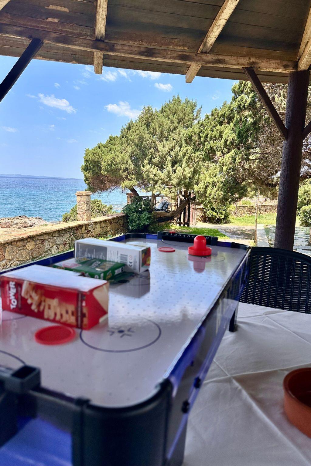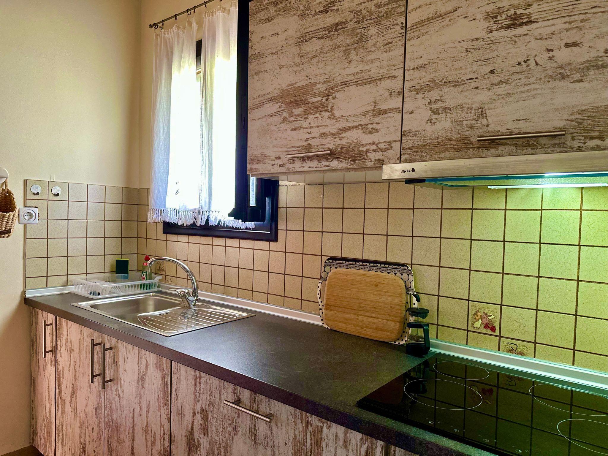 Inside, each apartment spans a generous 40 sqm, thoughtfully arranged to accommodate up to 3 adults or 2 adults and 2 children in utmost comfort. The layout includes a private double bedroom, a fully equipped kitchen capable of servicing five persons, and a living area complete with sofa beds that double as an extra sleeping space. The interior is adorned with a decor that creates a warm, homely atmosphere, featuring a bathroom with a shower that marries functionality with comfort, and is complemented by a veranda offering tranquil garden and sea views—perfect for both relaxation and entertainment.