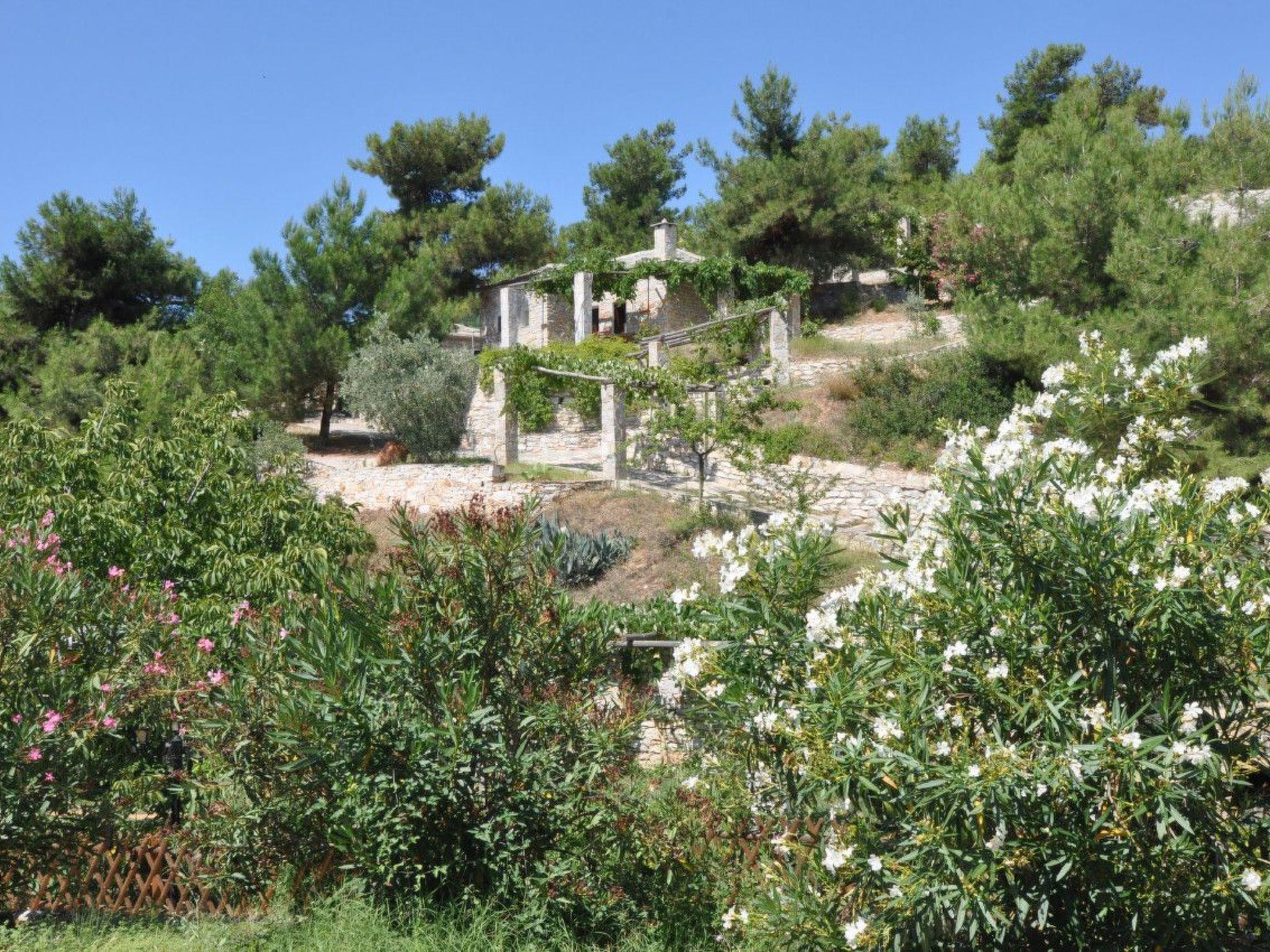 The Arsinoi Stonehouses complex consists of several stone houses that give the feeling of a small village. The houses are built like an amphitheatre on a green hill of 13 hectares, 1500 metres from the centre of the village of Limenaria and only 150 metres from the sea.surrounded by the green of the olive and pine trees overlooking the endless blue of the Aegean Sea, the houses have full autonomy and create a feeling of light-heartedness and privacy.in the surroundings of each house there is a barbecue, pergolas with arbours, garden furniture and stone benches in the shade of pine trees. Stone paths lead visitors from the car park to the houses. Staying here is an escape from the urban environment, a quiet and relaxing contact with nature.
