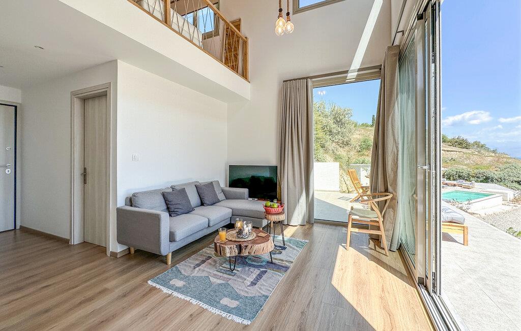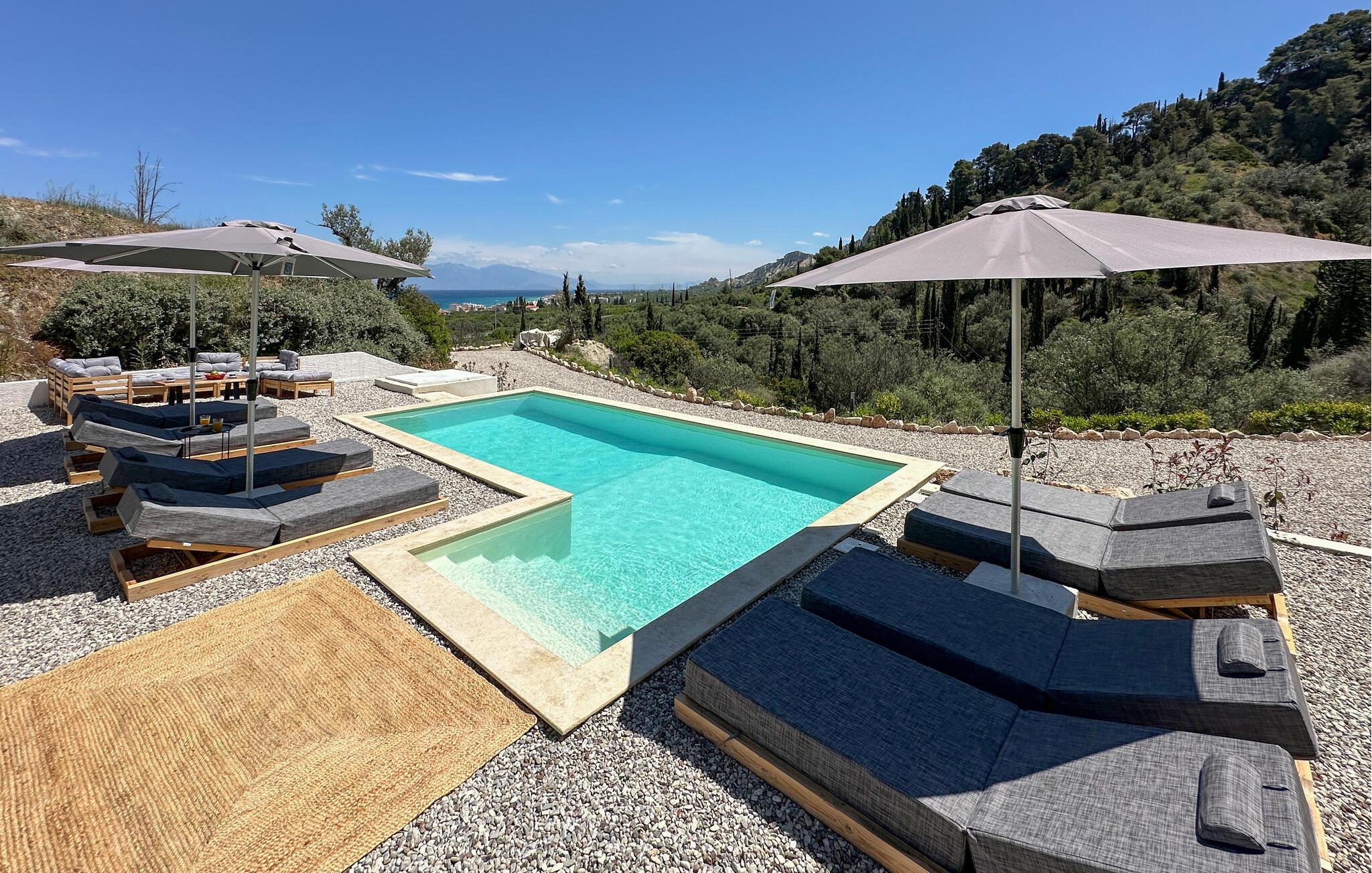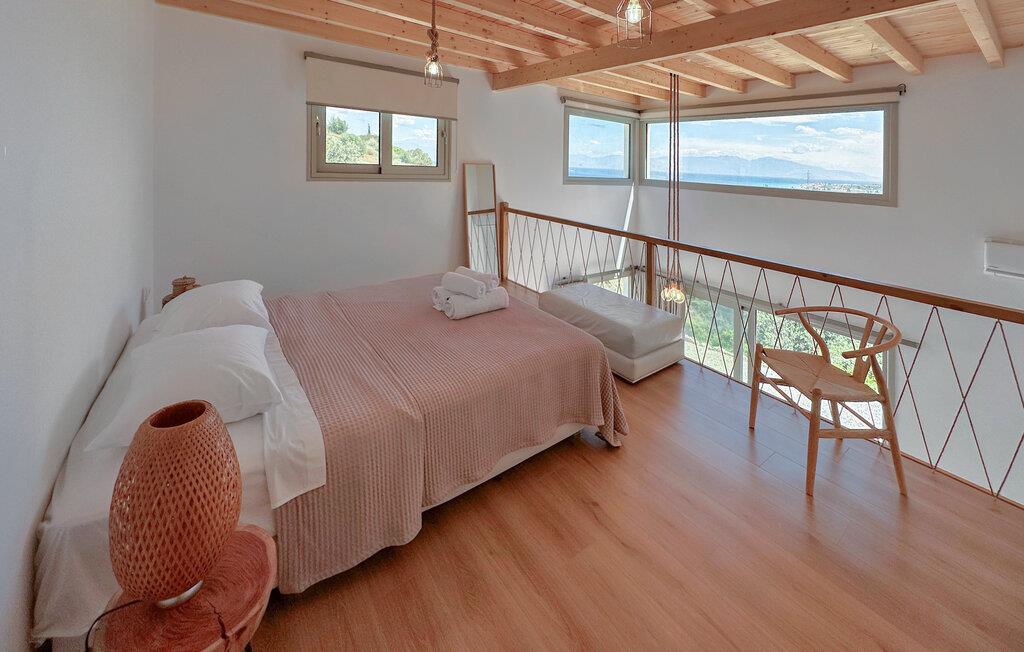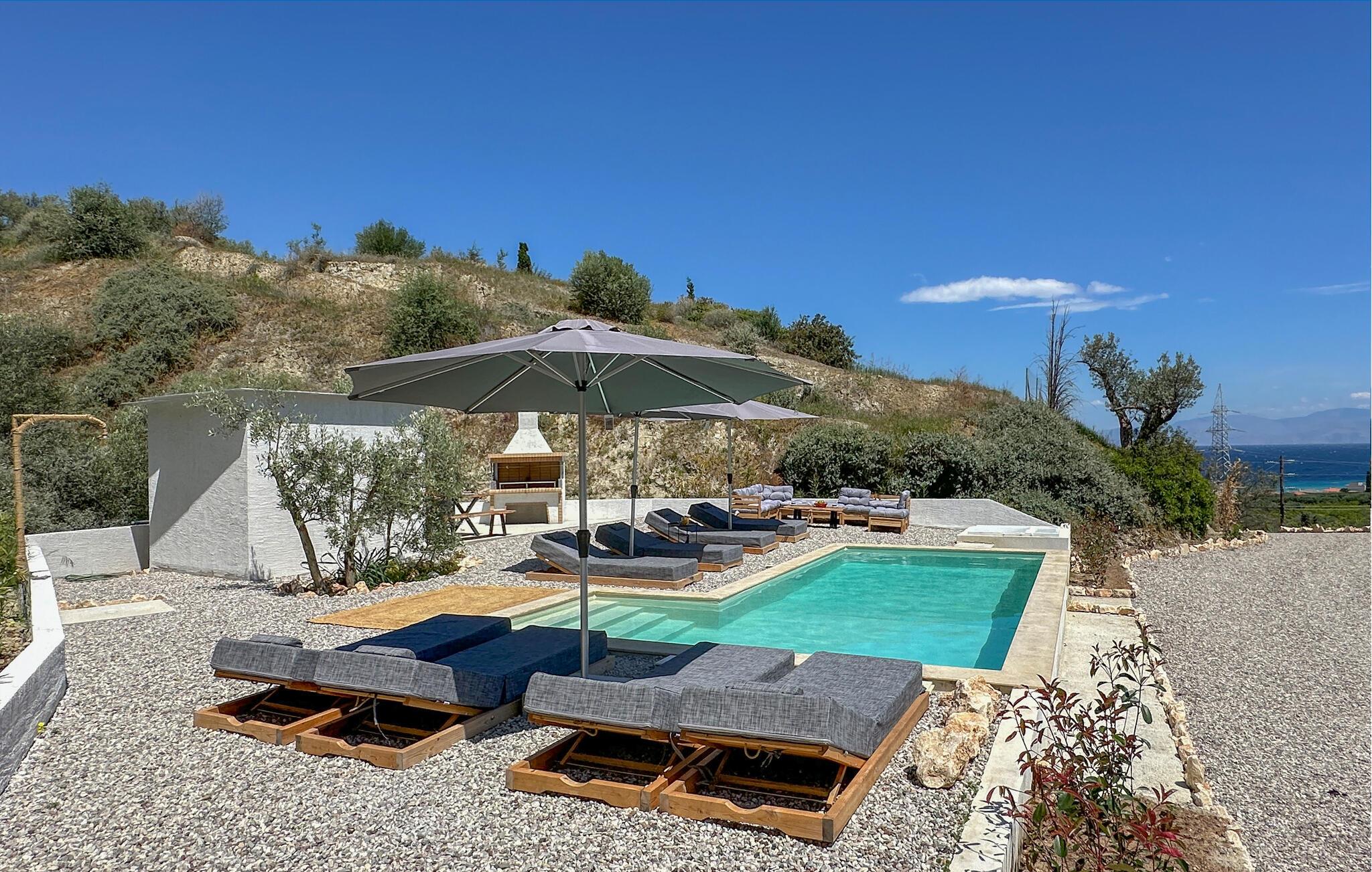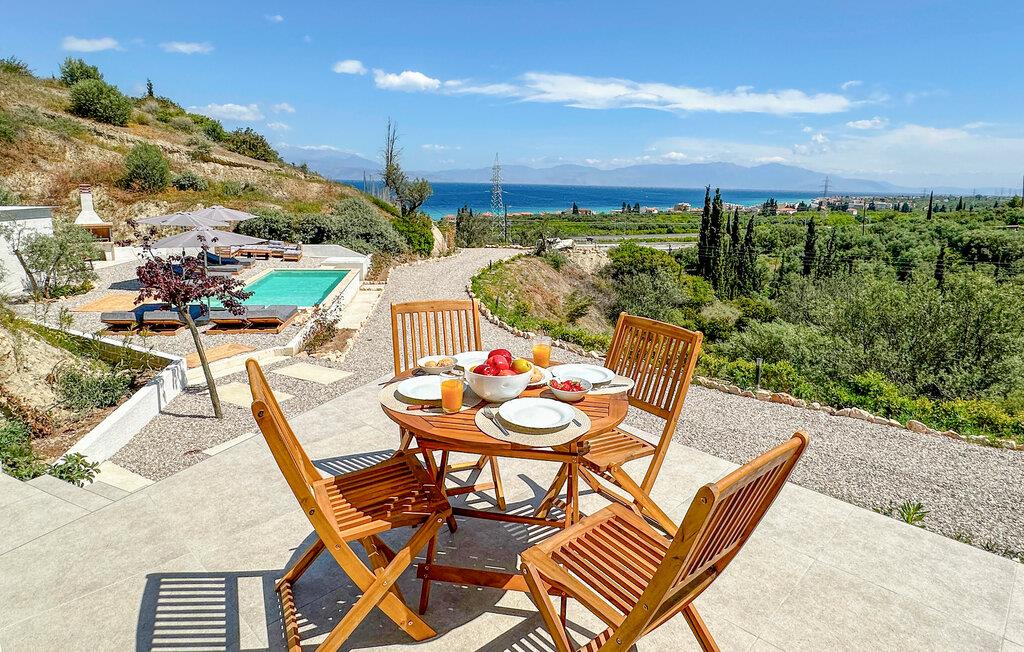 Overrask familien med en solrig ferie i dette komfortable feriehus med havudsigt og adgang til poolen. Dette moderne feriehus forkæler jer med en smuk udsigt over Korinthbugten og byder jer velkommen med et lyst og stilfuldt interiør. Glæd jer til harmoniske måltider og planlæg jeres aktiviteter i den friske atmosfære i det åbne opholdsrum. Efter en lang dag kan I streame en film på sofaen eller udfordre jer selv til et brætspil. Den åbne terrasse er det ideelle sted til en dejlig morgenmad udendørs. Forfrisk jer i den fælles pool og nyd solen på de komfortable liggestole. Hyg jer omkring grillen og snak over græsk vin i den lune sommernat. Vandr gennem de fantastiske Helmos-bjerge og oplev skjulte vandfald, eller slentre langs den maleriske promenade i Xylokastro med dens traditionelle tavernaer. Hold en picnic under fyrretræerne i Pefkias-skoven ved havet, tag den historiske tandhjulsbane gennem den betagende Vouraikos-kløft, eller tag en dagstur til det gamle Korinth.